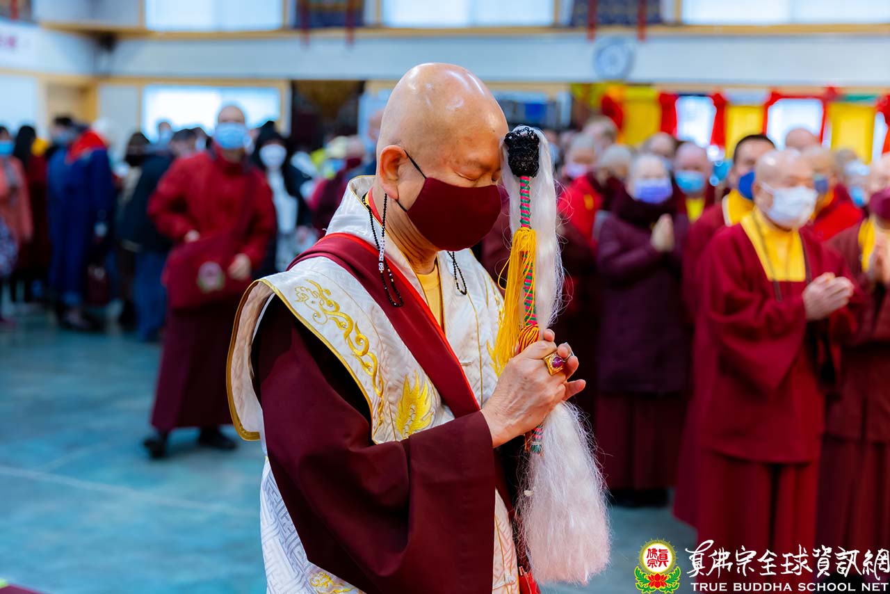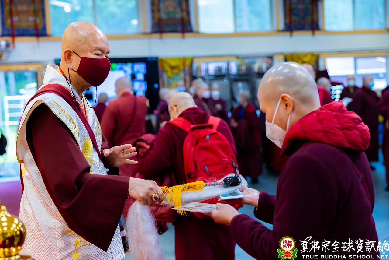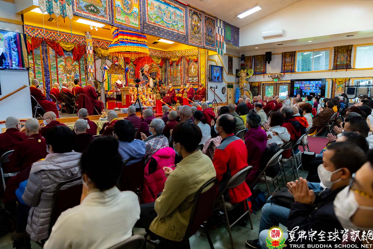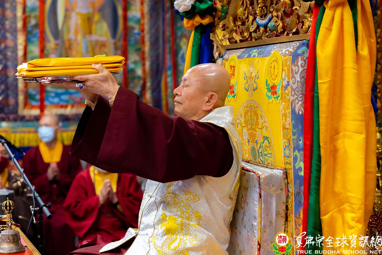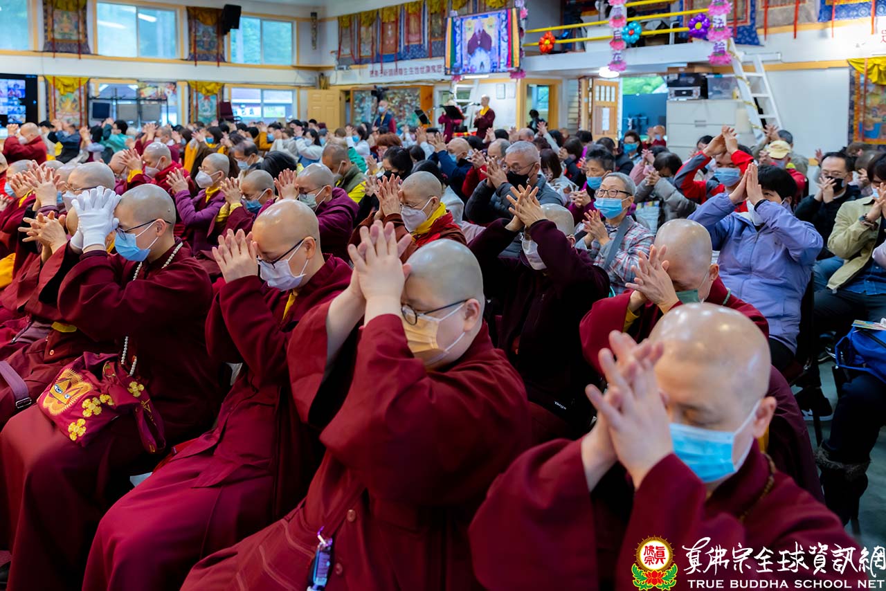 法王結束精彩的法語開示後,便與Zoom上弟子一一道別。隨後,法王賜授現場與會大眾「千手千眼觀世音菩薩法」灌頂,是日法會便完滿結束。