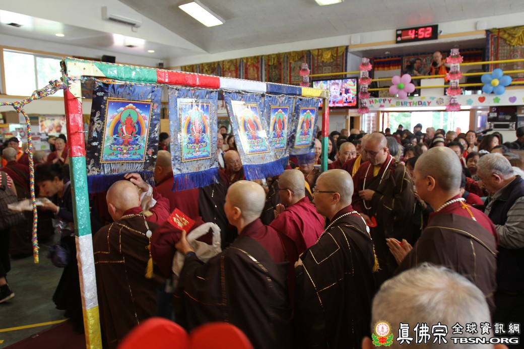 開示後,法王慈悲賜授與會大眾殊勝的「長壽佛法」灌頂,同時,眾弟子感恩法王慧命的提攜和加持護佑,敬祝法王佛體安康,長壽自在,請佛住世。