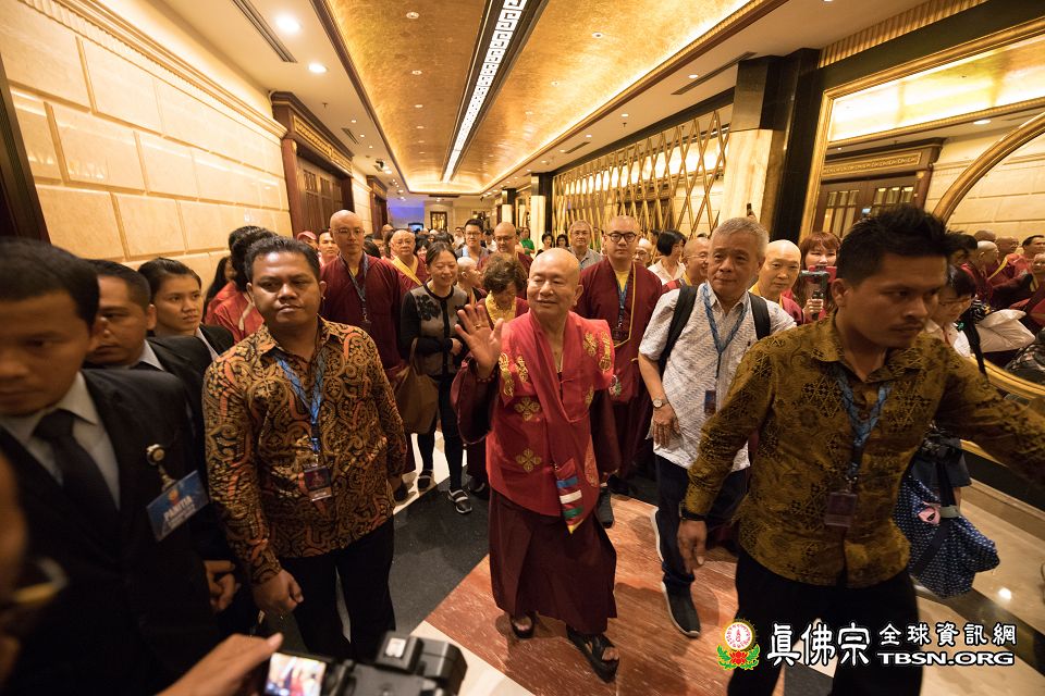 2018年12月6日清晨,聖尊師母與侍者團等一行,自桃園過境旅館離開,出發前往機場,而是日的大型飛機,似乎全部被真佛宗派包機似的,全機到處充滿本宗上師、法師與同門,於當天下午抵達雅加達機場。現場數千人熱烈接機!聖尊師母於機場與主辦單位眾代表合影留念。現場人聲早已鼎沸,機場內人人高喊:「歡迎師尊師母蒞臨印尼!」、「想念師尊!」