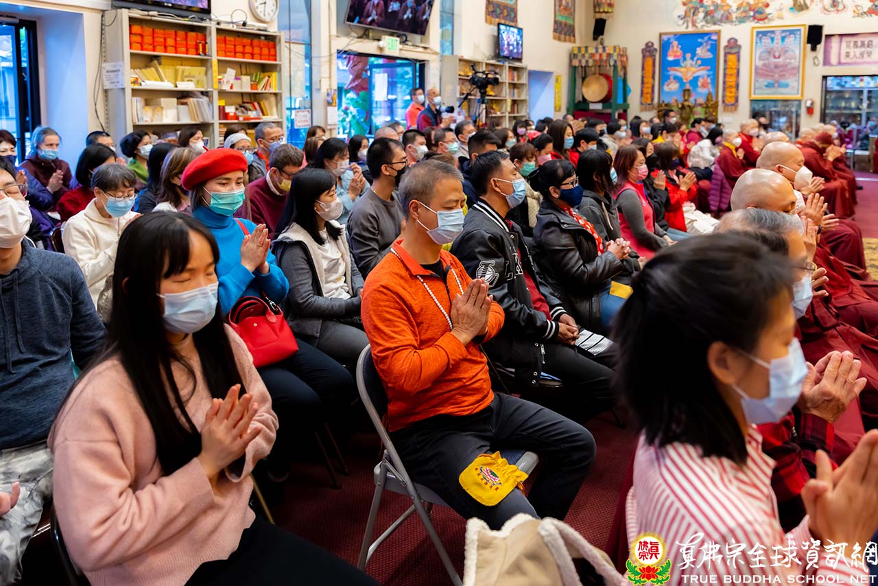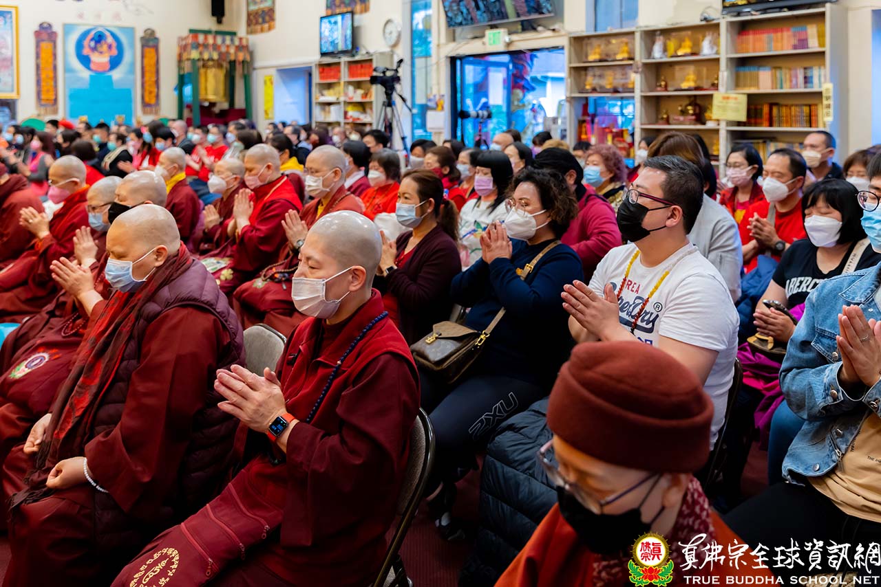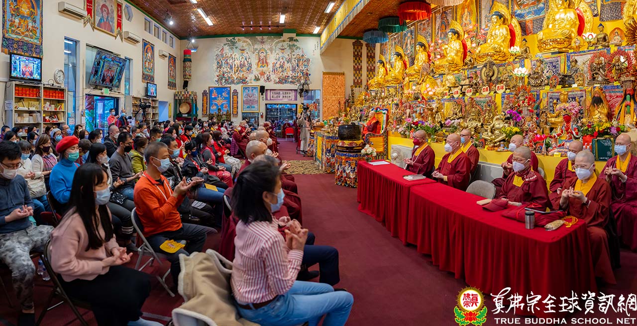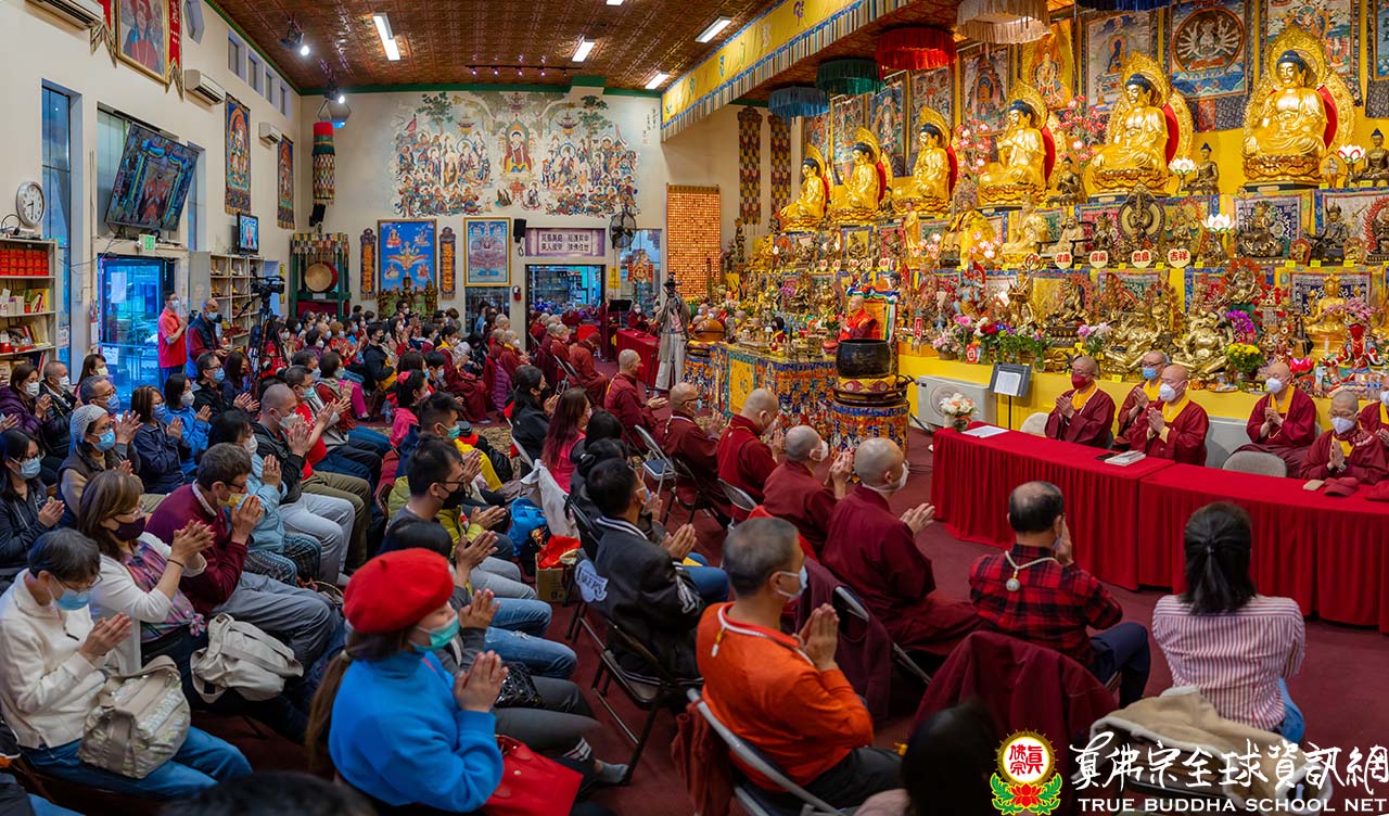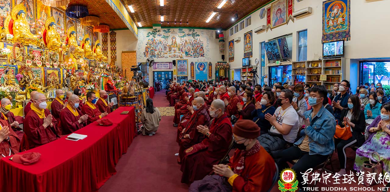 西雅圖雷藏寺於2022年6月18日晚上8點,恭請聖尊蓮生活佛盧勝彥主持蓮華生大士本尊法同修,有來自世界各地的弟子們來到西雅圖,祖廟裡裡外外熱鬧非凡,座無虛席,滿心期待著與聖尊一起同修密法。隨著蓮花童子心咒的響起,眾人虔誠合掌,迎接聖尊的到來。