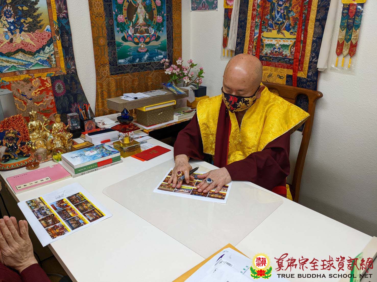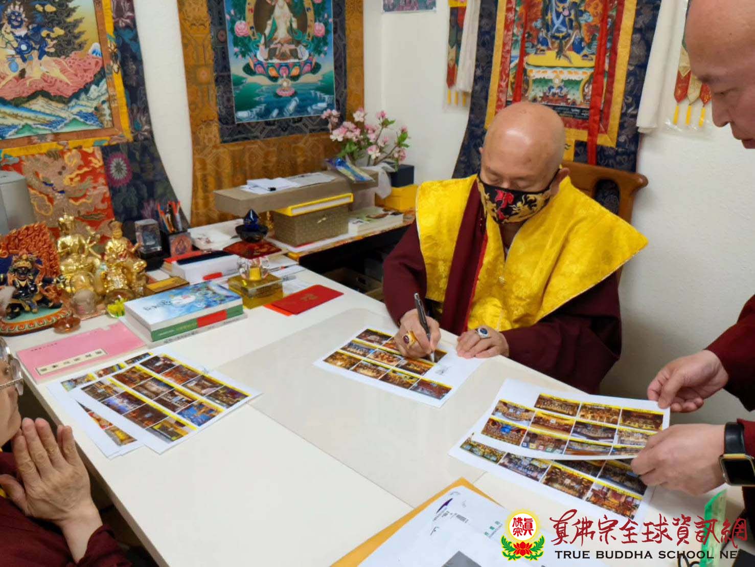 宗委會也特別向網路技術組致謝,謝謝蓮花惠啟、蓮花清華及蓮花炳祥,在短短幾天內為百多座道場測試zoom畫面!並感謝TBSN的四人小組,負責文宣、整理法會資料、聯絡工作、服務道場、收集整理照片與法會資料名單等、發佈消息、籌辦薈供主題壇城比賽等所有事宜!