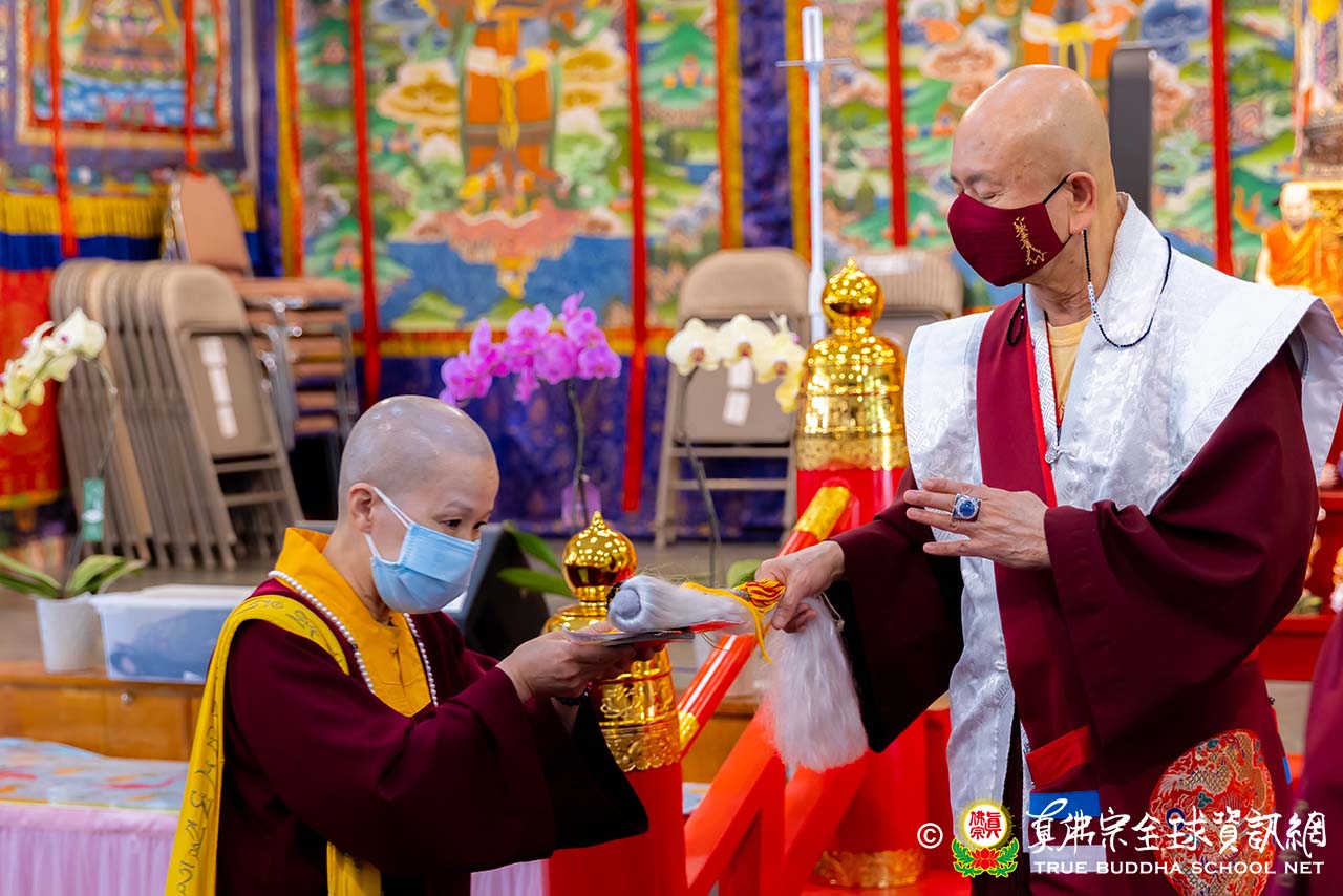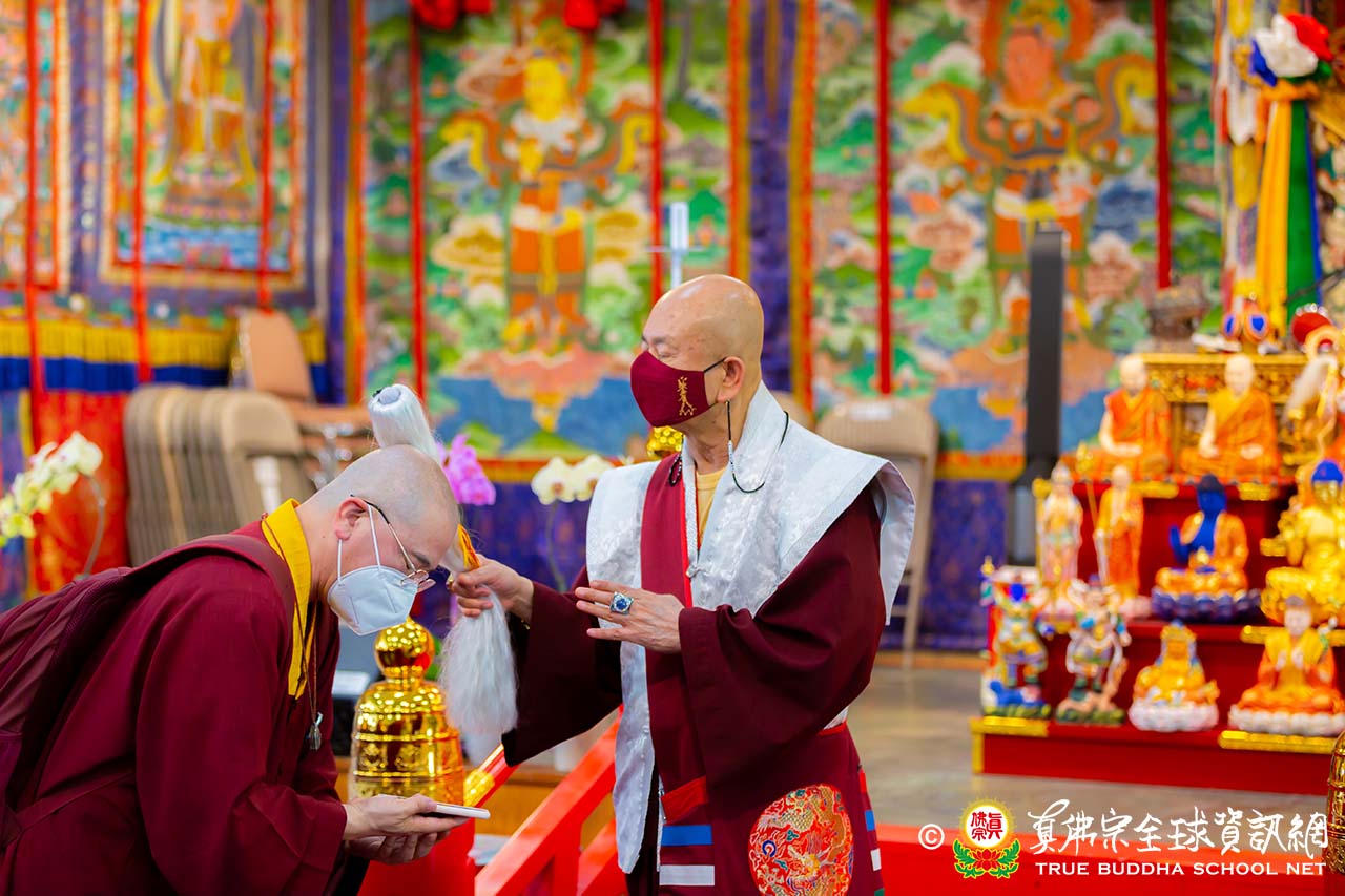 開示結束後,與會弟子一一接受「大白傘蓋佛母法」灌頂。本日法會圓滿結束,歡迎下個星期共同護持除瘟疫度母護摩法會。