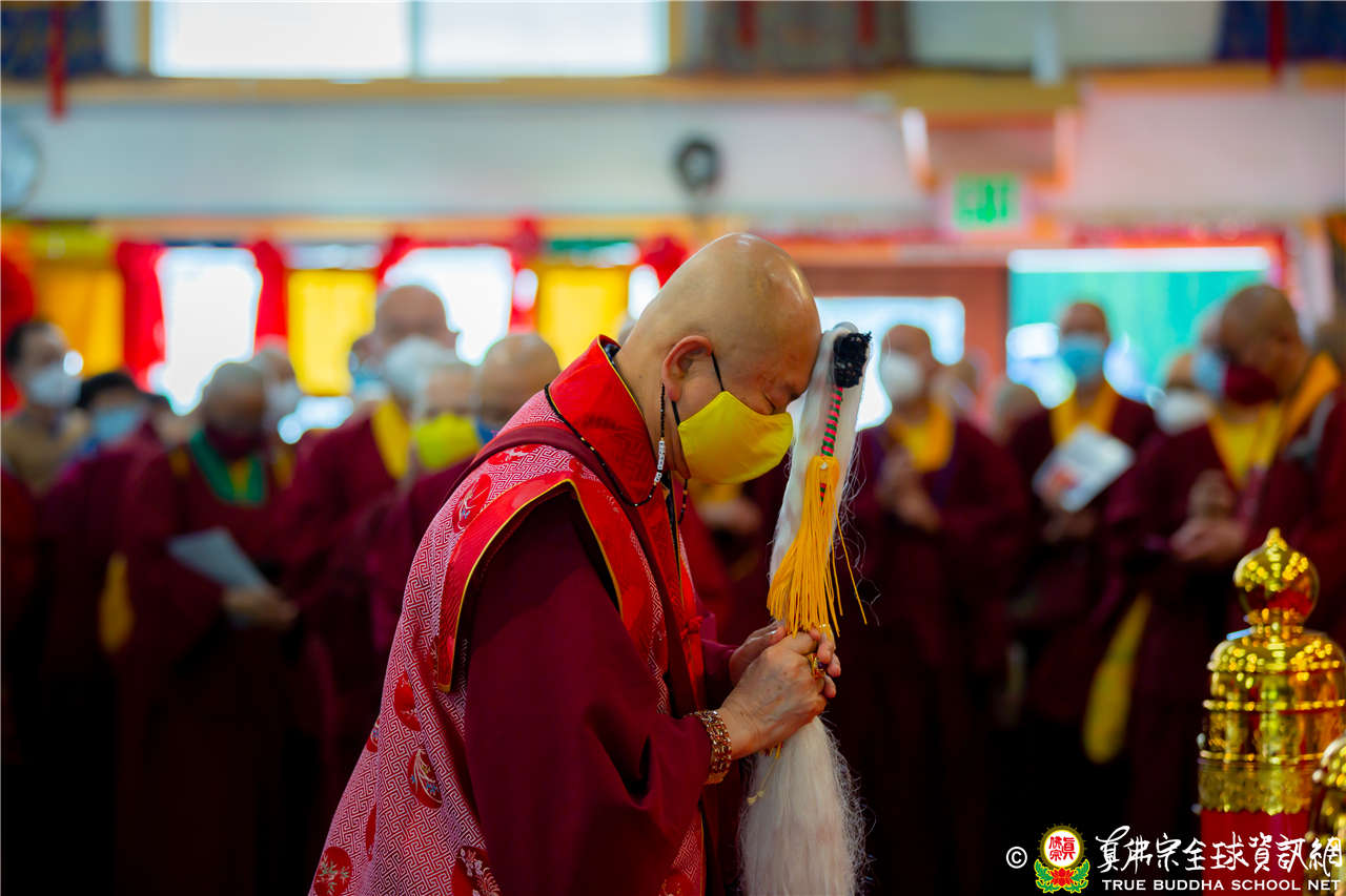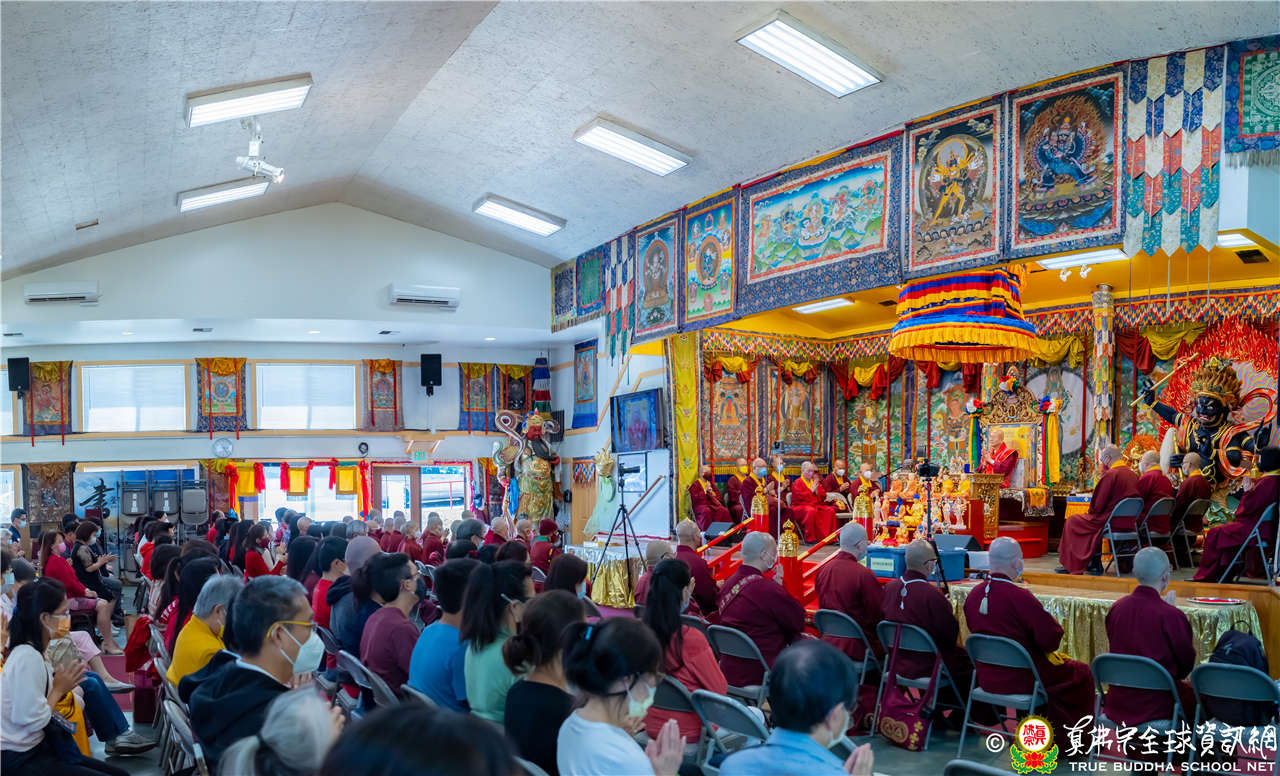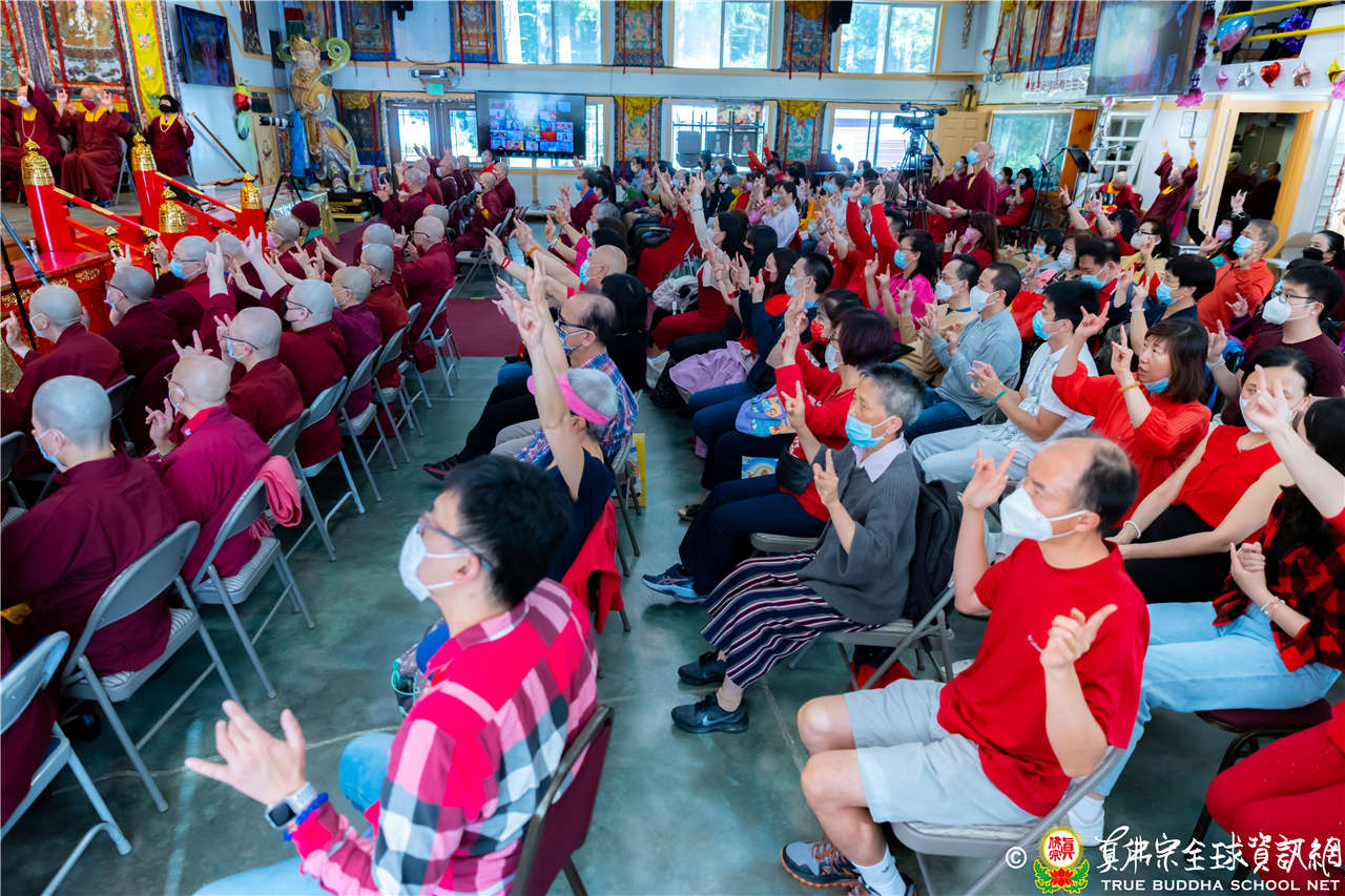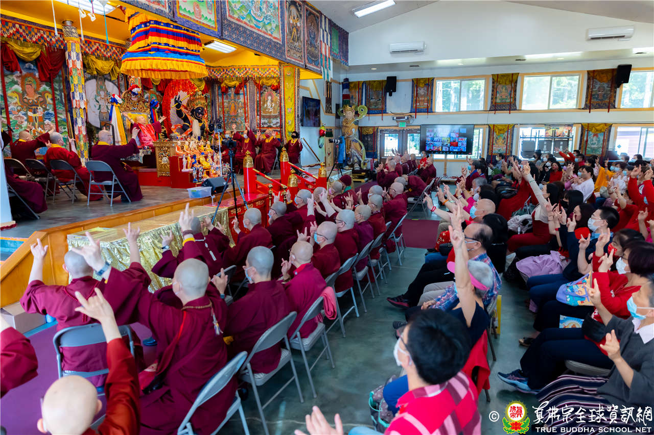 法王勉勵大家永不退轉,在任何人事時地物中,都能以佛法度眾,昔日六祖惠能「藏匿」獵人行伍15年,爾今法王在「舞林」之中翩然度眾,都是美談。最後法王移駕到Zoom前與弟子們互動,弟子們誠摯地感恩師尊開示。法王給予現場弟子勾財天女法灌頂,法會圓滿結束。