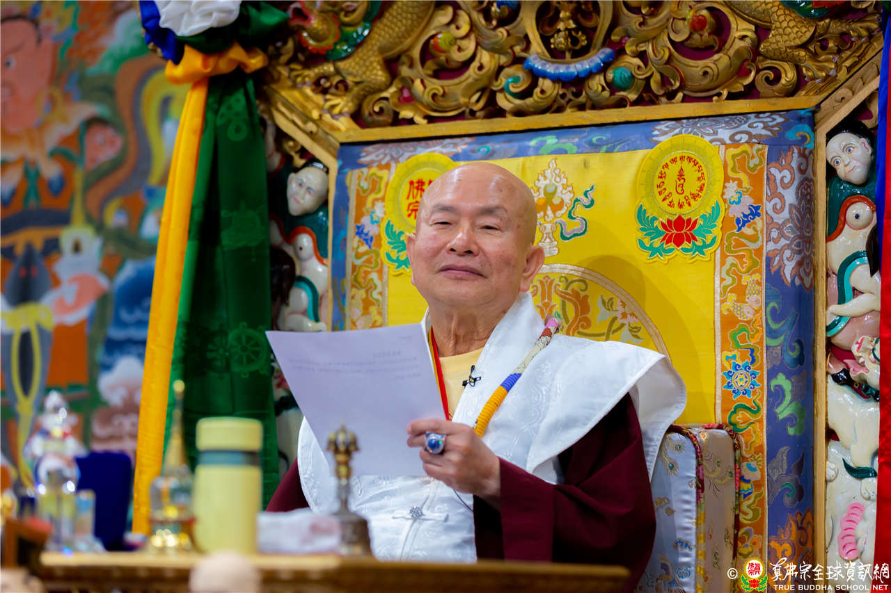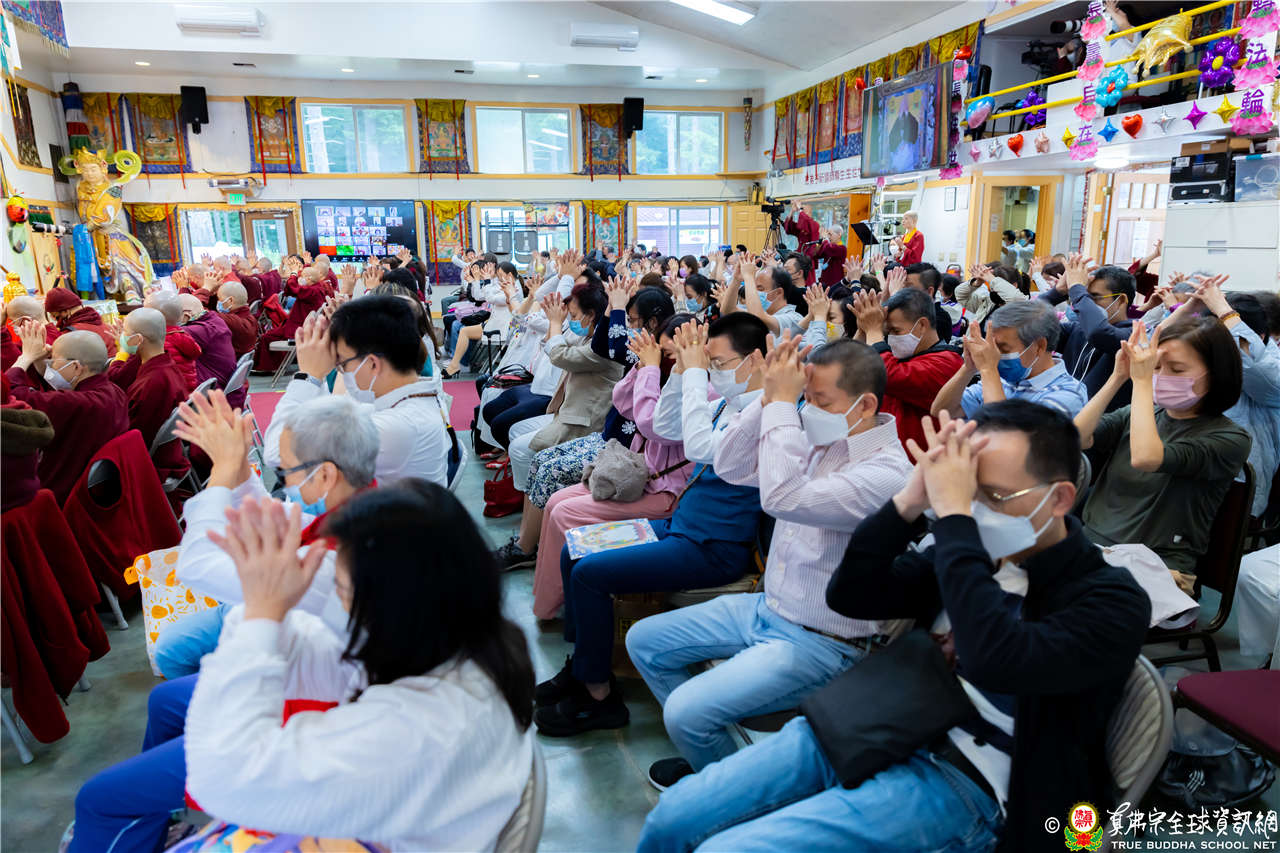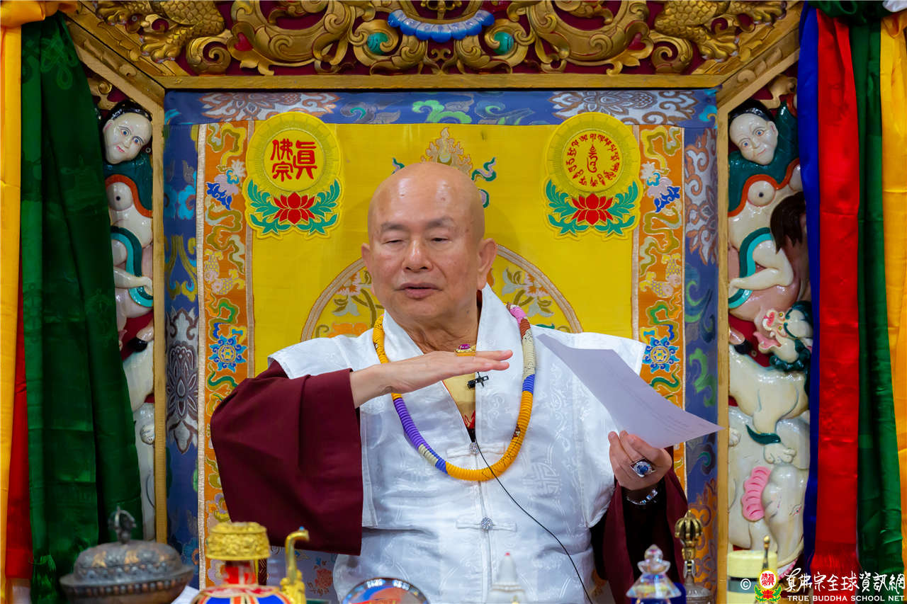菩薩的四無畏,就是以上四點。法王語重心長的告誡弟子們要守戒,精進及懂得感恩。聖尊的法語讓弟子們深思反省,法味濃濃。法會後聖尊與Zoom線上的弟子們揮手告別,但願不久的將來就是重逢的季節。最後法王為現場的弟子們做了觀世音菩薩法灌頂,法會就此圓滿落幕。