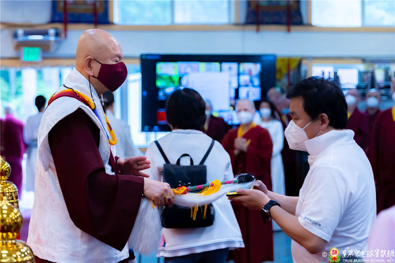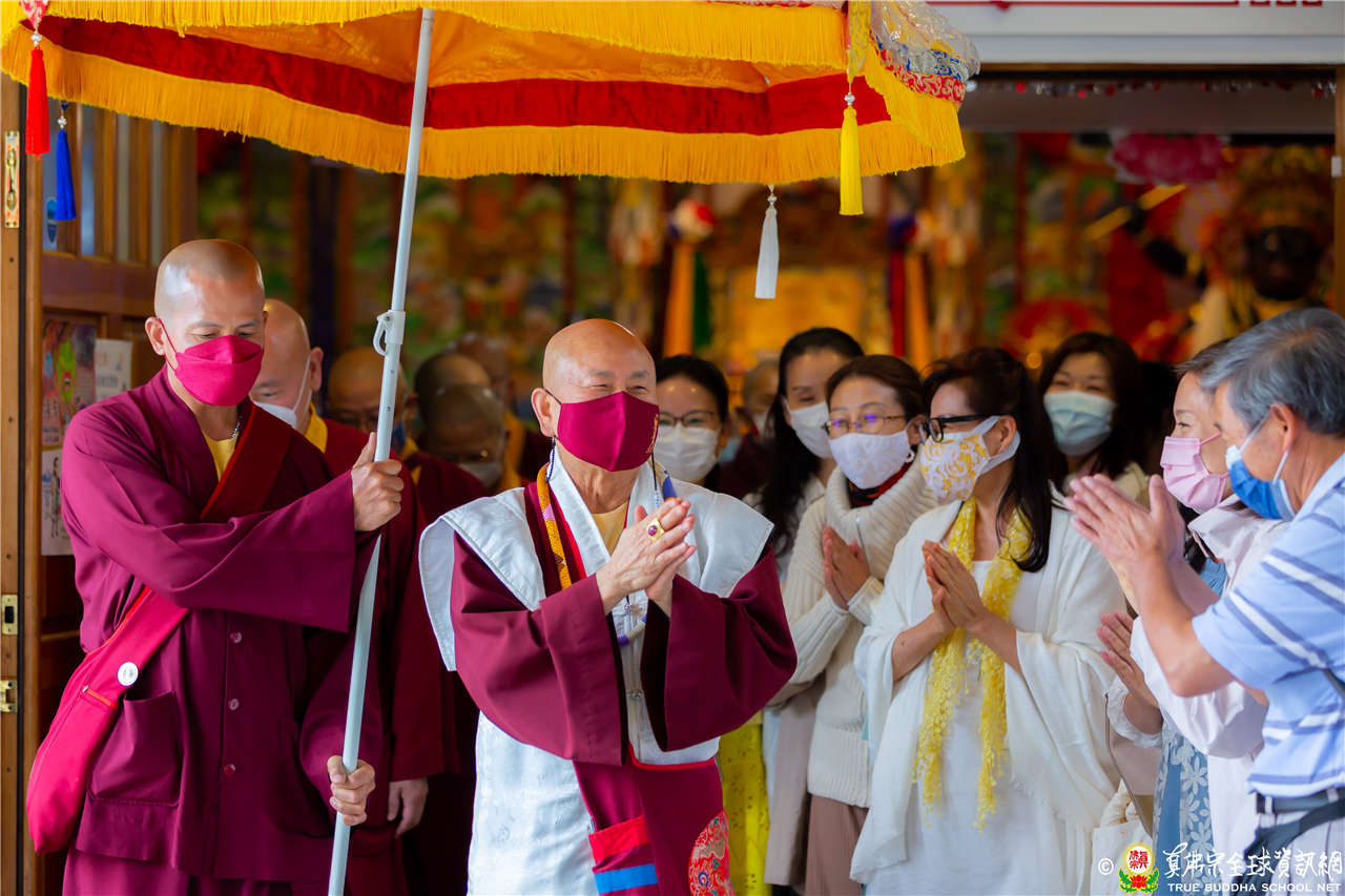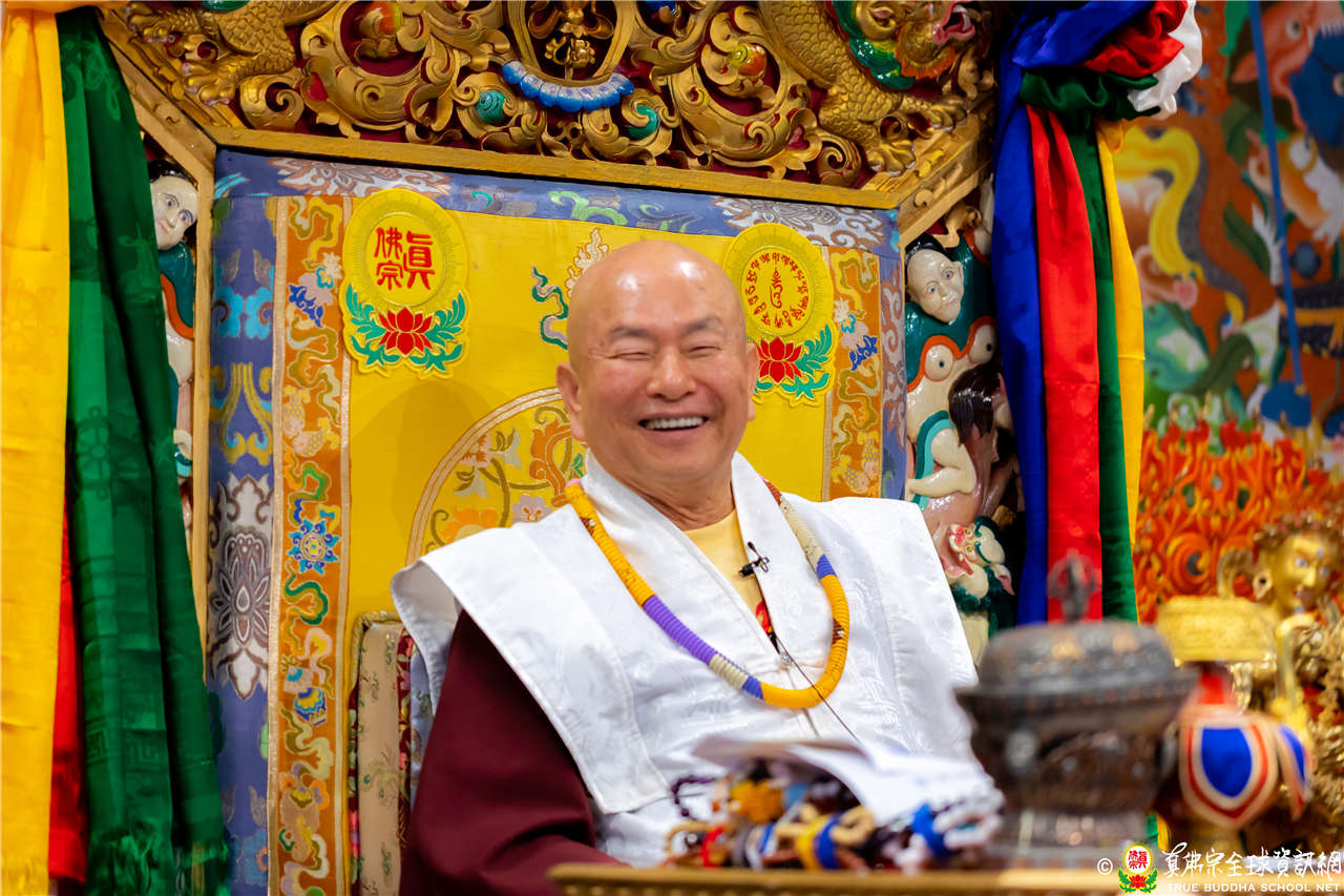 菩薩的四無畏,就是以上四點。法王語重心長的告誡弟子們要守戒,精進及懂得感恩。聖尊的法語讓弟子們深思反省,法味濃濃。法會後聖尊與Zoom線上的弟子們揮手告別,但願不久的將來就是重逢的季節。最後法王為現場的弟子們做了觀世音菩薩法灌頂,法會就此圓滿落幕。