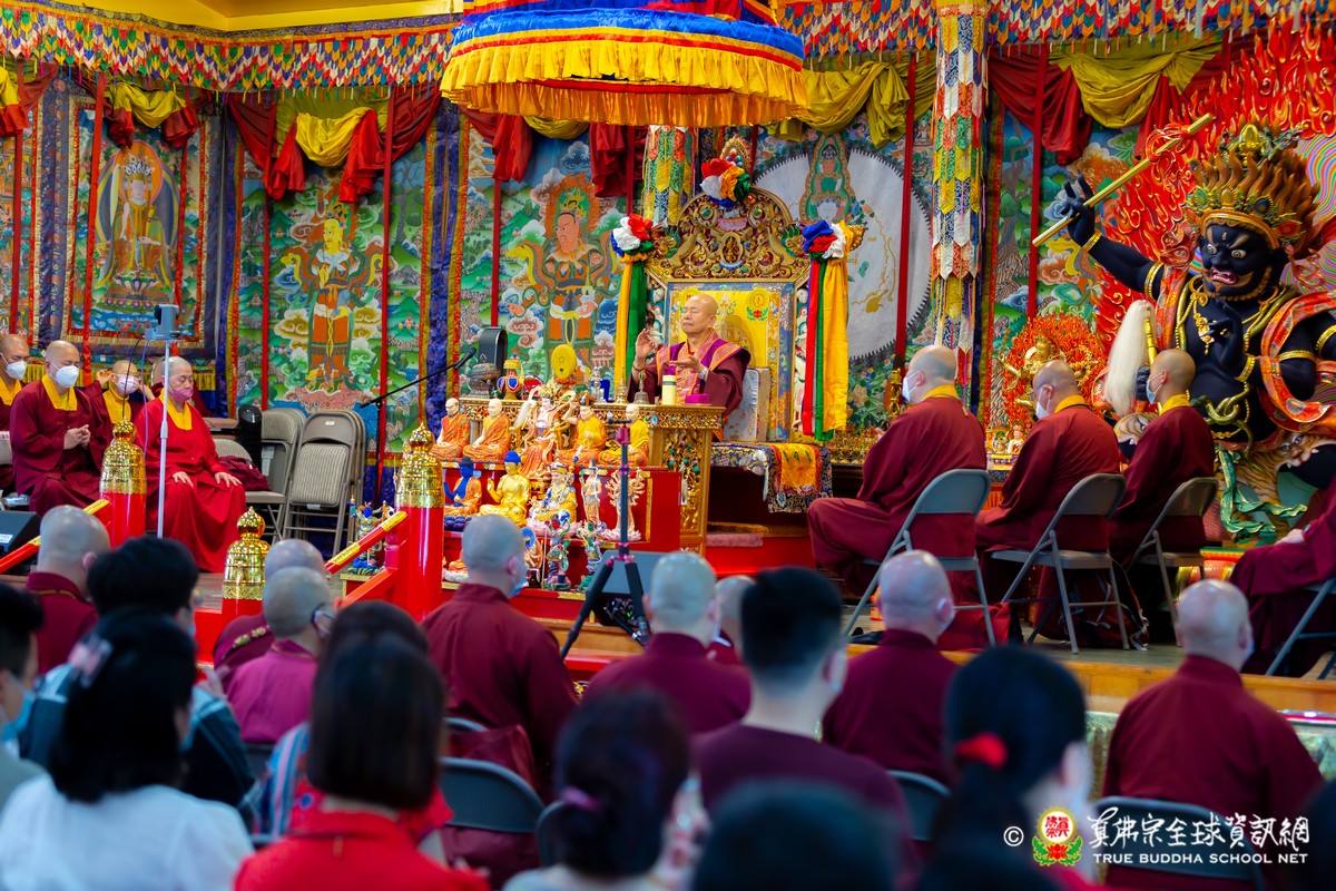 開示結束後,法王帶領大眾頂禮壇城,然後與Zoom雲端的弟子溫馨道別。接著,法王給現場與會大眾賜授「愛染明王法」灌頂,殊勝的愛染明王護摩法會在灌頂結束後也圓滿落幕。
