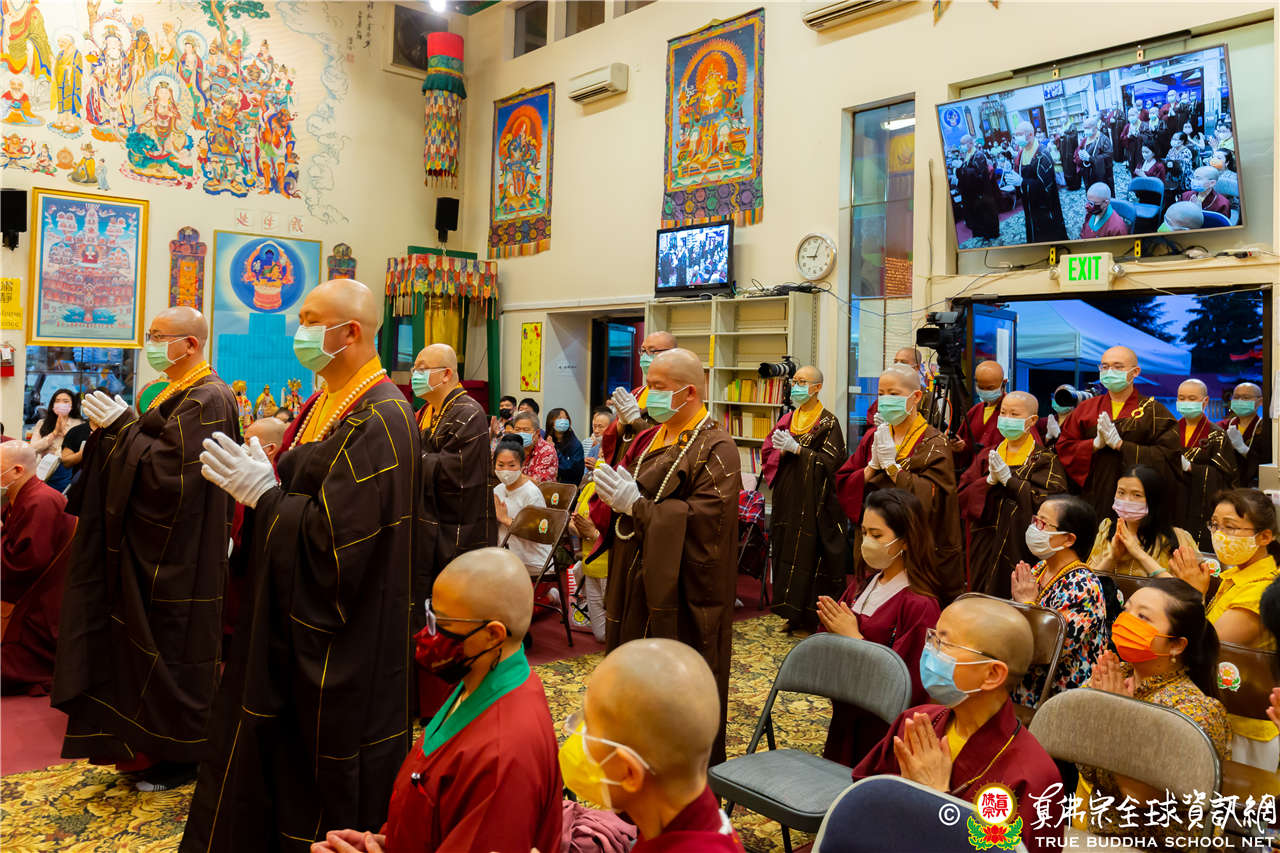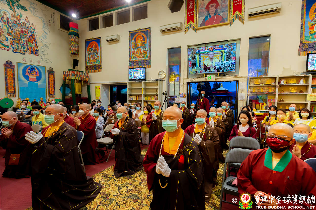 同修結束後,舉行西雅圖雷藏寺與彩虹雷藏寺的聯合請法儀式,眾上師及法師以最莊嚴肅穆的恭敬心,祈請聖尊蓮生活佛主持2022年8月20日西雅圖雷藏寺壬寅年阿彌陀佛息災祈福暨千艘法船接引超度大法會,及8月21日彩虹雷藏寺瑤池金母護摩大法會,透過無遠弗屆的全球直播,大眾共同虔敬祈請,並感恩聖尊以無盡的菩提心力,慈悲威神之力主持這二場大法會,佛光注照眾等息災祈福,並超度祖先等眾靈往生西方極樂世界。