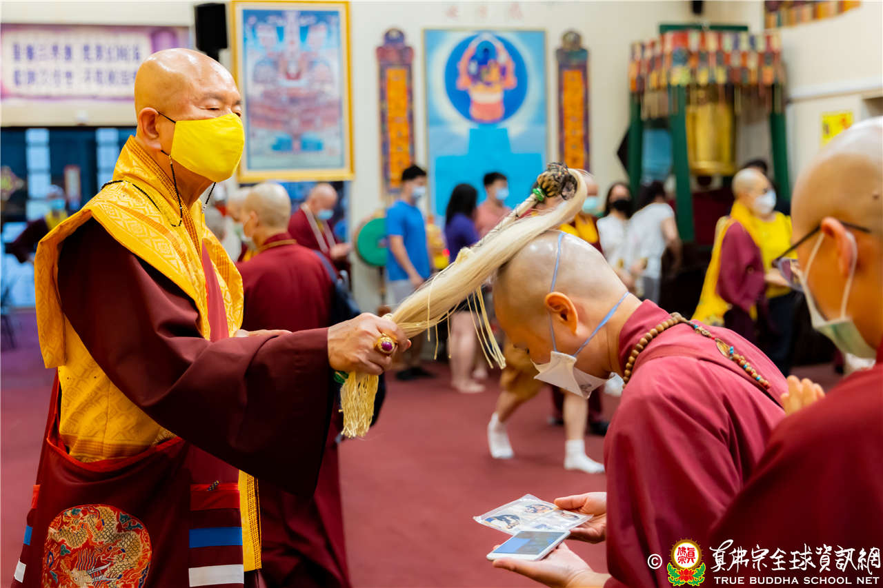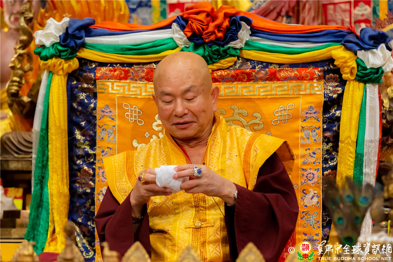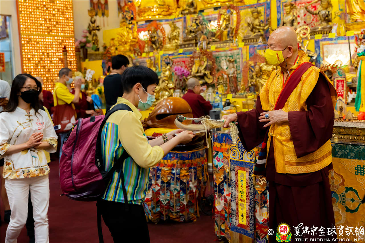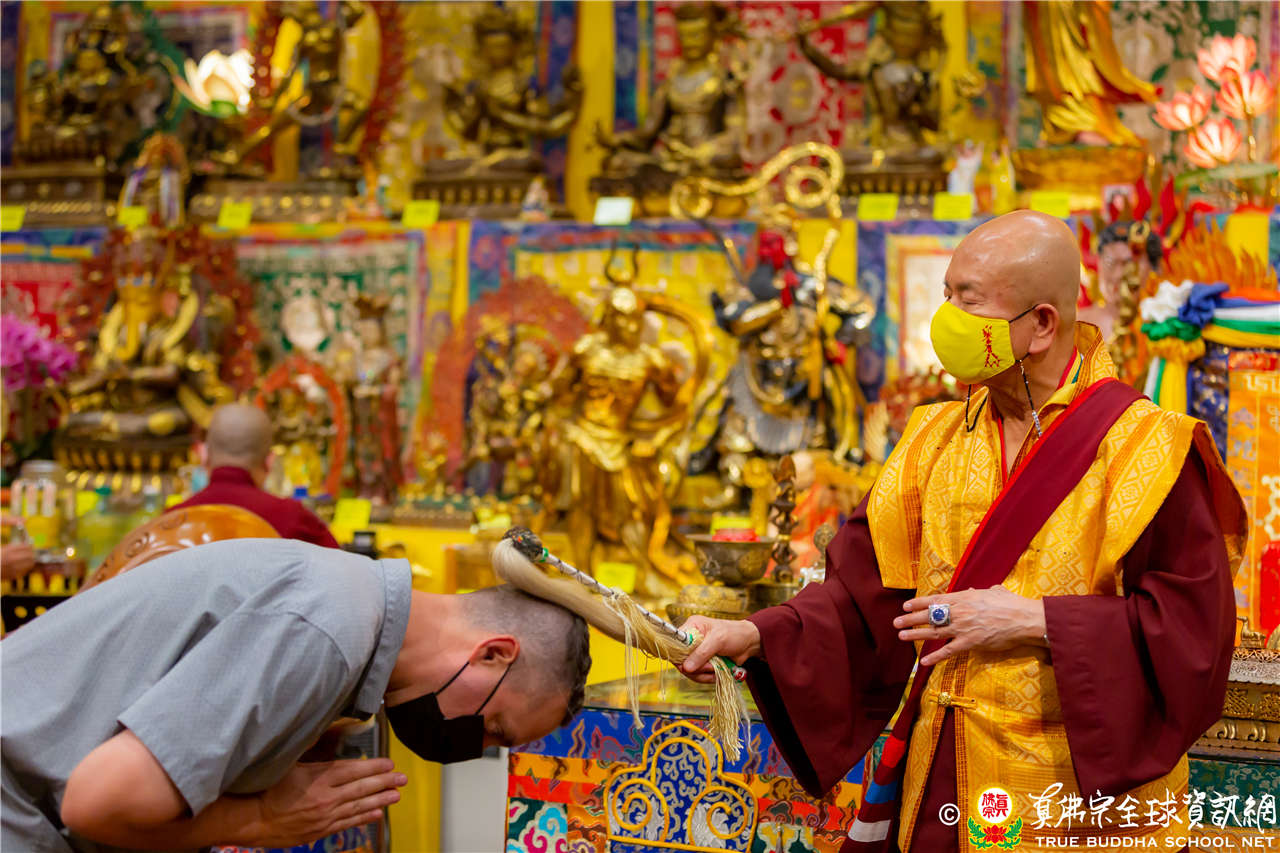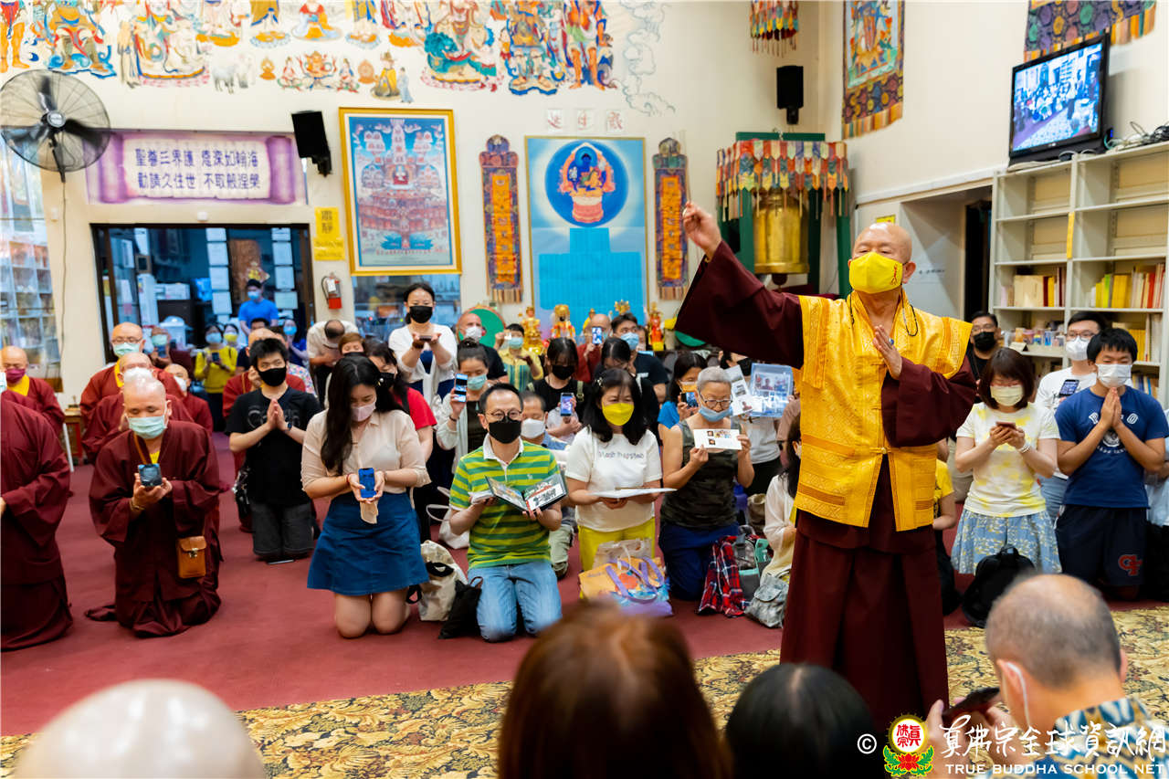 在精闢寶貴的法語開示結束後,聖尊慈悲為新皈依弟子做皈依灌頂並加持大悲咒水、開光佛像及加持眾弟子。圓滿結束了今晚的同修活動。