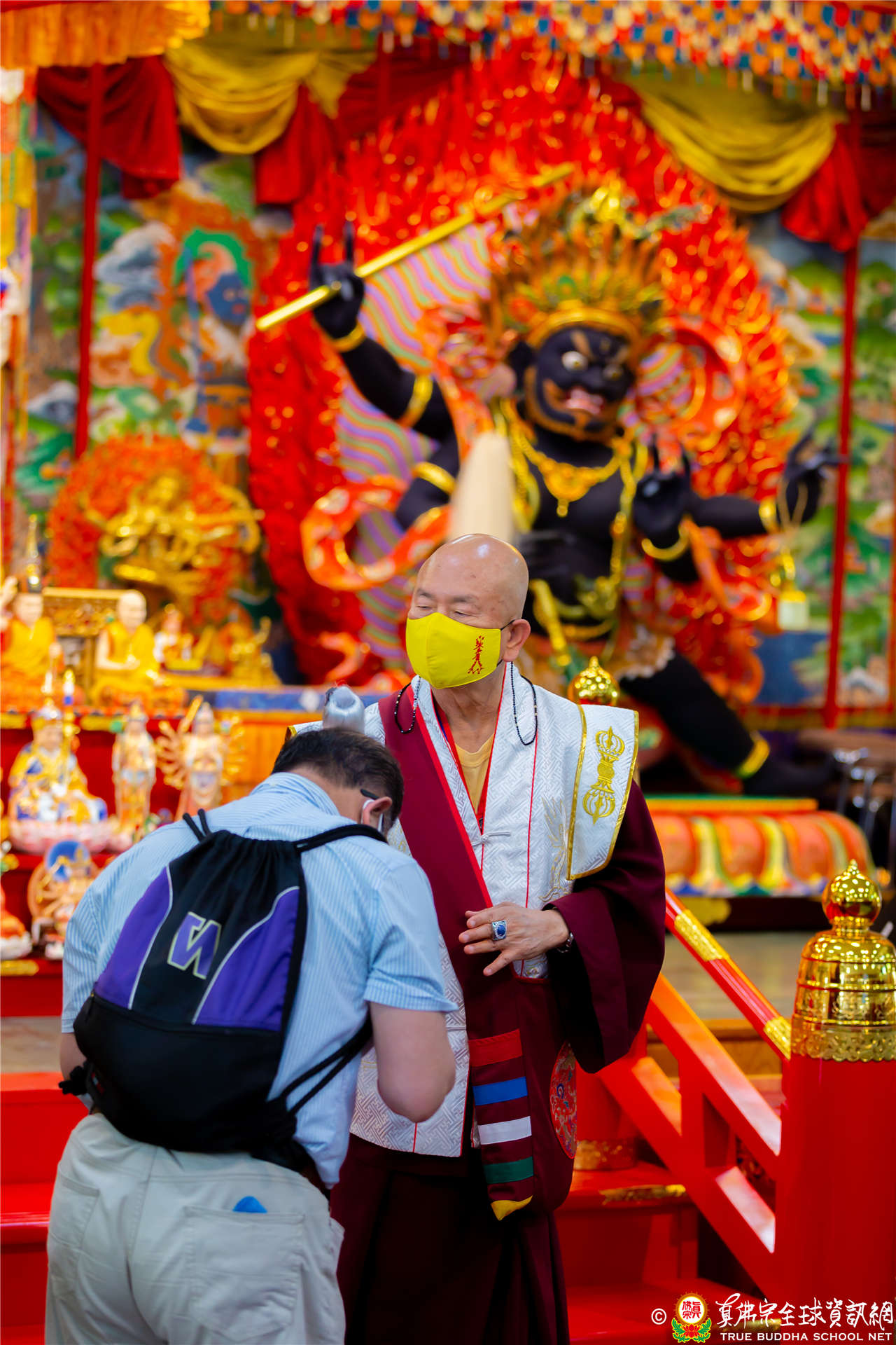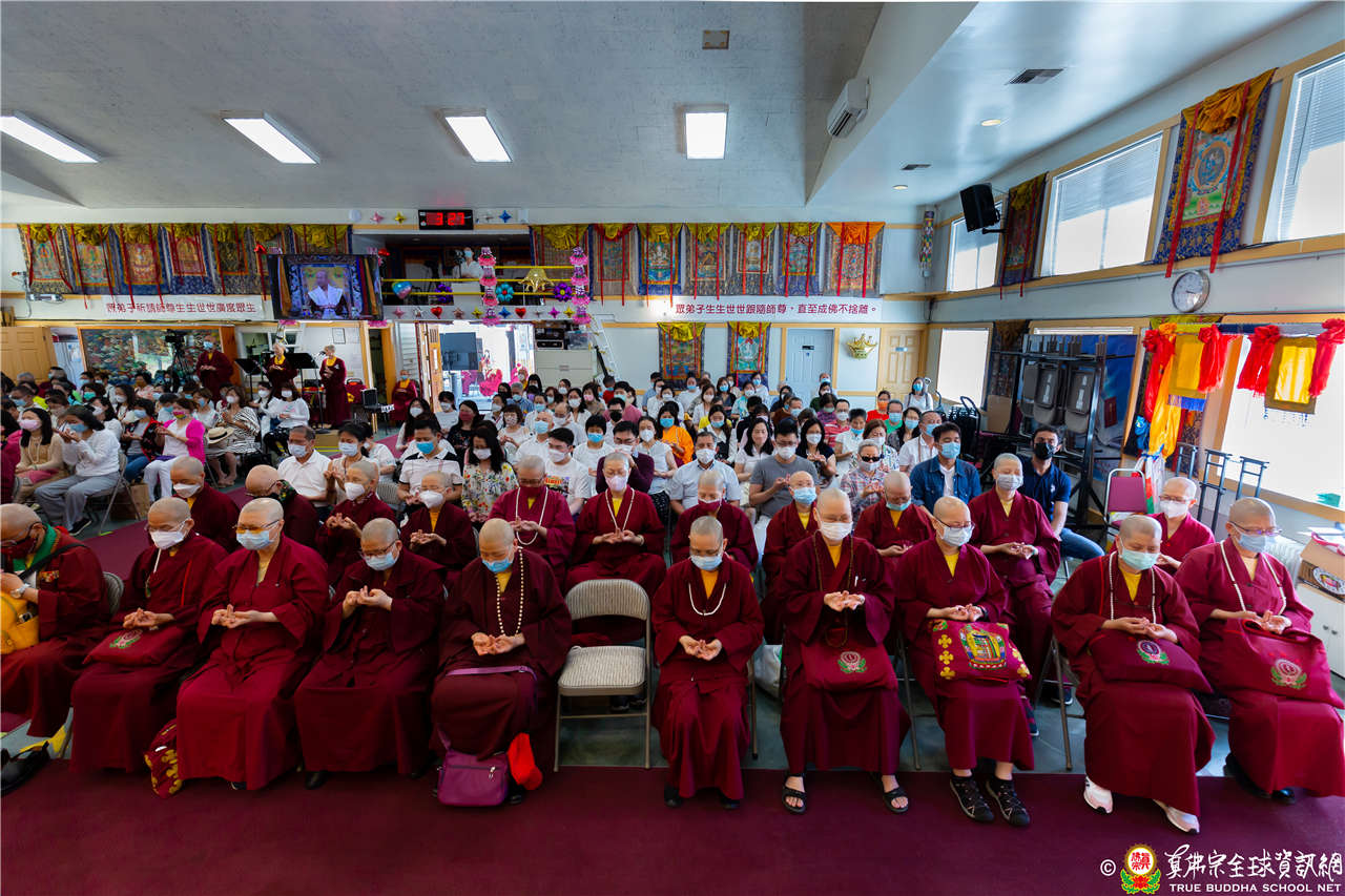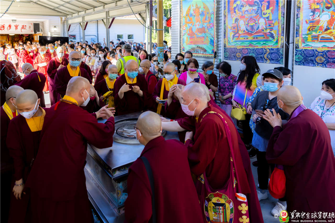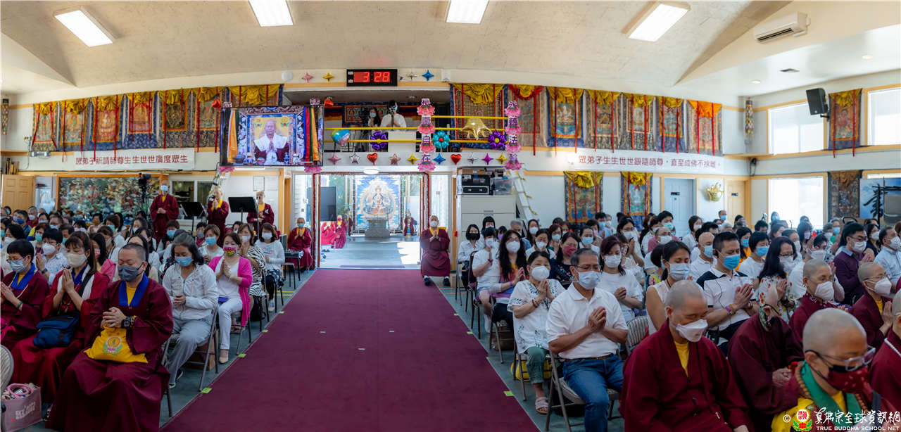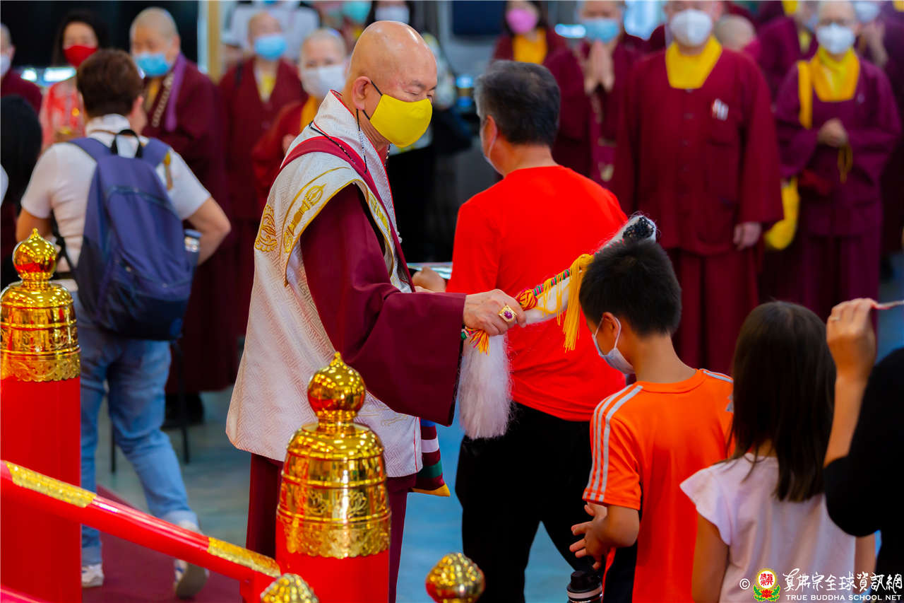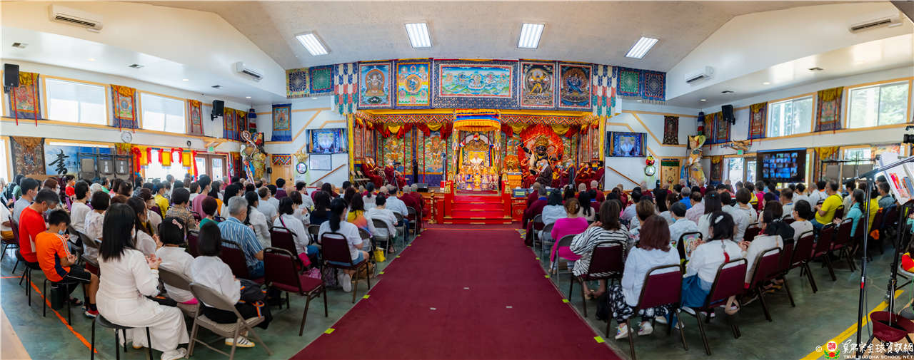 最後法王移駕到Zoom前與弟子們互動,弟子們誠摯地感恩法王開示,法王慈悲加持祝福現場及網路上所有弟子都能得到「不空羂索觀音」加持護佑,眾現場弟子接受法王的「不空羂索觀音」灌頂,法會圓滿結束。