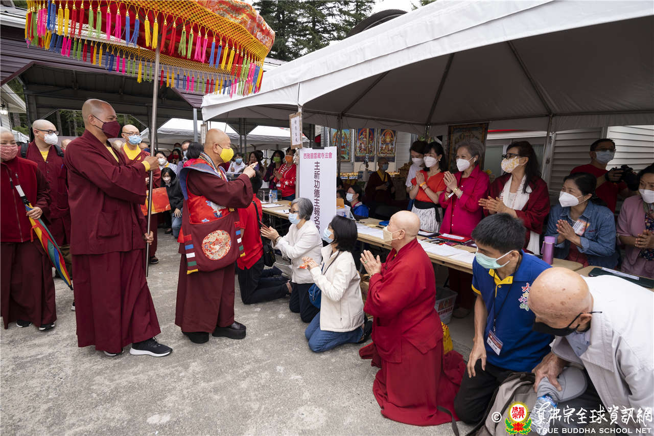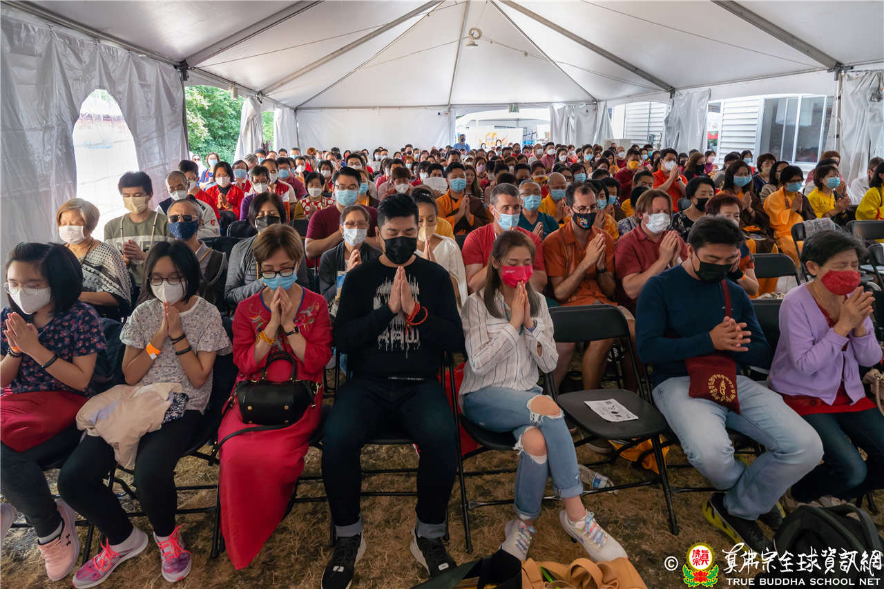 大家專心的跟隨著聖尊一起修法,一起觀看聖尊演化手印,祈願佛光注照自己過往的親人朋友、有緣無緣的眾生,都能往生西方極樂世界,也希望佛菩薩加持新冠疫情早日結束。