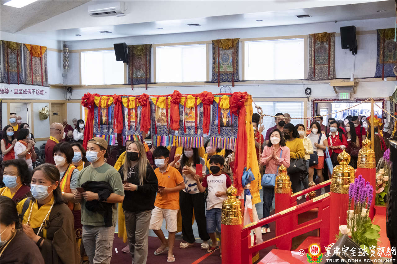 早從一周前開始,諸多上師、法師、同門就已經絡繹不絕的從世界各地湧入西雅圖雷藏寺。對於每一個人而言,來西雅圖朝聖、參加法會,就如同回家過年一樣,內心無比激動的期待着與師尊、師母、許多同門歡聚一堂。而這無盡的想念,就在法會開始蓮花童子心咒響徹雲霄、聖尊出現的那一瞬間,化為滿懷的溫馨與喜悅。
