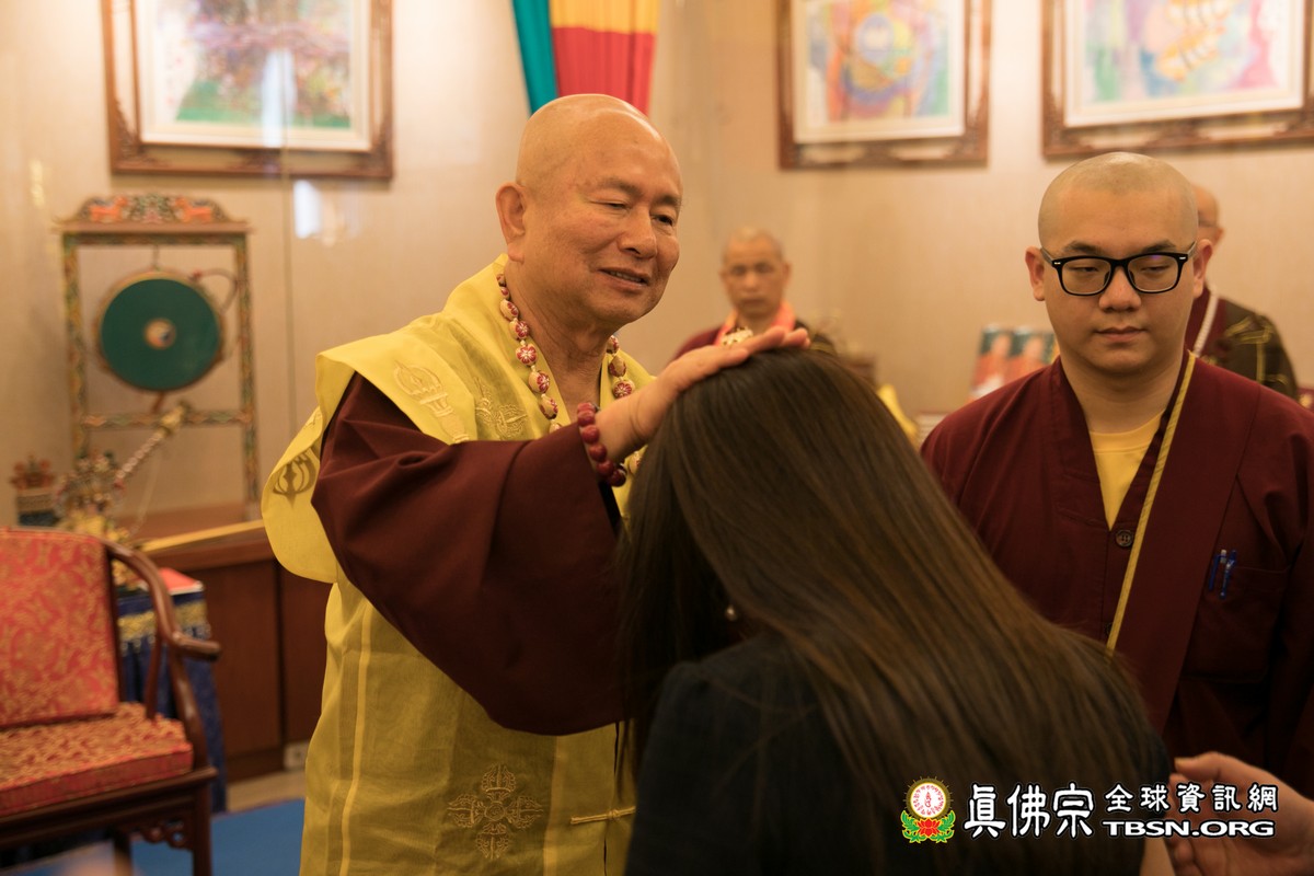 法王在開示前,特別通知大家印尼大法會的時間,歡迎大家踴躍參加,另外,真佛宗博士教授團提議,希望真佛宗威德佛學院創辦教育部認可的研究所,法王請博士教授團提一個方案出來。再針對林縣長提到的空氣汙染,法王認為陽光、空氣、水,是生存三大要素,只要吸進空氣,就留在身體裡,法王憂心人民的健康,提議研發一個全世界最大的電風扇,藉由火力發電產生電而旋轉,一面吹火力發電廠的煙囪,一面灑水,將風向吹向海面,沉澱於外海,法王也請博士教授團研究一下,此法是否可行。