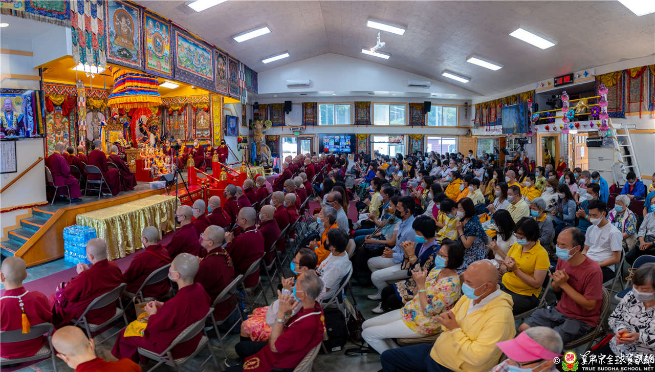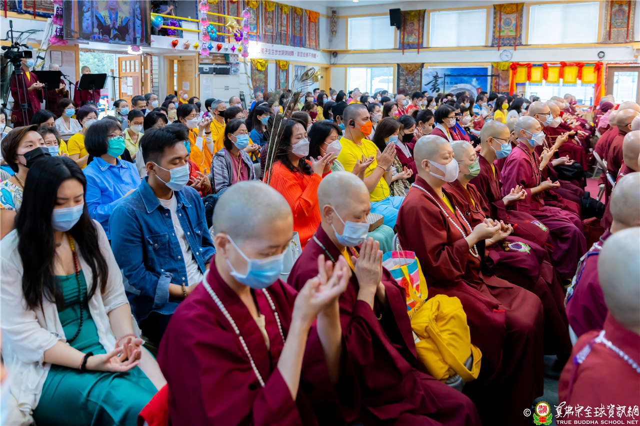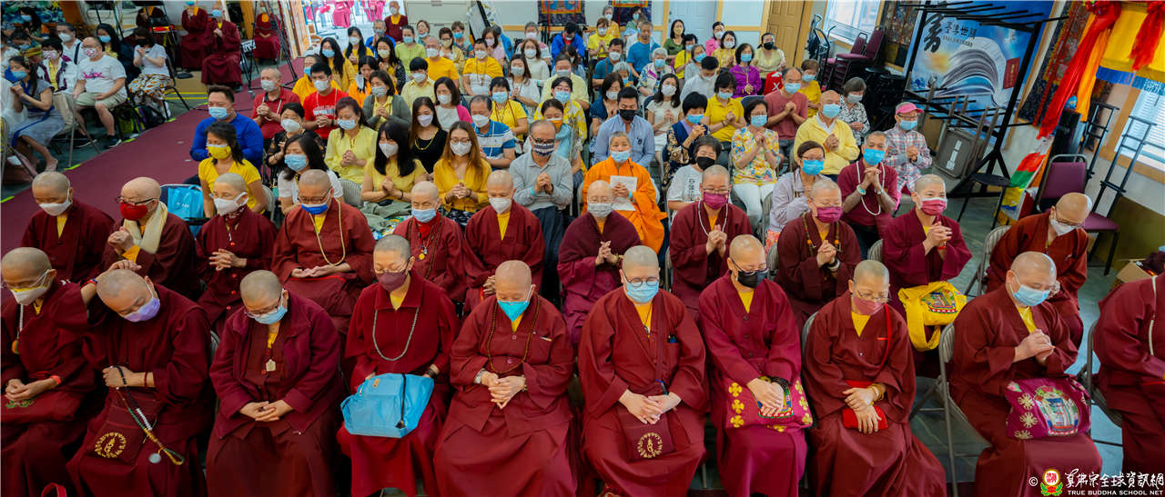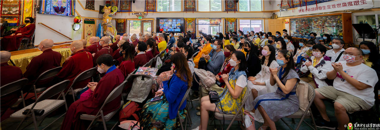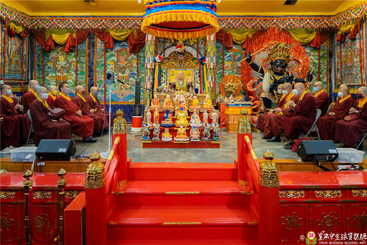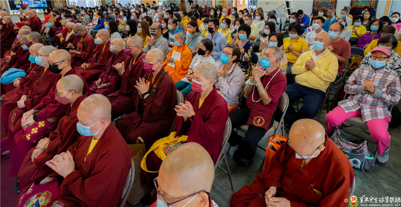 最後法王移駕到Zoom前接受弟子的感恩與祝福,弟子們紛紛在鏡頭前感謝法王。現場眾弟子接受法王的「孔雀明王」灌頂,法會圓滿結束。