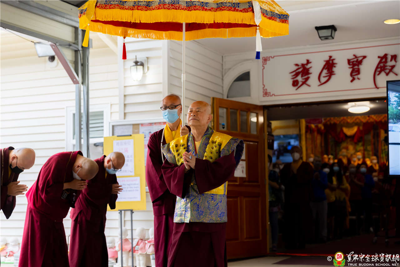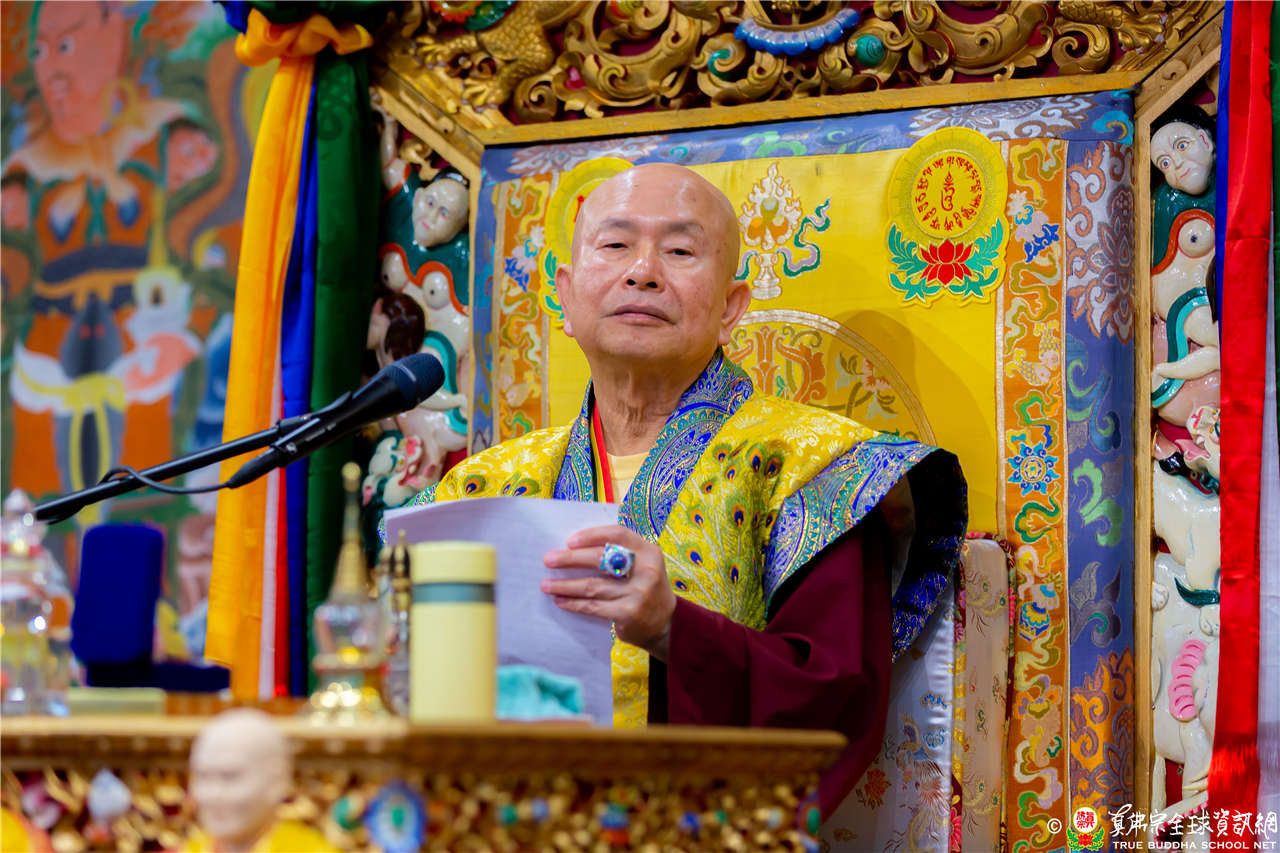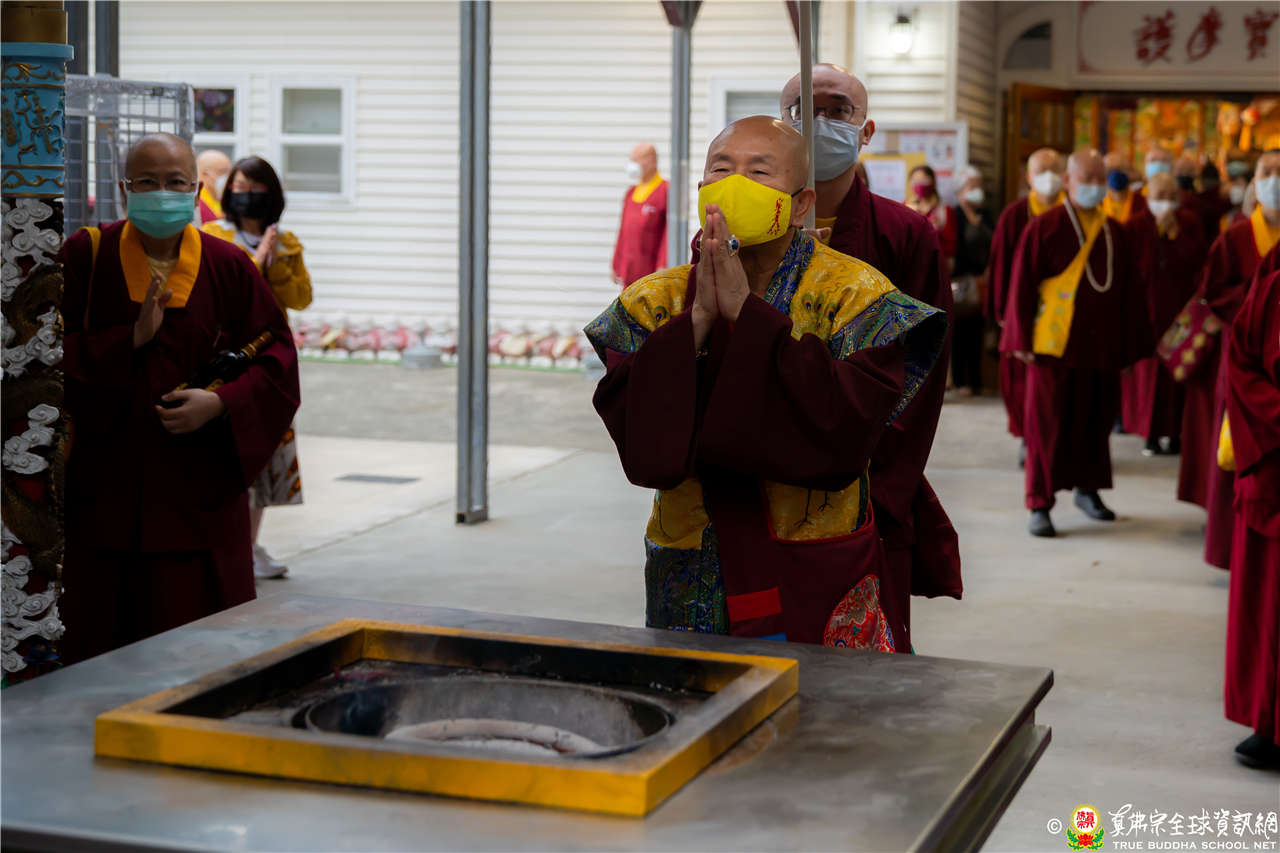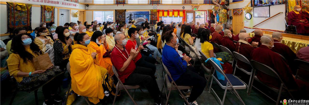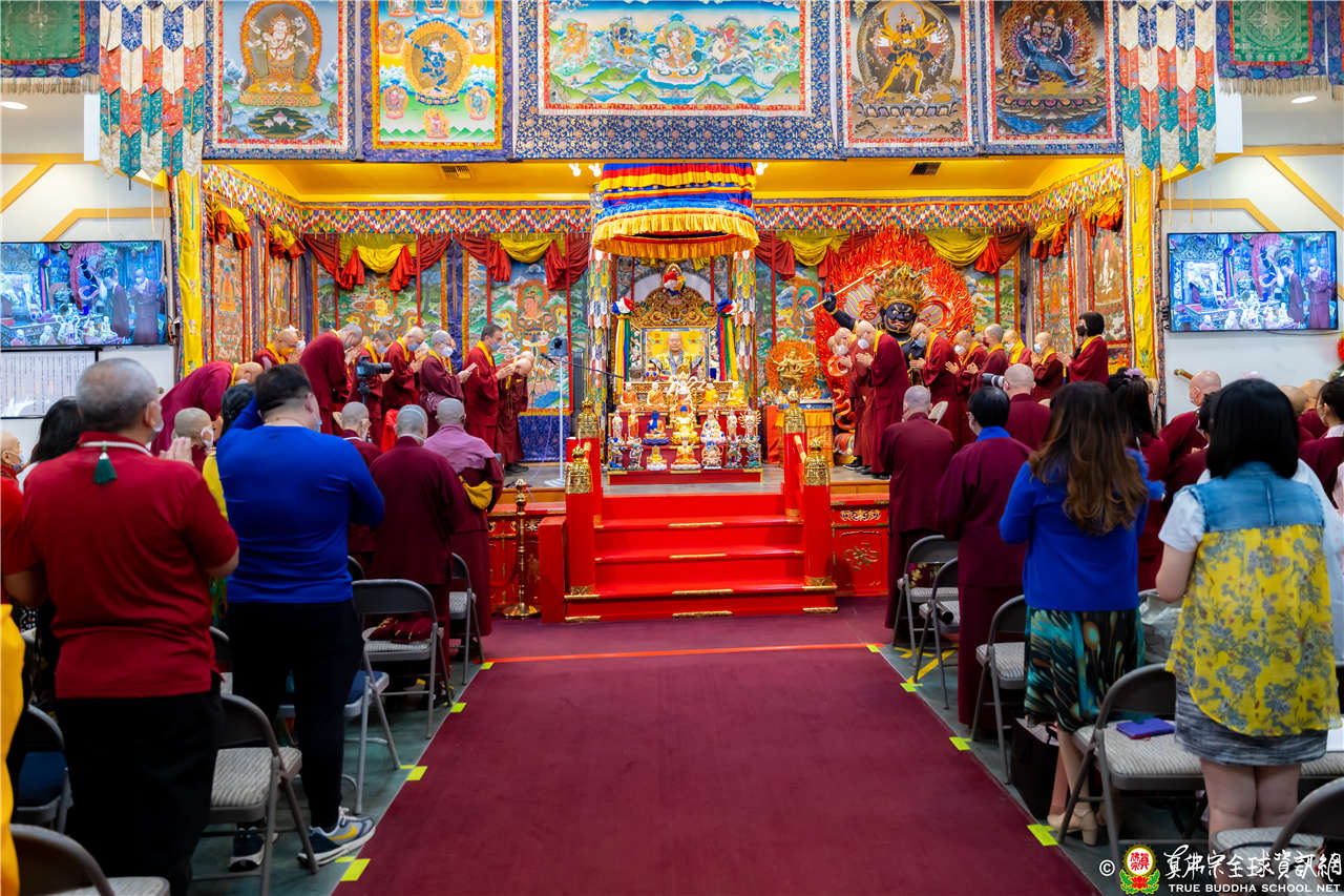 最後法王移駕到Zoom前接受弟子的感恩與祝福,弟子們紛紛在鏡頭前感謝法王。現場眾弟子接受法王的「孔雀明王」灌頂,法會圓滿結束。