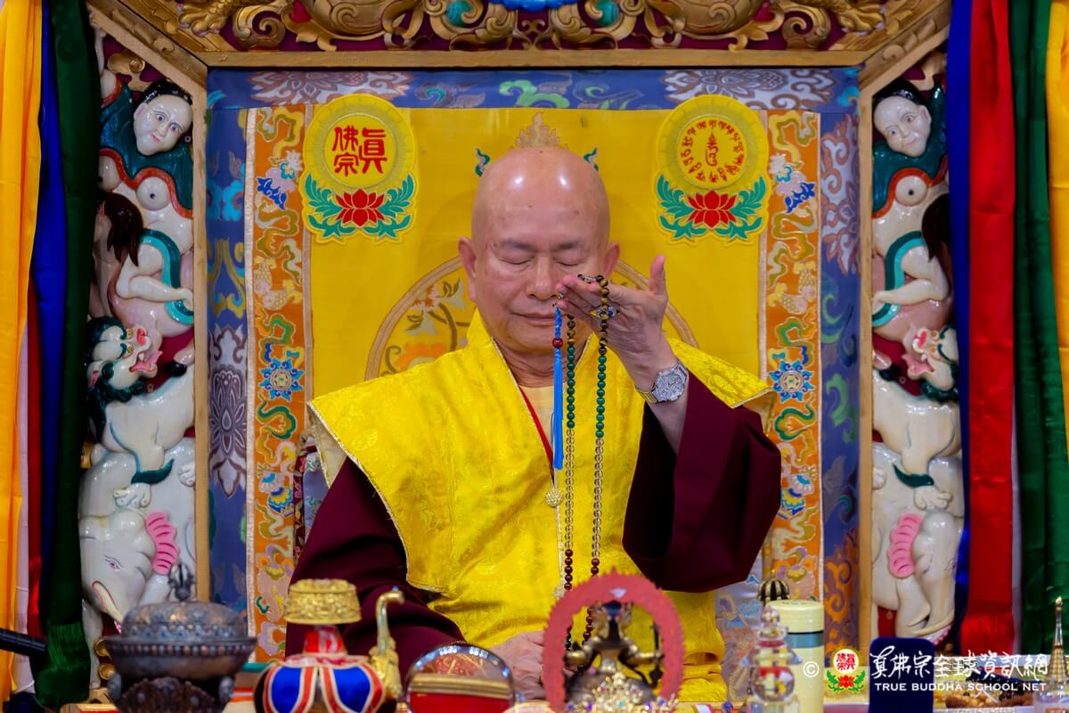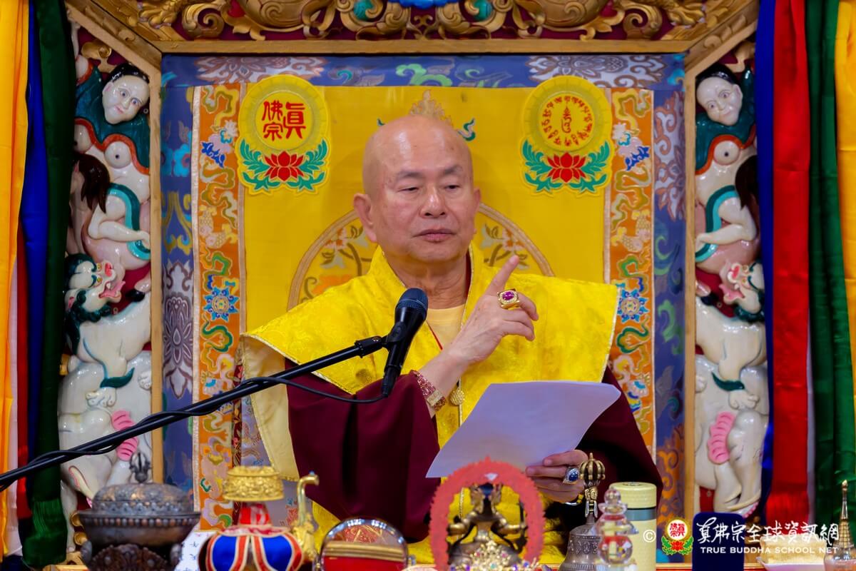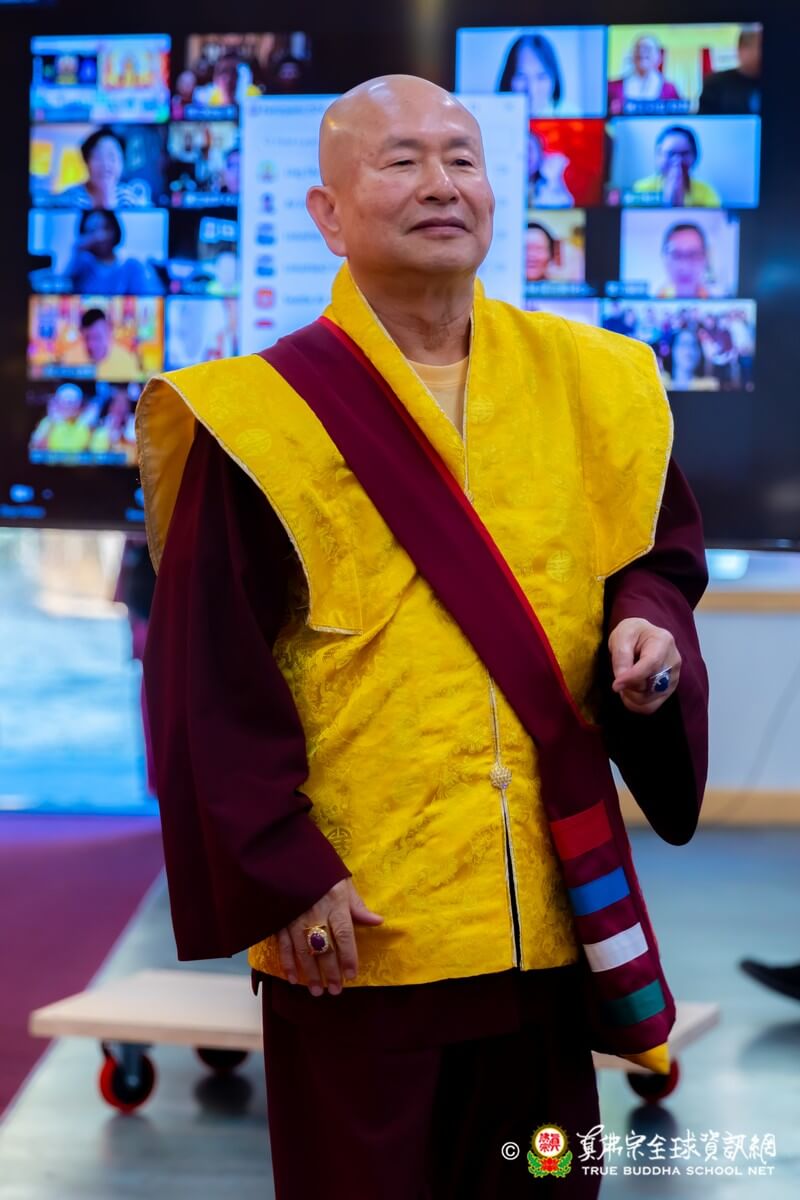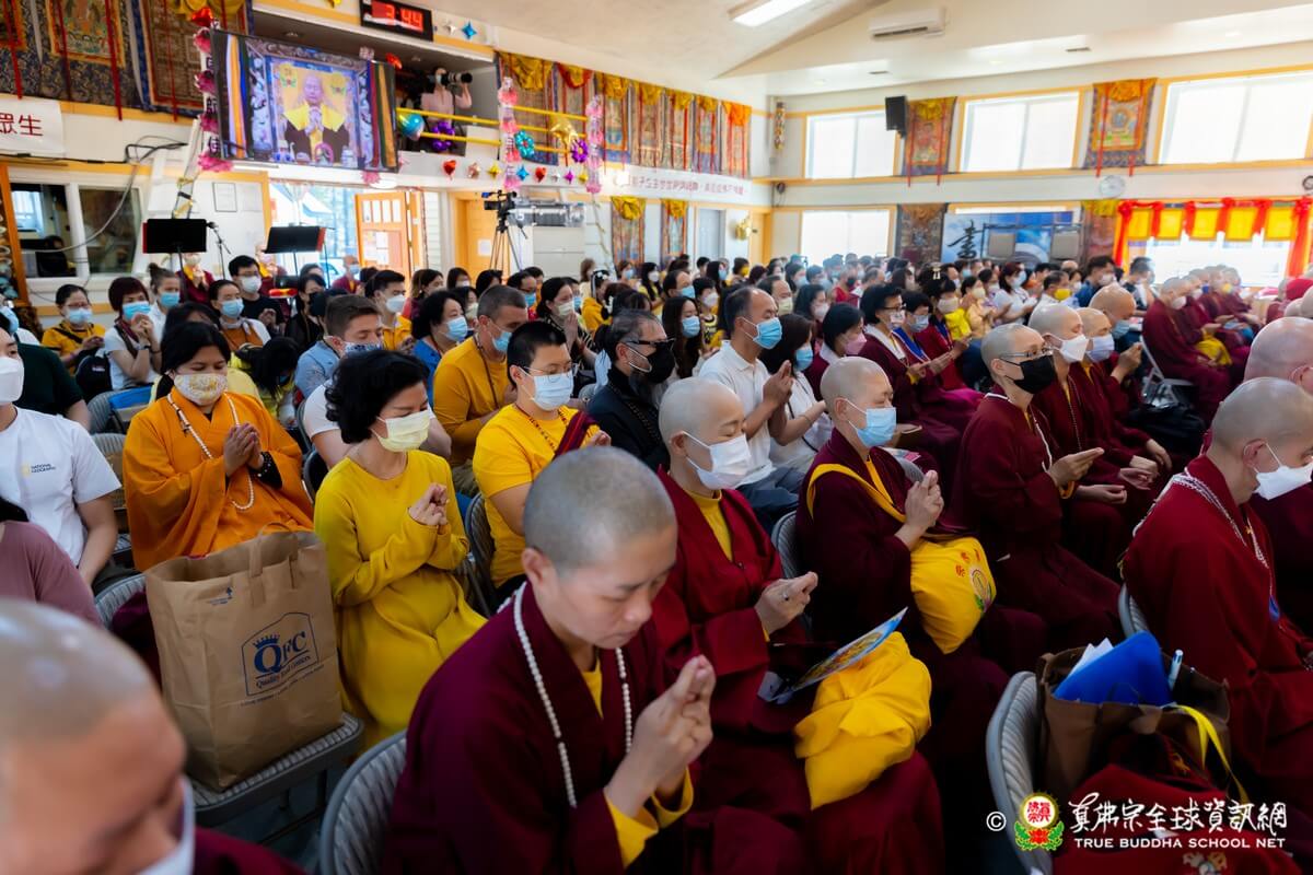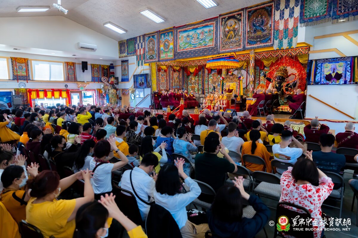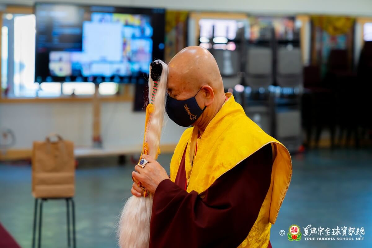 法王精辟的開示,讓全場報以熱烈的鼓掌。之後,法王與zoom上同門打招呼,並為與會大眾做「摩利支天不共大法、隱身法、除病法、刻像除難法、除瞌睡法」灌頂,法會至此圓滿結束。