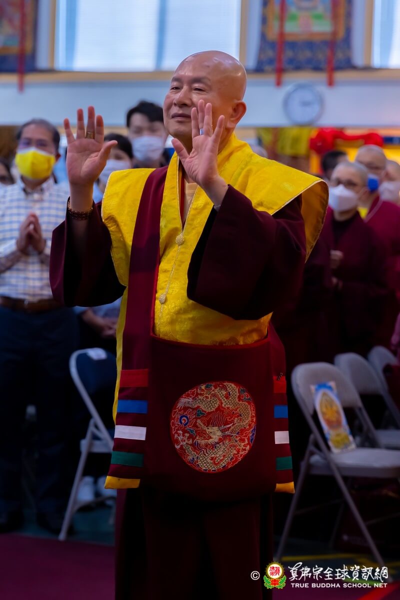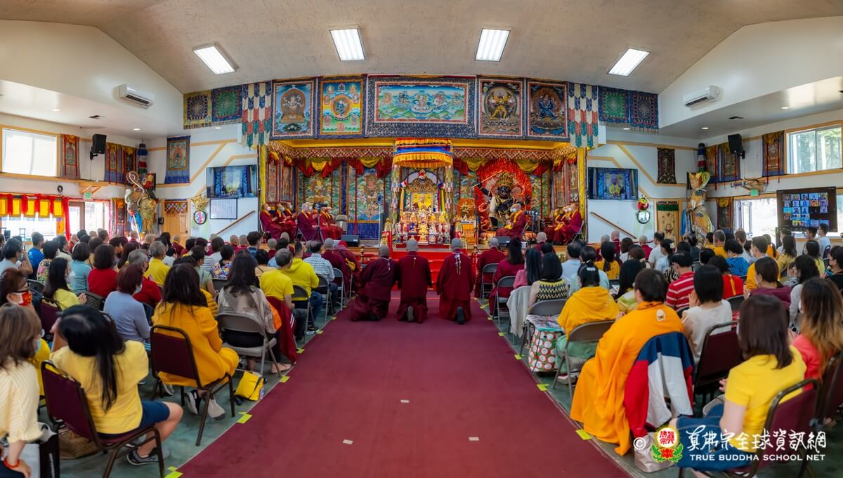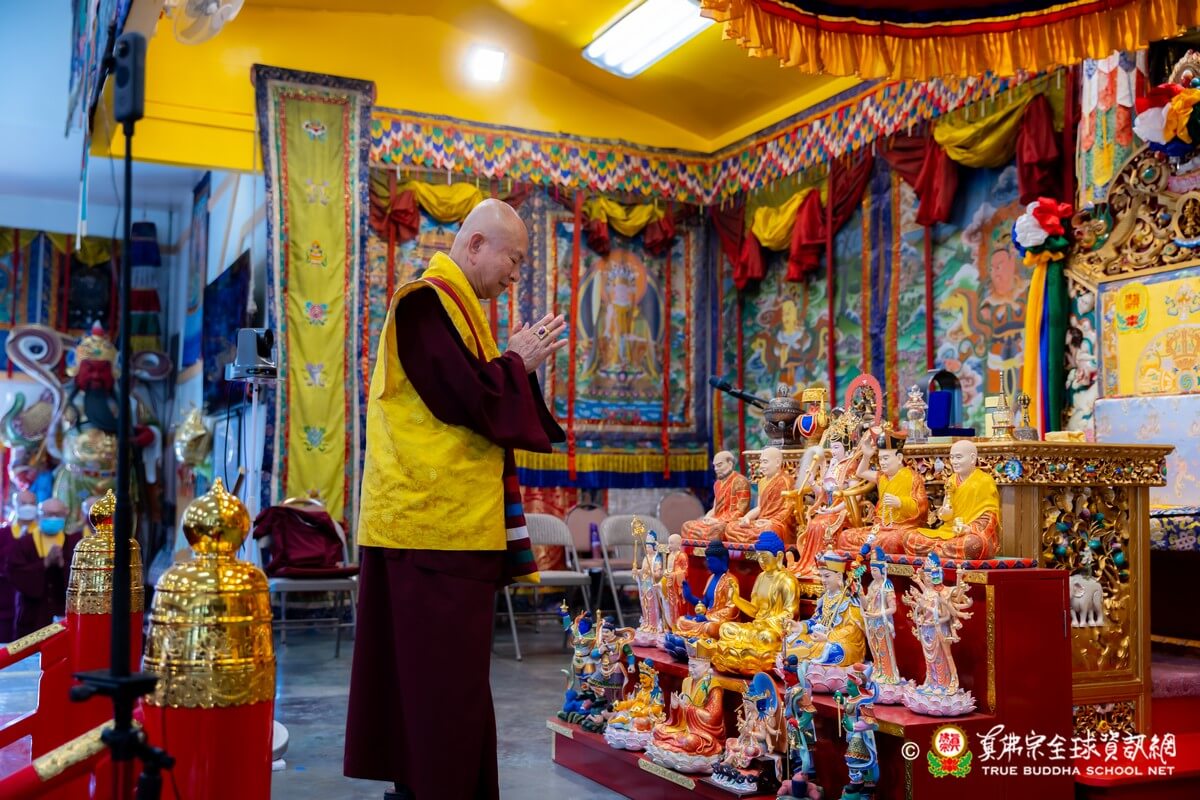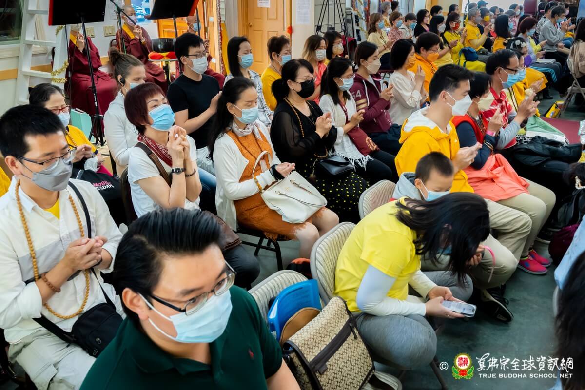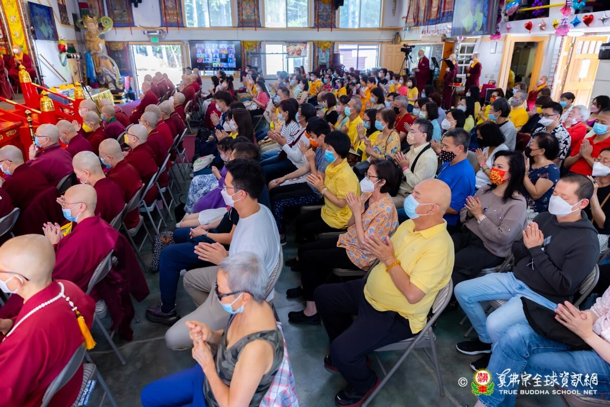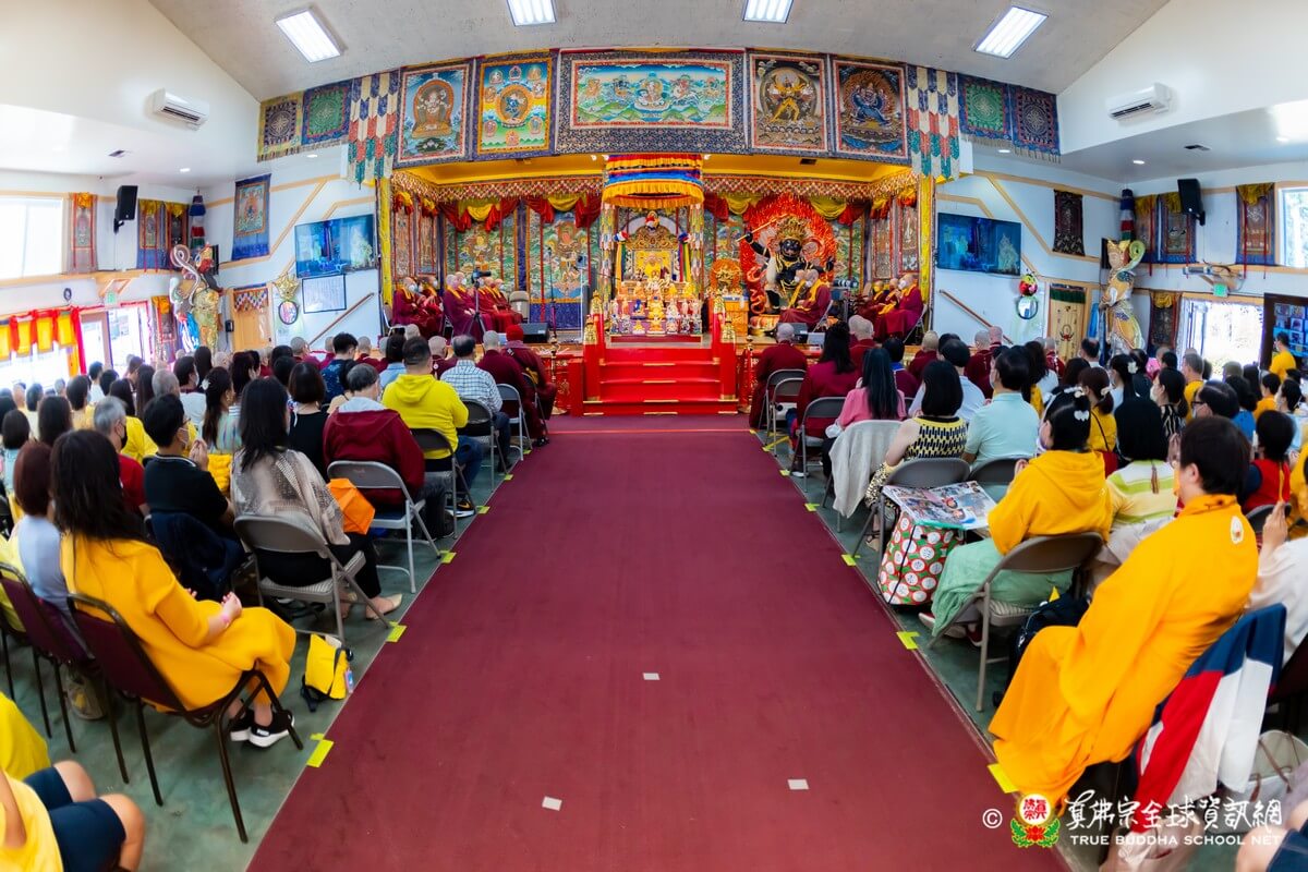 法王精辟的開示,讓全場報以熱烈的鼓掌。之後,法王與zoom上同門打招呼,並為與會大眾做「摩利支天不共大法、隱身法、除病法、刻像除難法、除瞌睡法」灌頂,法會至此圓滿結束。