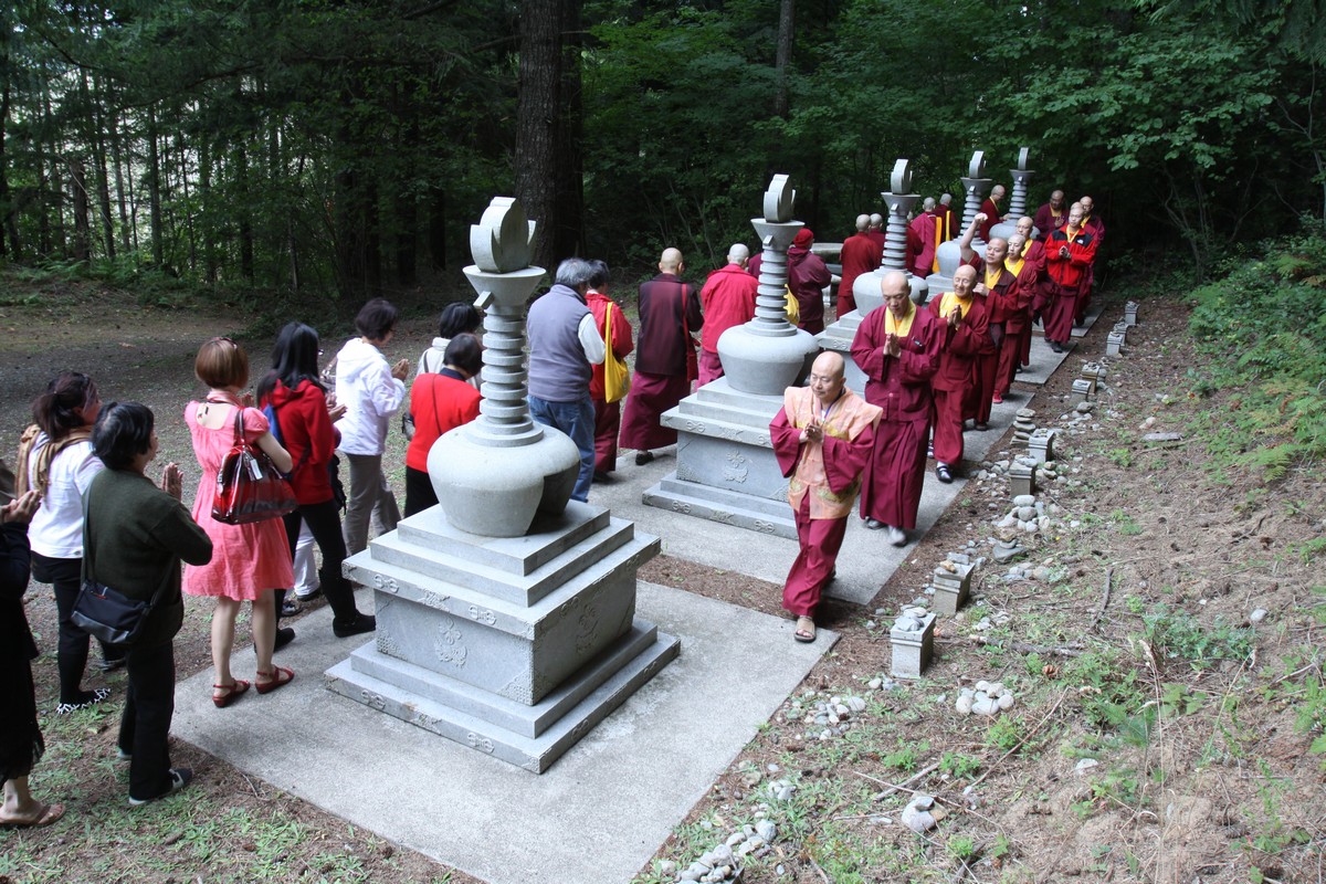 雙蓮境界靈骨塔是由根本上師親點的地靈寶穴,於2018年8月26日開光落成。根本上師開示道:彩虹雷藏寺的雙蓮境界是千里來龍的地理,綿延自洛磯山脈至此,是非常殊勝難得的地靈。骨灰若安座在雙蓮境界靈骨塔,往生者得到此地靈,至少都可以「成神」的境界。如果因為各種原因而無法有祖先的骨灰靈骨,亦可安放其遺物於雙蓮境界。正是藏風聚氣能令亡者得到安住超生,能得福蔭後代的風水寶地。