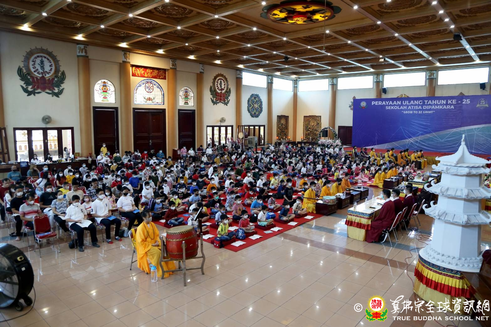 2022年10月16日印尼雷藏寺大殿聚集了青少年班真佛弟子,這是疫情緩解後第一次大活動,從小學到初中,再加上來寺裡共修的信眾,把真佛殿坐得滿滿的,只為了參加供僧大會。