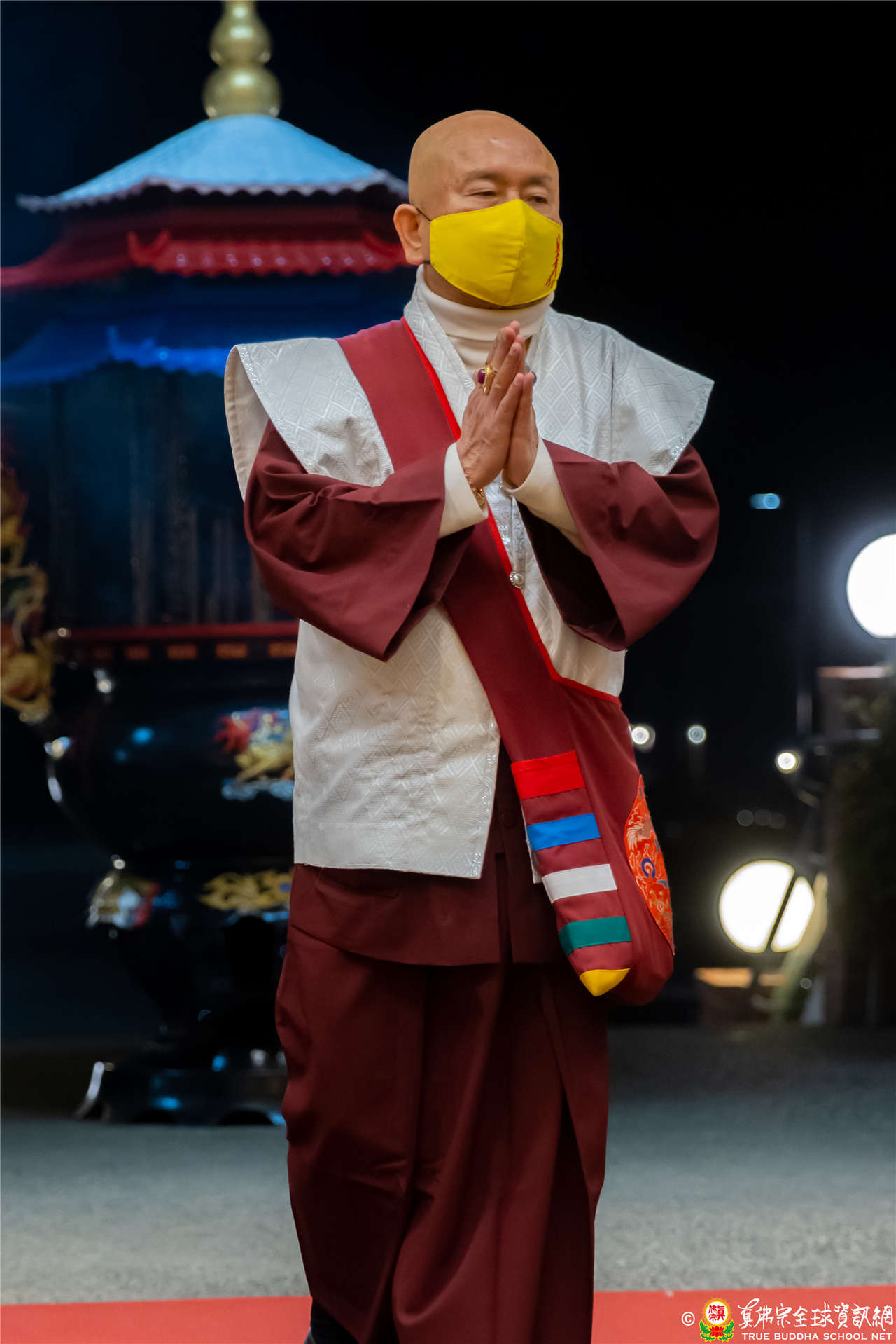 晚上八時許,在嘹亮的蓮花童子心咒樂聲中,聖尊蓮生活佛安詳徐步進入大雄寶殿,帶領大眾頂禮壇城諸佛菩薩護法金剛,並修持蓮花童子本尊法。同修後聖尊告訴大眾,蓮花童子,童子是代表清淨的意思,蓮花是出淤泥而不染,我們把自己清淨了,再教導別人清淨,這就是菩薩。