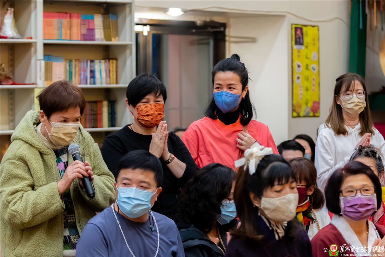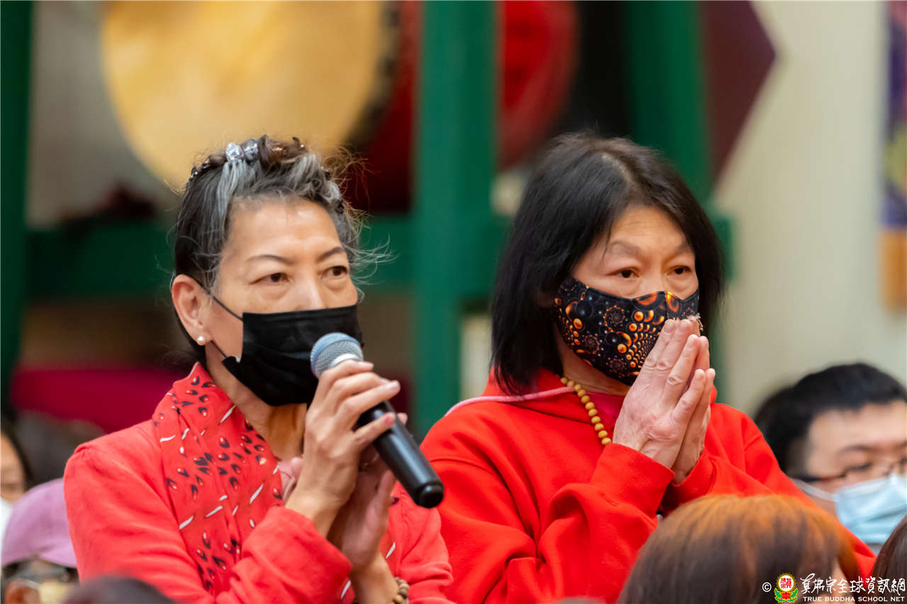 上個禮拜有一位Las Vegas來的同門,她一家人全部來皈依。她說:「師尊的背後有金色的光明。」那是因為心清淨才有的光明。《維摩詰經》的重點,「心淨則國土淨」,心裡清淨了,看任何事情都是清淨;心裡污穢,看任何事情都是污穢。