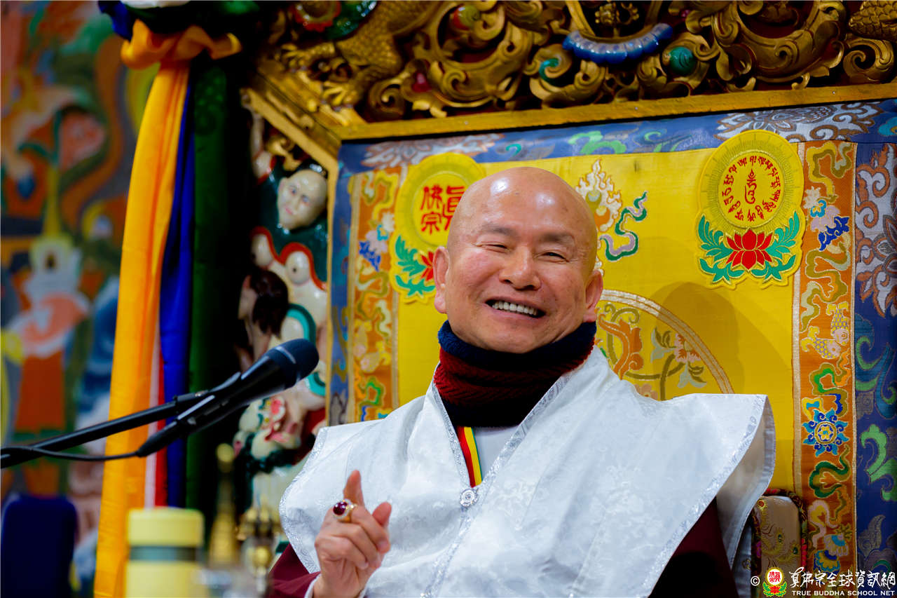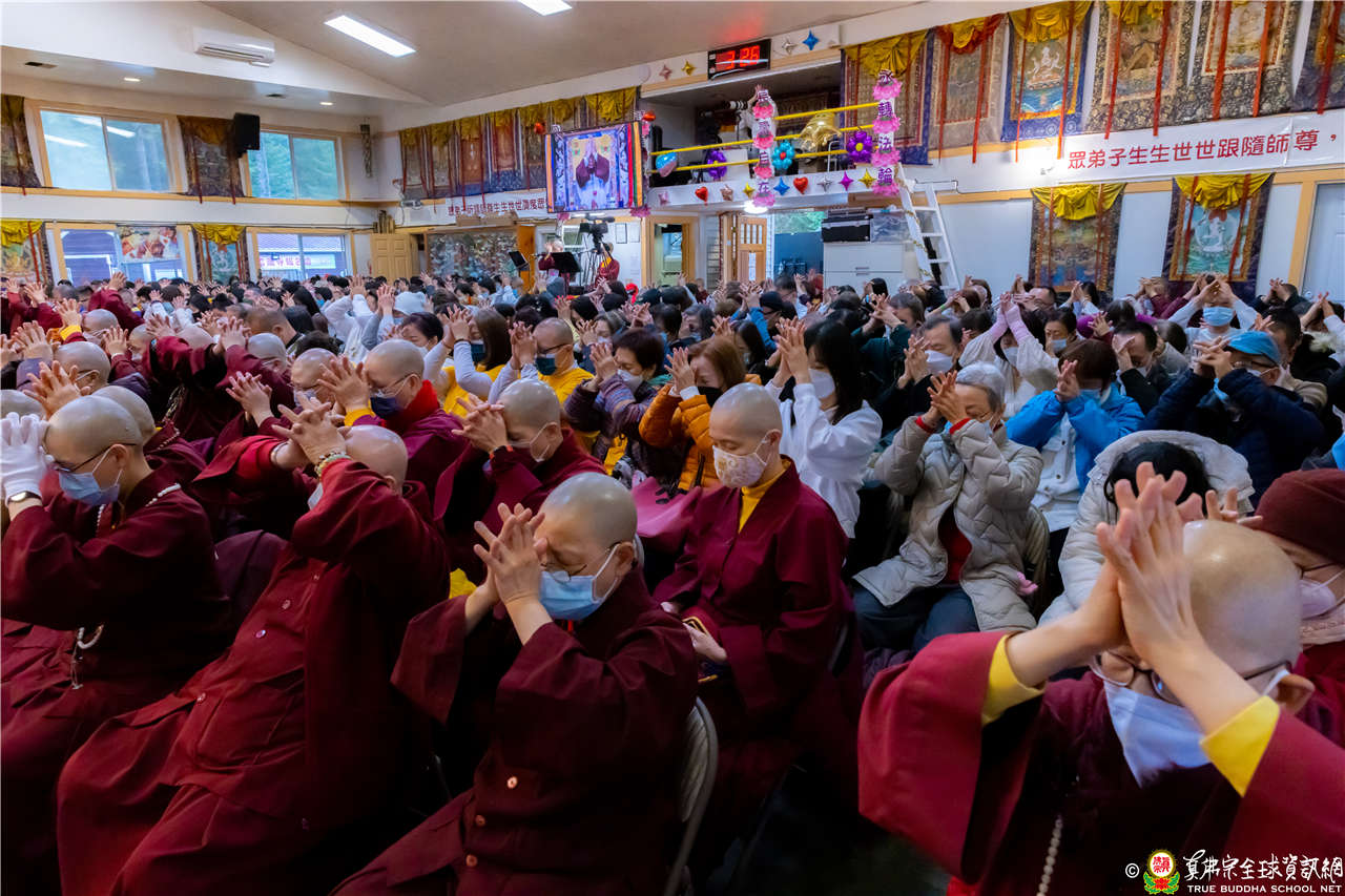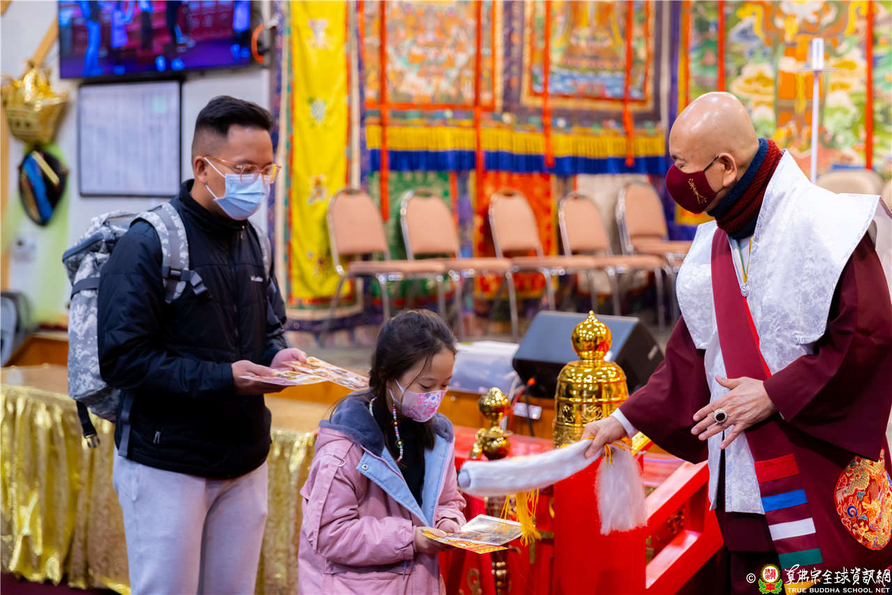 最後法王移駕到Zoom前與弟子們互動,弟子們誠摯地感恩法王開示,眾弟子接受法王的「蓮花童子」灌頂,法會圓滿結束。