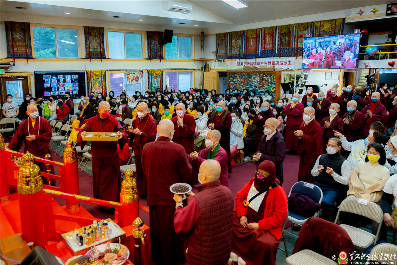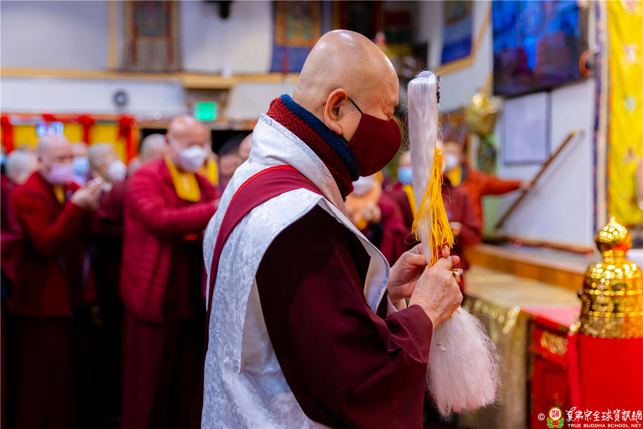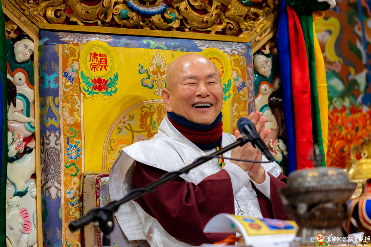 最後法王移駕到Zoom前與弟子們互動,弟子們誠摯地感恩法王開示,眾弟子接受法王的「蓮花童子」灌頂,法會圓滿結束。