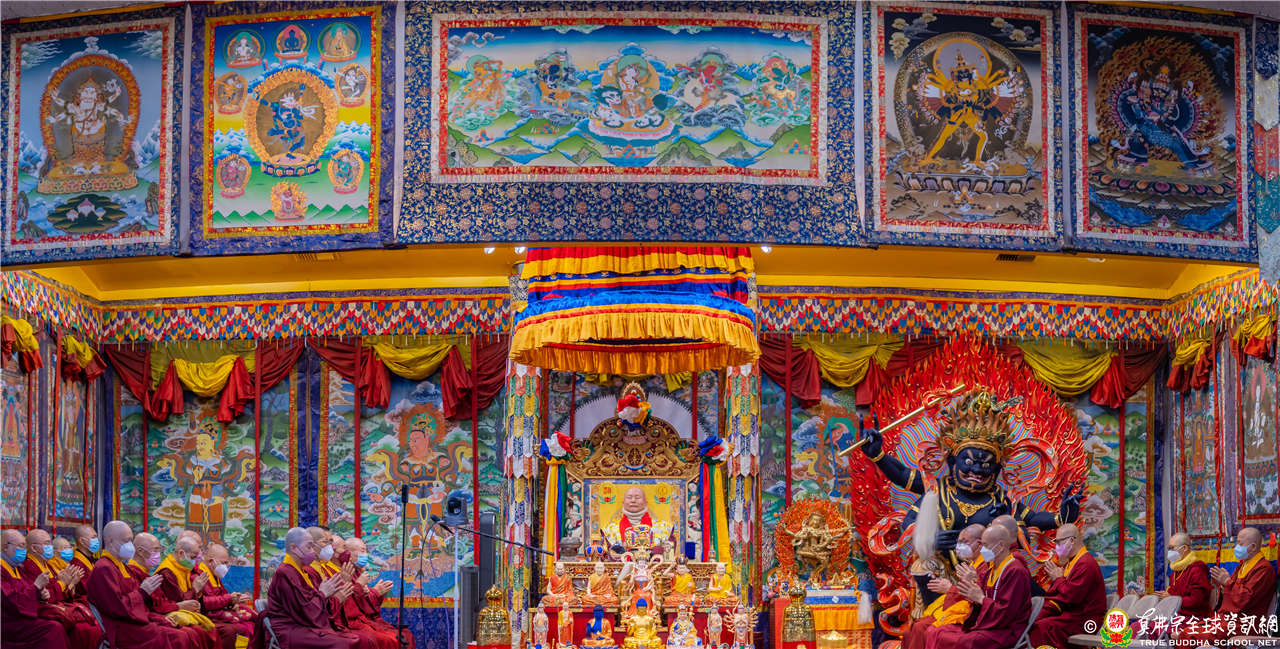 解答弟子的提問後,法王繼續講解【維摩詰經】中的「金髻菩薩、珠髻菩薩、彌勒菩薩、文殊師利法王子菩薩,如是等三萬二千人。」
