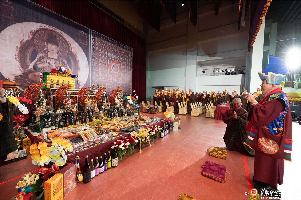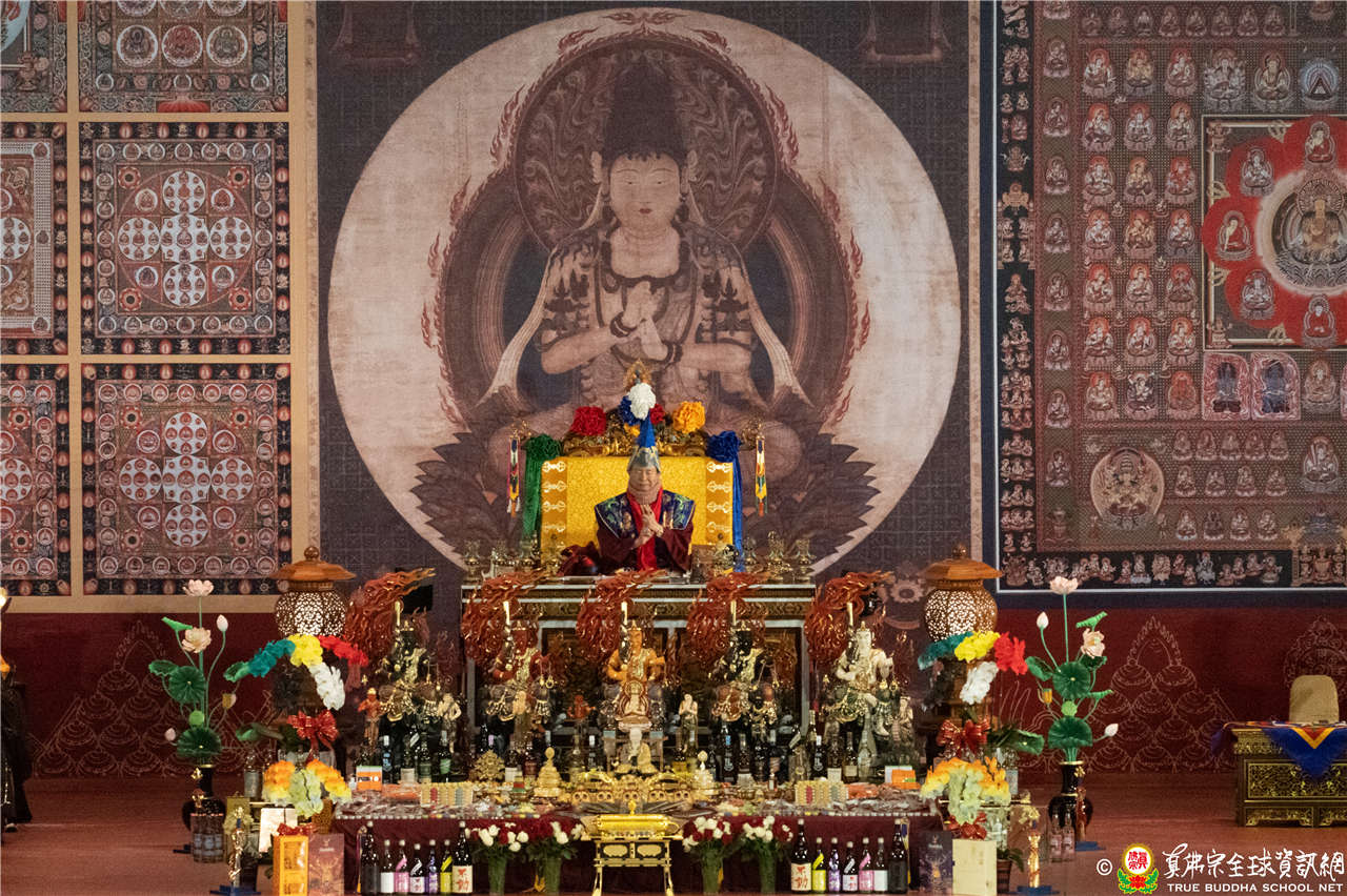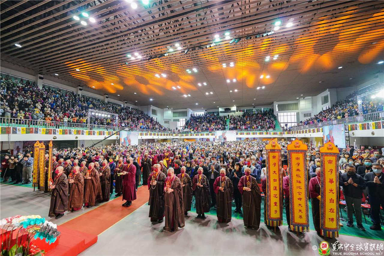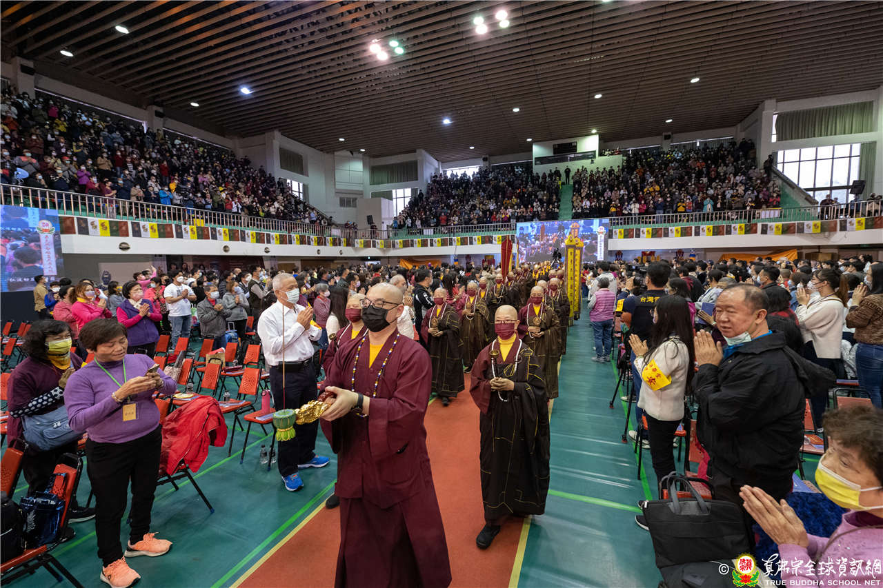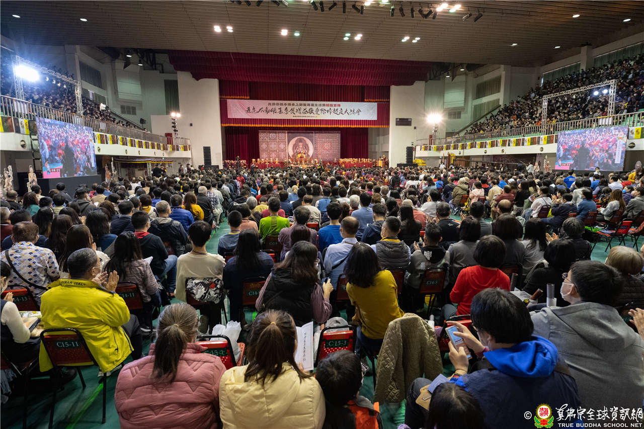 2023年元旦,人人歡喜迎接新一年的來臨。在這人人普慶的一天,台灣嘉義市真佛宗法華堂恭請蓮生法王到嘉義市立港坪運動中心體育館主持「五色不動明王息災增益敬愛除障超度大法會」,首傳「五色不動明王不共大法」。法會現場莊嚴殊勝,台上除了有巨幅的大日如來唐卡,更有金剛界曼荼羅及胎藏界曼荼法相圖。原來「不動明王」是八大明王首座,也是金胎兩部部主「大日如來」的變化身及教令輪。下午兩點,法會開始,大會迎師組恭迎蓮生法王入道場。