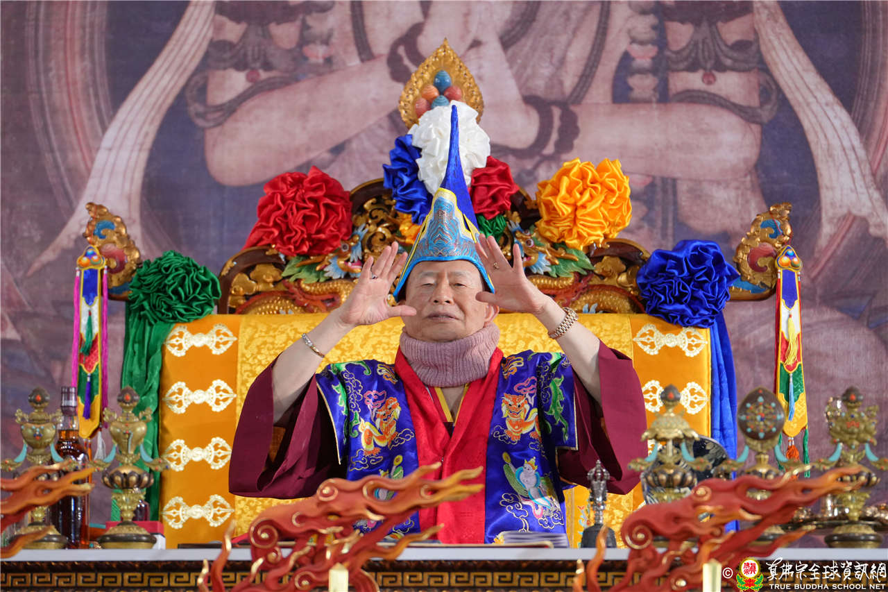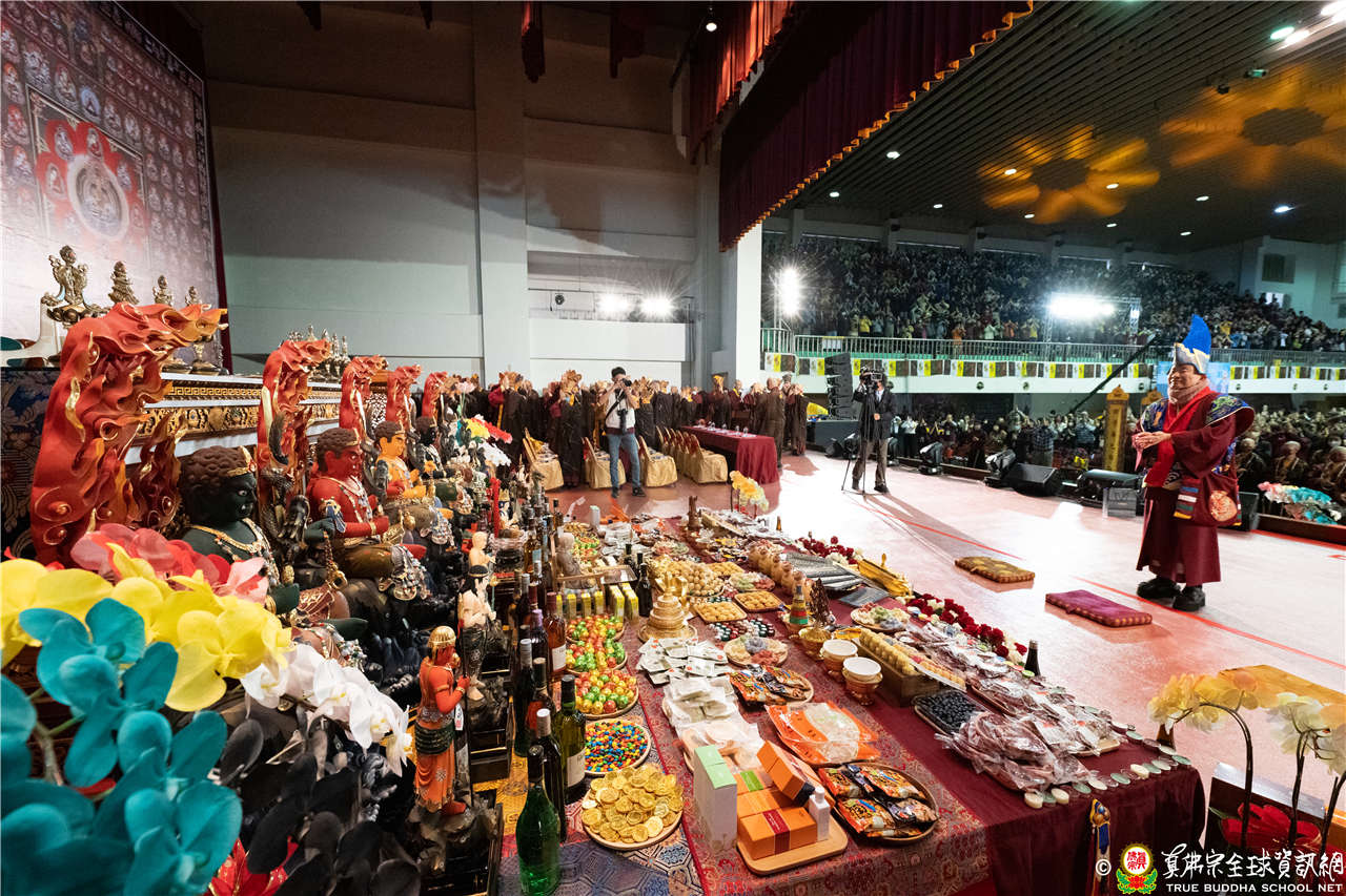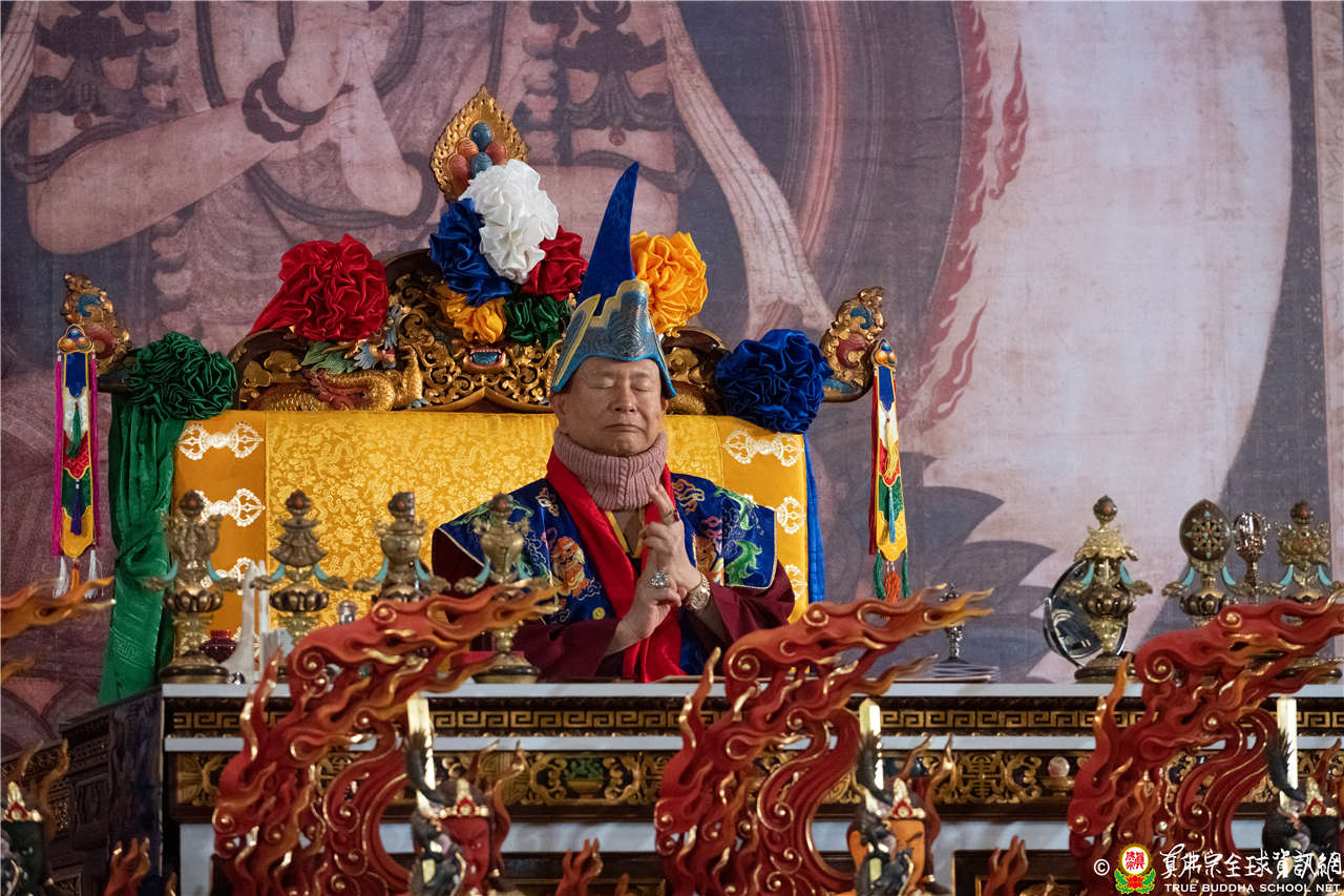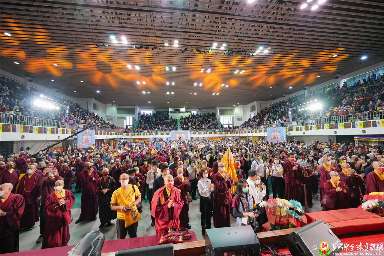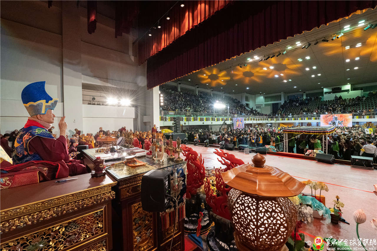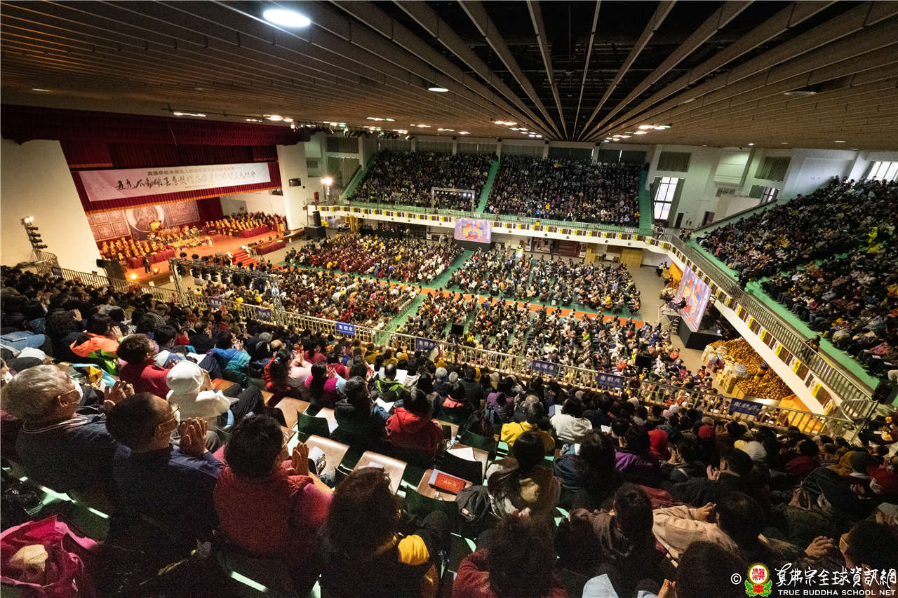 2023年元旦,人人歡喜迎接新一年的來臨。在這人人普慶的一天,台灣嘉義市真佛宗法華堂恭請蓮生法王到嘉義市立港坪運動中心體育館主持「五色不動明王息災增益敬愛除障超度大法會」,首傳「五色不動明王不共大法」。法會現場莊嚴殊勝,台上除了有巨幅的大日如來唐卡,更有金剛界曼荼羅及胎藏界曼荼法相圖。原來「不動明王」是八大明王首座,也是金胎兩部部主「大日如來」的變化身及教令輪。下午兩點,法會開始,大會迎師組恭迎蓮生法王入道場。