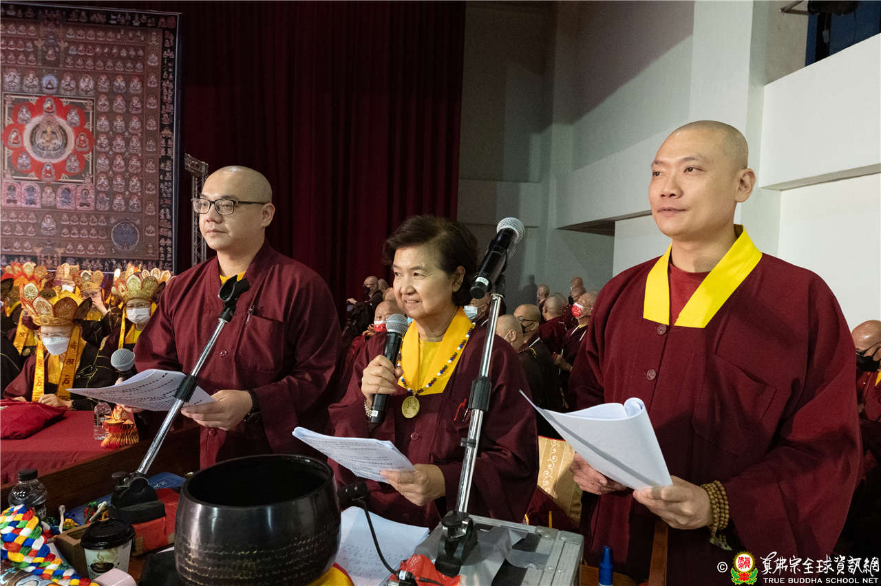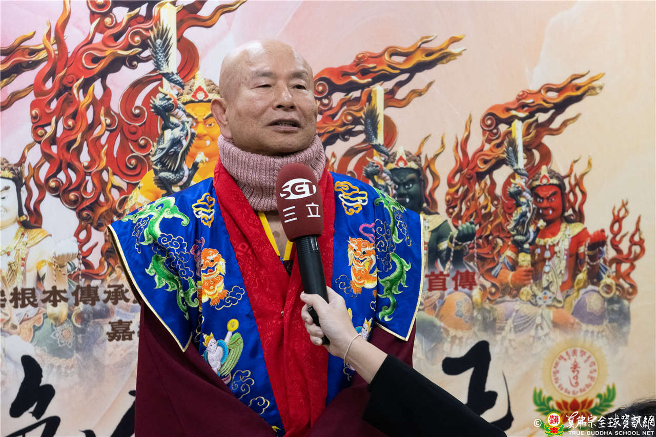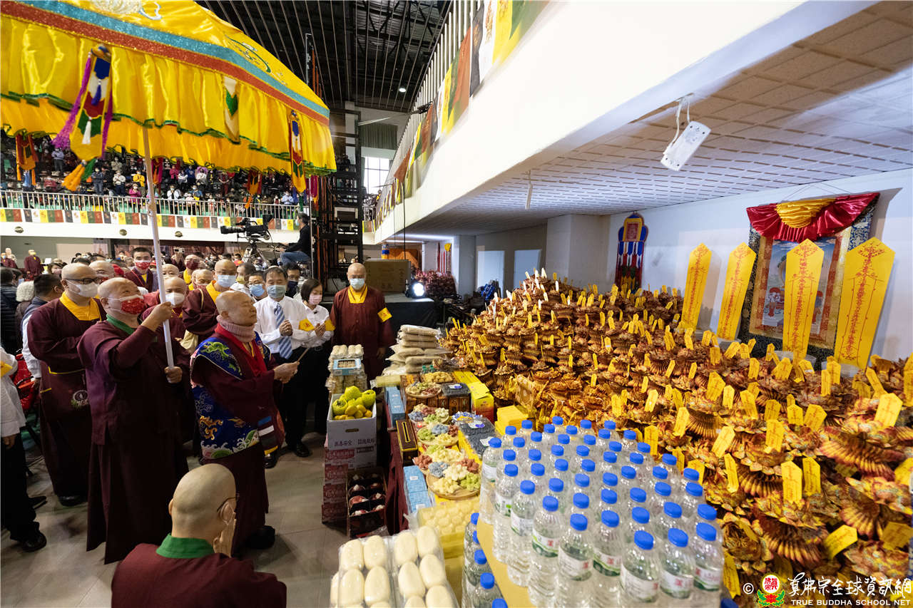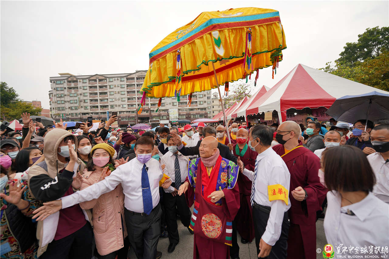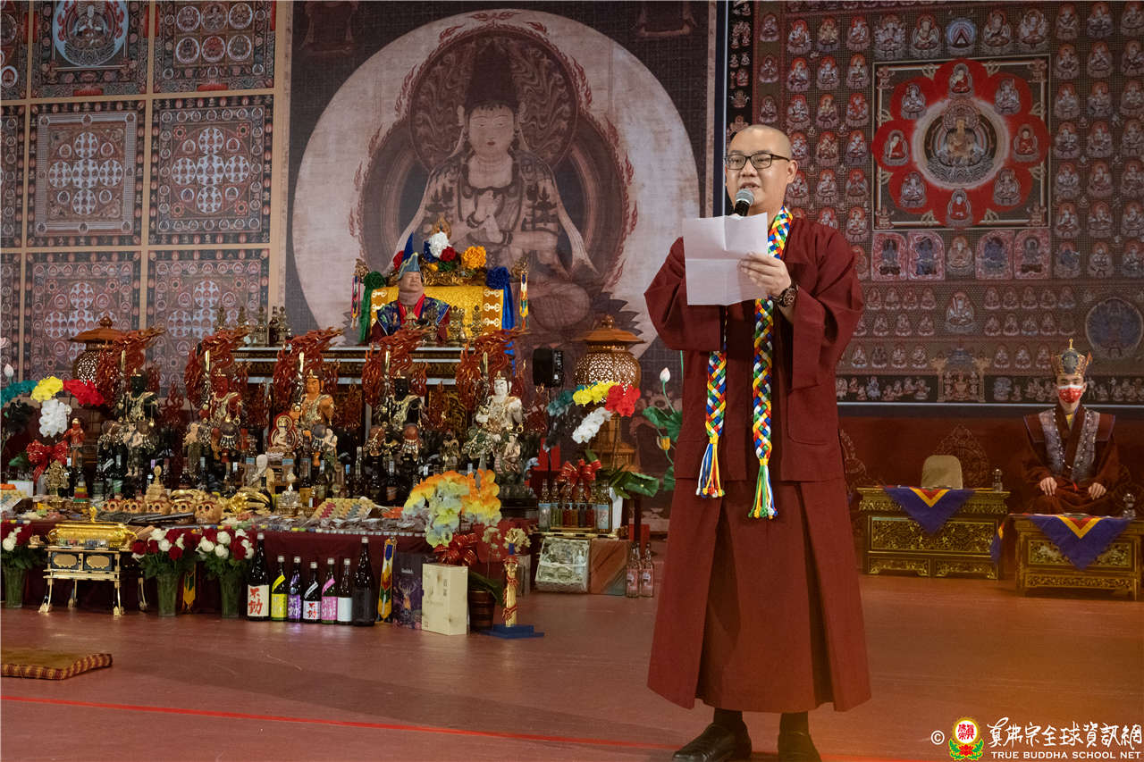 2023年元旦,人人歡喜迎接新一年的來臨。在這人人普慶的一天,台灣嘉義市真佛宗法華堂恭請蓮生法王到嘉義市立港坪運動中心體育館主持「五色不動明王息災增益敬愛除障超度大法會」,首傳「五色不動明王不共大法」。法會現場莊嚴殊勝,台上除了有巨幅的大日如來唐卡,更有金剛界曼荼羅及胎藏界曼荼法相圖。原來「不動明王」是八大明王首座,也是金胎兩部部主「大日如來」的變化身及教令輪。下午兩點,法會開始,大會迎師組恭迎蓮生法王入道場。