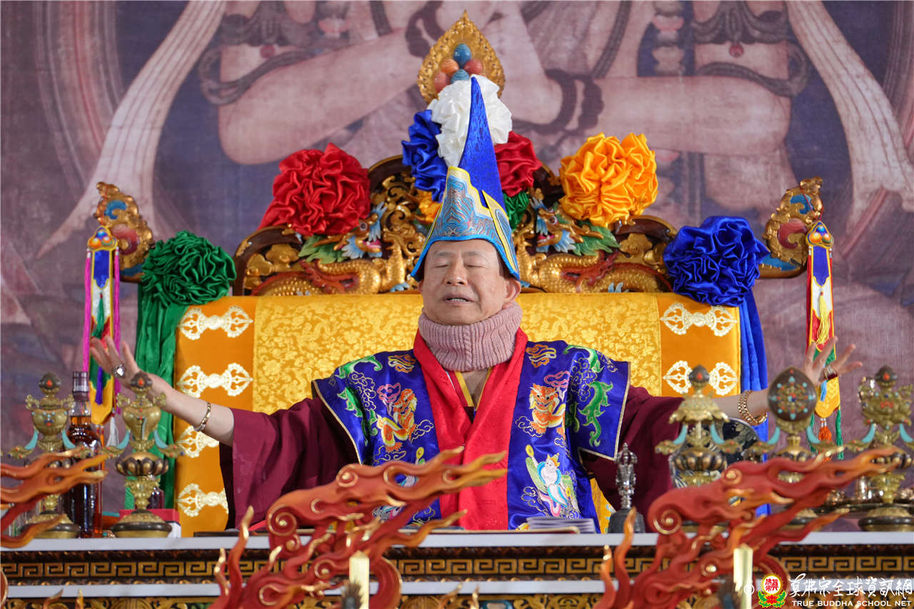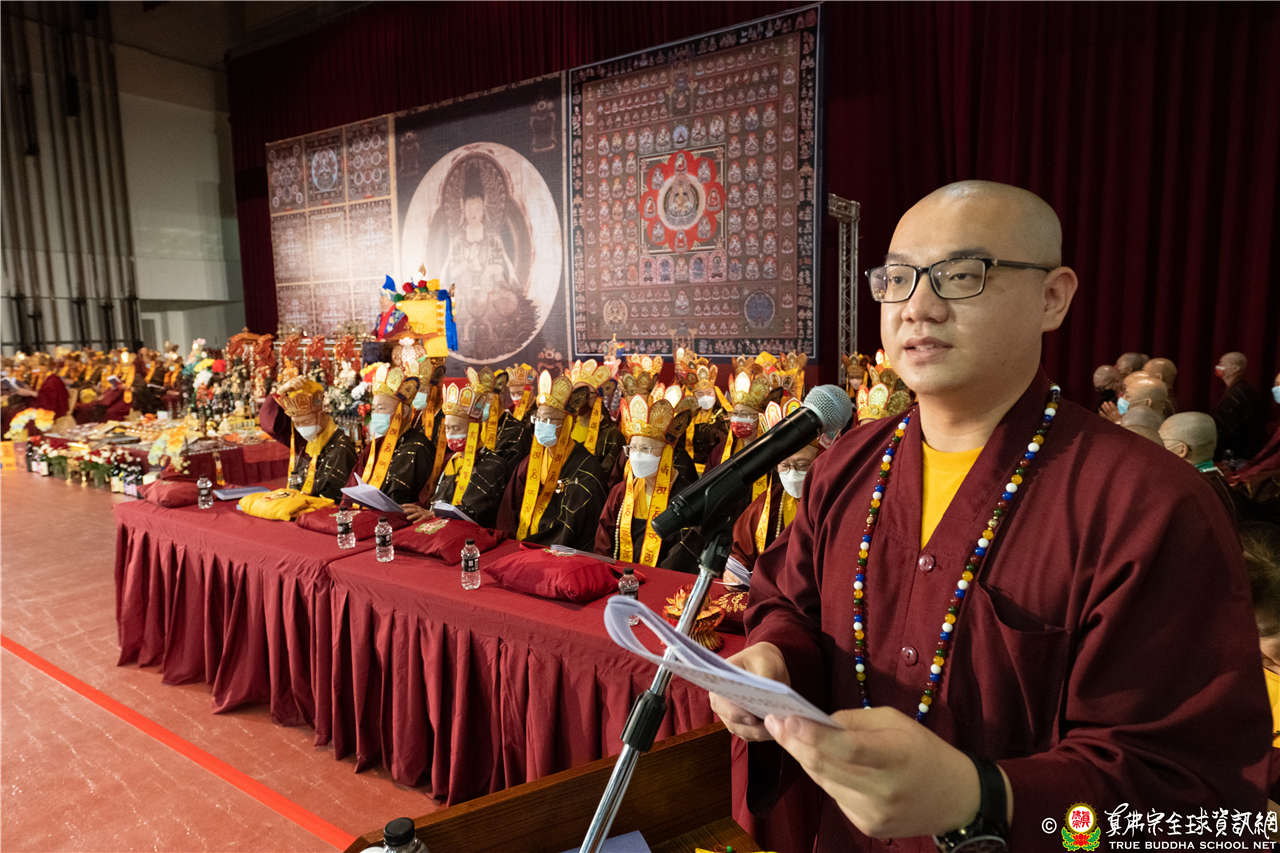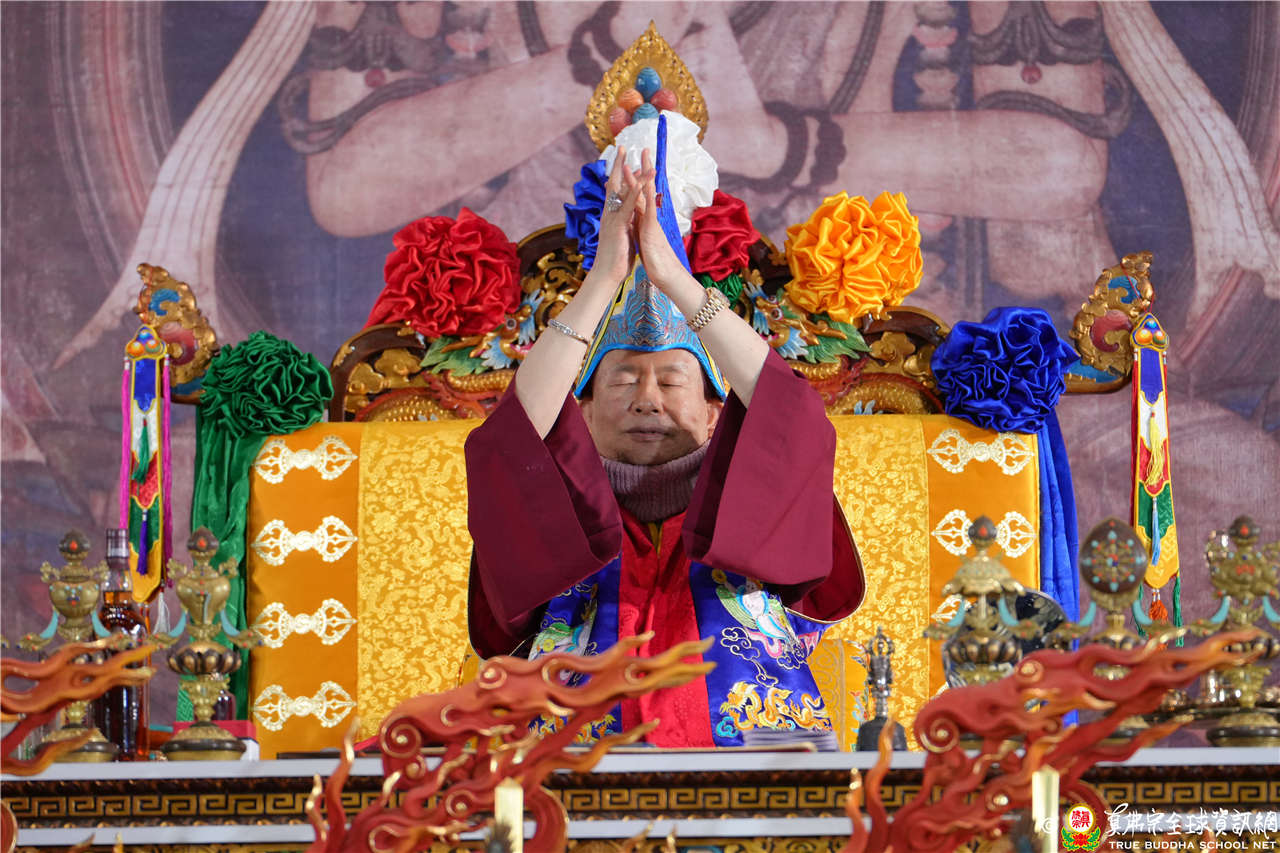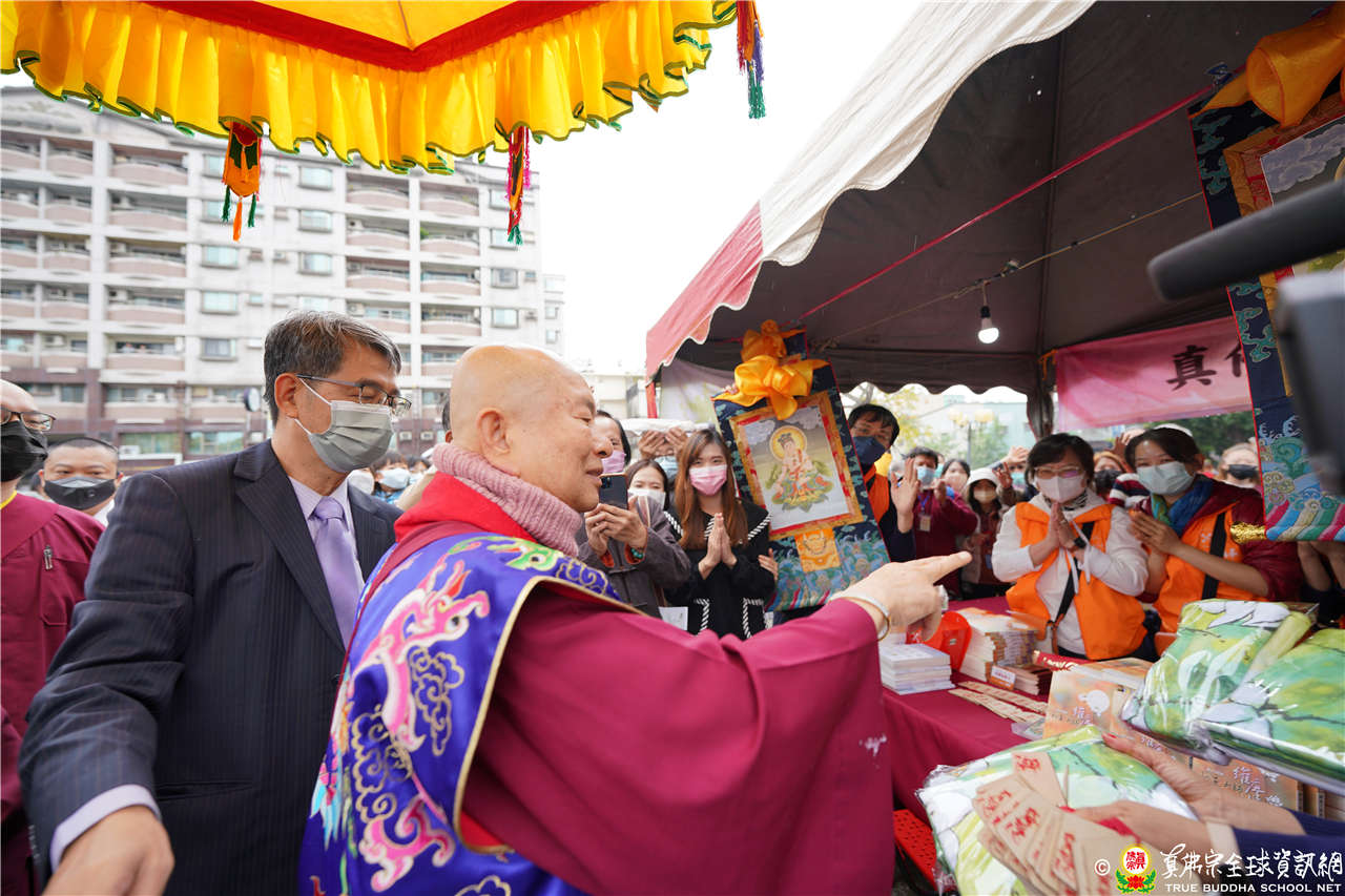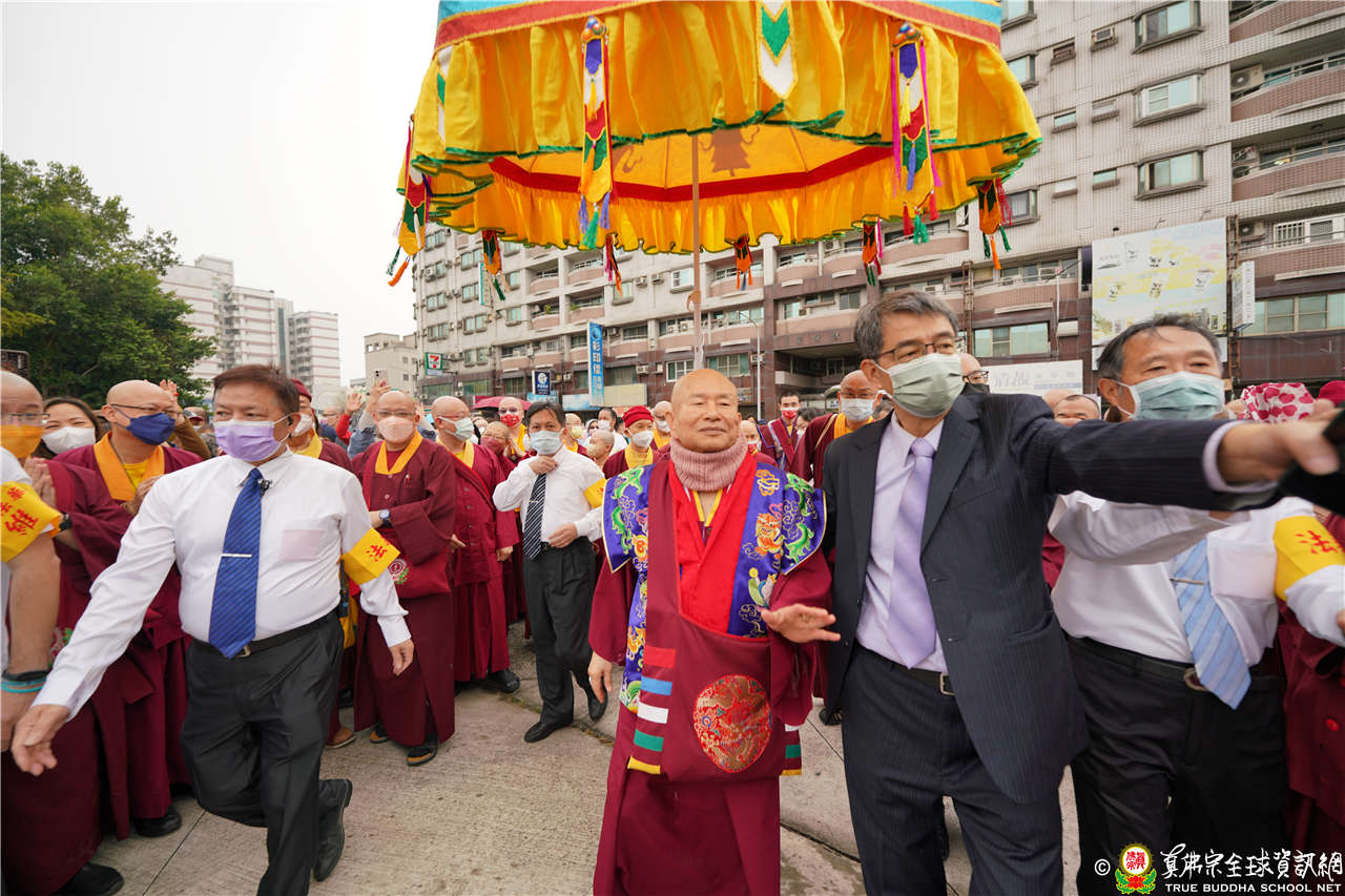 2023年元旦,人人歡喜迎接新一年的來臨。在這人人普慶的一天,台灣嘉義市真佛宗法華堂恭請蓮生法王到嘉義市立港坪運動中心體育館主持「五色不動明王息災增益敬愛除障超度大法會」,首傳「五色不動明王不共大法」。法會現場莊嚴殊勝,台上除了有巨幅的大日如來唐卡,更有金剛界曼荼羅及胎藏界曼荼法相圖。原來「不動明王」是八大明王首座,也是金胎兩部部主「大日如來」的變化身及教令輪。下午兩點,法會開始,大會迎師組恭迎蓮生法王入道場。