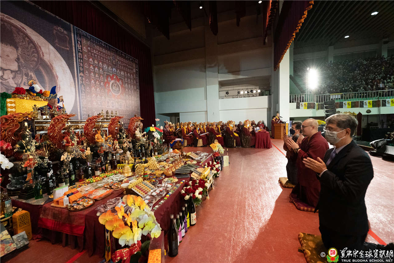 法會開始前,大會個別邀請來自嘉義市的陳淑慧副市長、南投市的張嘉哲市長以及華邦電子公司副董事長詹東義先生上台致詞。稍後,法華堂代表釋蓮碤法師敬獻哈達及致詞。緊接著,萬眾期待的「五色不動明王息災增益敬愛除障超度大法會」正式開始。