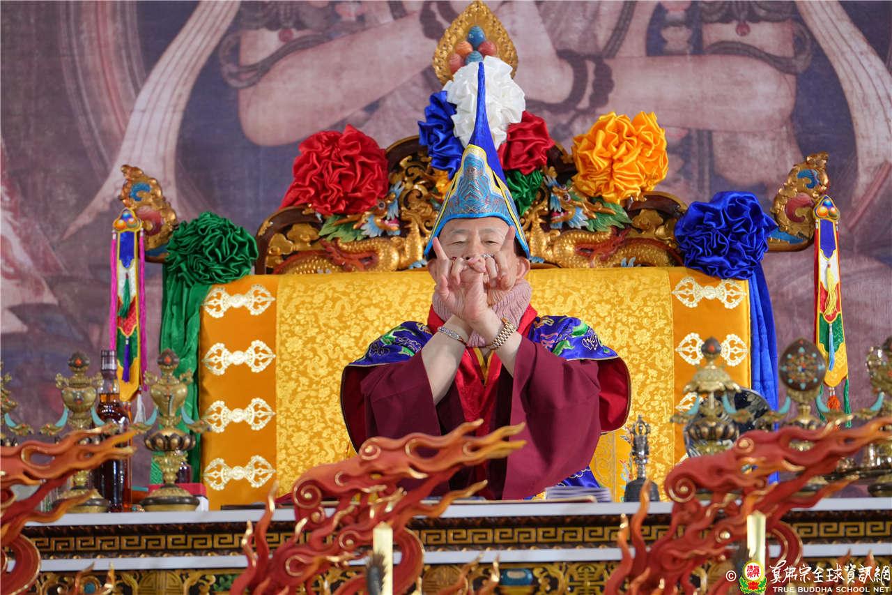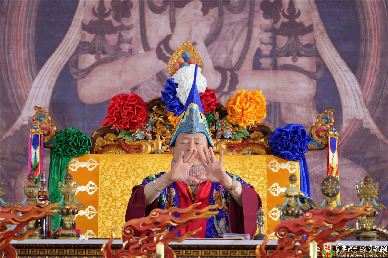 法王簡述要以五色不動明王的身來對治自己,聽聞及接受佛法後,要守五戒,斷惡修善。如此一來,便能產生大智慧。斷煩惱、斷我執後,能夠做到「無我」、「無心」、「無念」,便即身成佛。法王強調心是找不到的,只有無心時,才明白自己是幻身,財色名能夠全斷,就是即身成佛的時候。「發菩提心、斷惡修善、得大智慧」都是為了「即身成佛」。不動明王的偈中,可將「我」改成「佛」,「見佛身者發菩提心、聞佛名者斷惡修善、聽佛說者得大智慧、知佛心者即身成佛」,不動明王就是比毘盧遮那佛的化身。