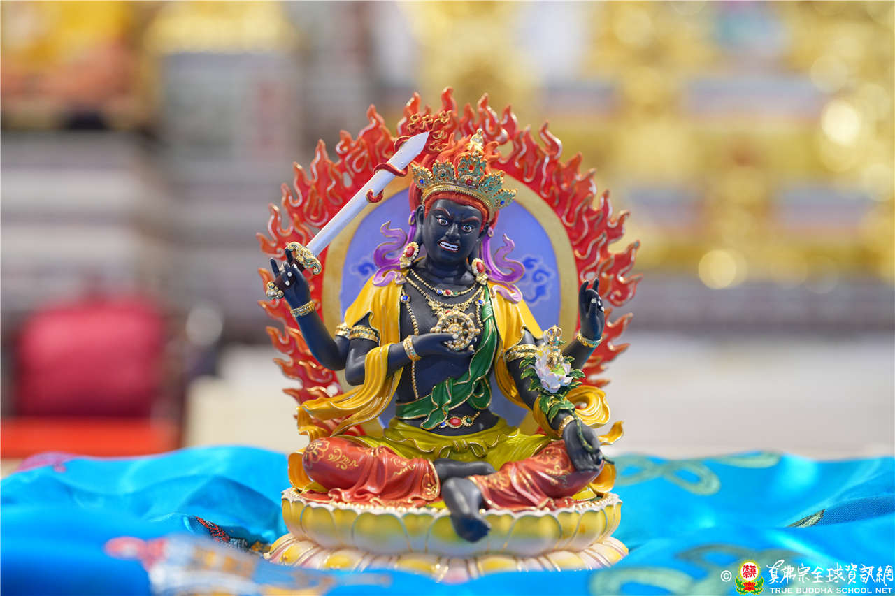 法王提到必須要補充說明不動明王的四句偈,「見我身者發菩提心」,當無我的時候沒有個人的私心,只有幫助衆生的心,當修行見到不動明王真正的身,就會無我,因爲無我發菩提心。「聞我名者斷惡修善」真正的涵義是,既然無我就沒有名,既然不爲名,不爲財和色,當然斷惡,只能修善,以無我爲先。「聽我說者得大智慧」,無我就是大智慧,所有大般若經、《金剛經》、《心經》都是在講無我,無我就是大智慧。「知我心者即身成佛」,心是什麽心,無心,既然無我就無心,能與空性合一,就能顯發自己的佛性,就能即身成佛!
