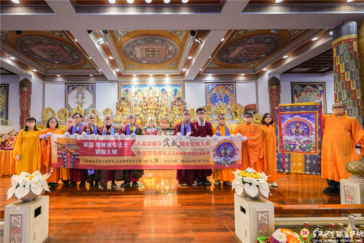 2023年1月7日,台灣雷藏寺恭請根本傳承上師無上法王聖尊蓮生活佛主持「南摩孔雀明王護摩法會」,法會當天,弟子們翹首期盼聖尊的到來,整個會場充滿祥瑞和熱烈的氛圍,在法會進行前,法王先為大家簽書,法會開始前是莊嚴隆重的「請法儀式」,由大義雷藏寺的請法代表虔誠恭請法王於2023年1月29日佛駕親臨高雄大義雷藏寺主壇「能摧壞度母大法會」,首傳及灌頂「能摧壞度母」殊勝大法,大轉法輪,廣度衆生。