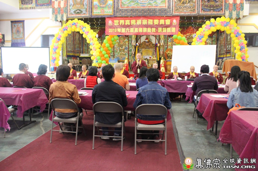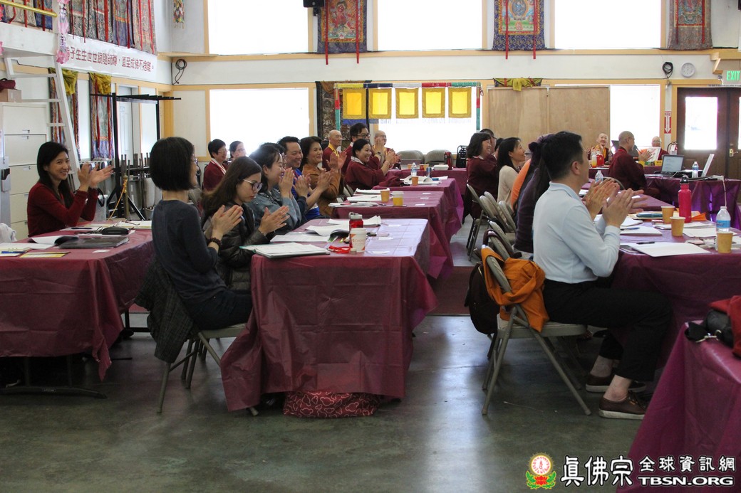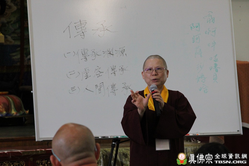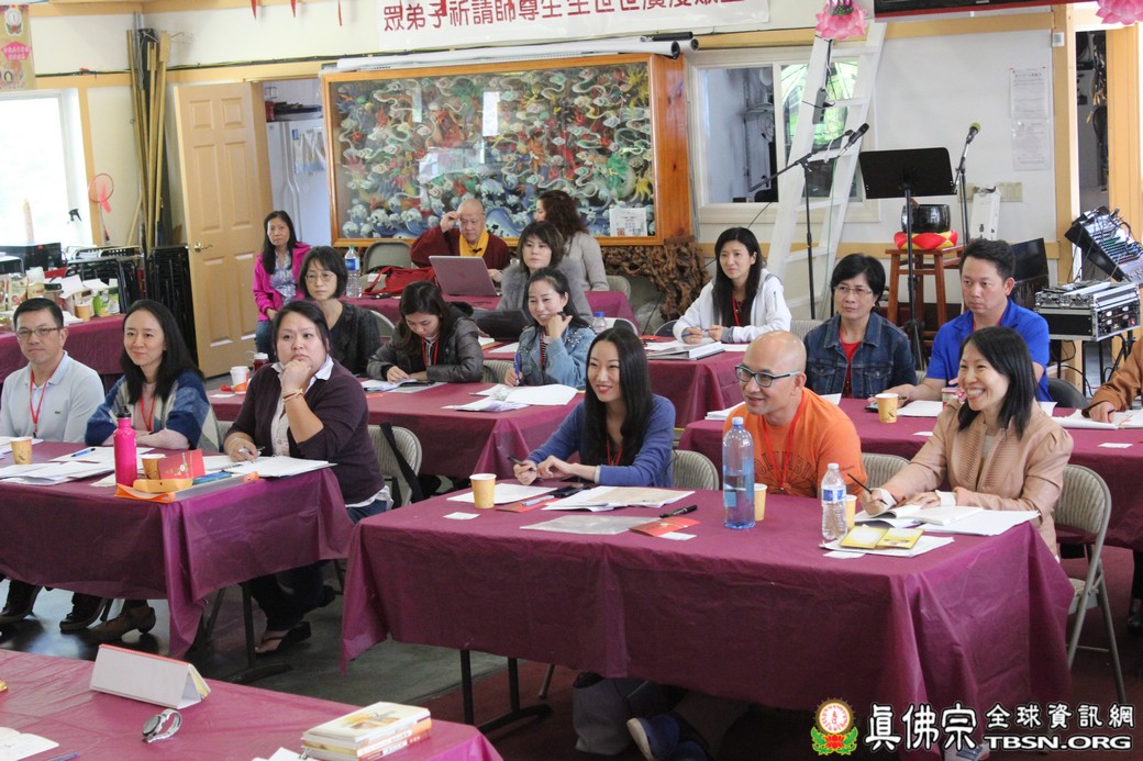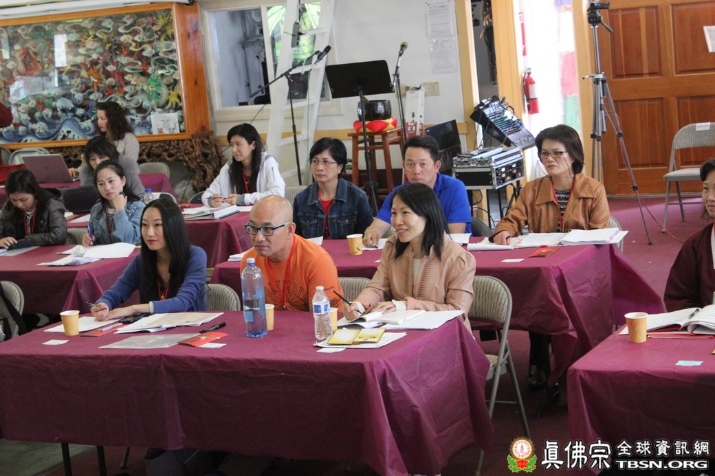 17日上午9時,中英文同步翻譯的培訓課由會長蓮花程祖上師致歡迎詞後正式開始。各位授課的上師為了幫助應考生掌握教材重點,順利通過筆試、面試、梵唄考試成為合格的講師助教,可謂傾囊相授毫無保留給予應考生們最大的支持!上師們以不同的實例及各種寶貴的經驗分享,非常詳細地向應考生講解了講師助教應具備的學佛正念、守戒律的重要、隨時可以向他人介紹根本傳承上師聖尊蓮生活佛的修持成就的經歷、真佛宗的傳承、真佛密法的殊勝、日後在法務時遇到的實際狀況該如何正確應對、成為講師助教如何主持同修、主持法事及梵唄唱誦的技巧要點。