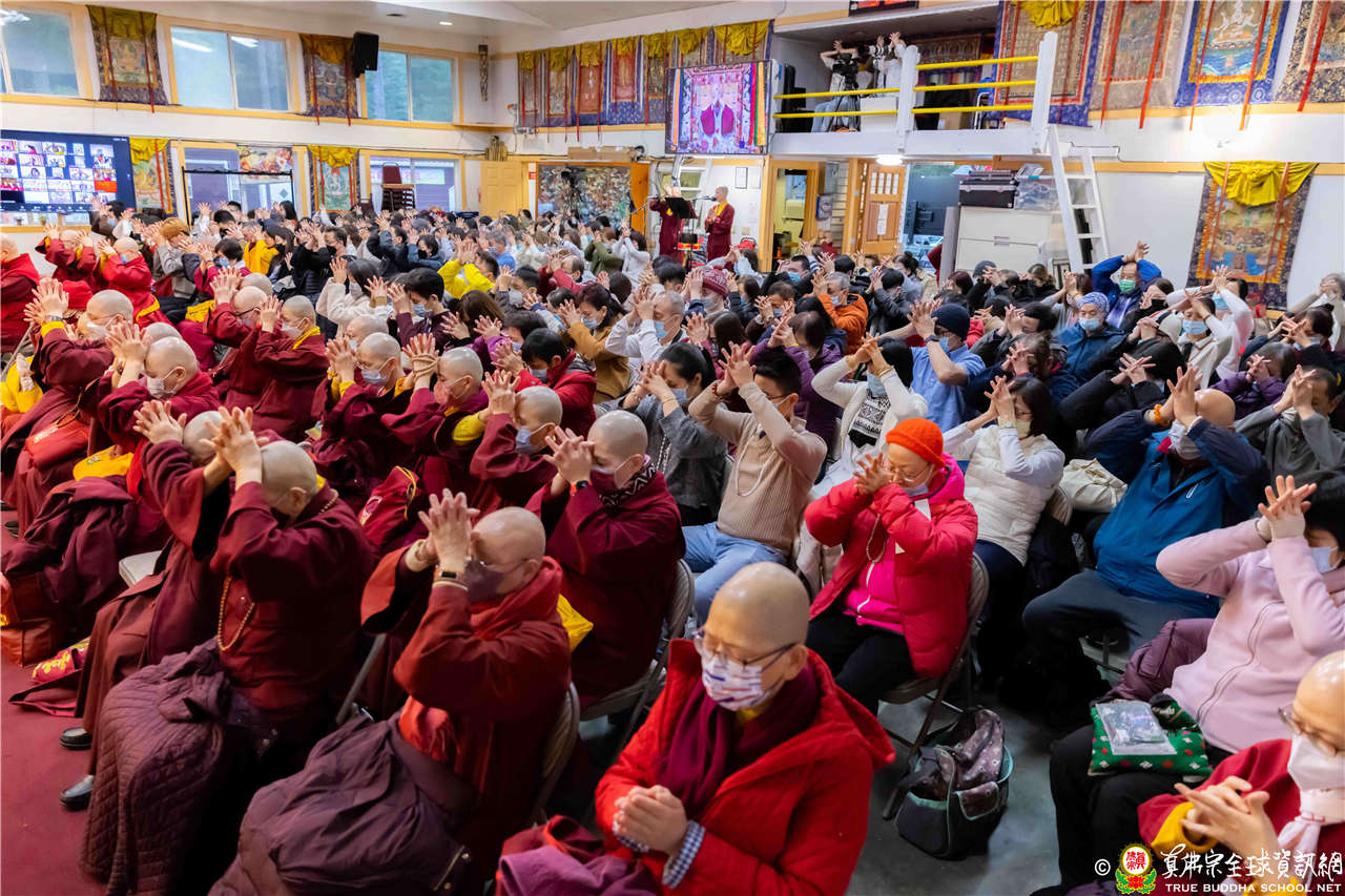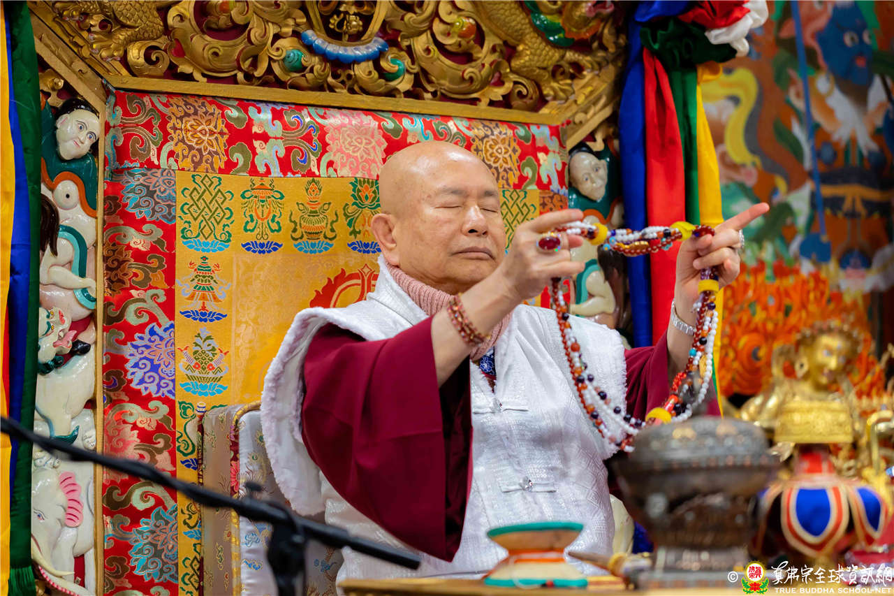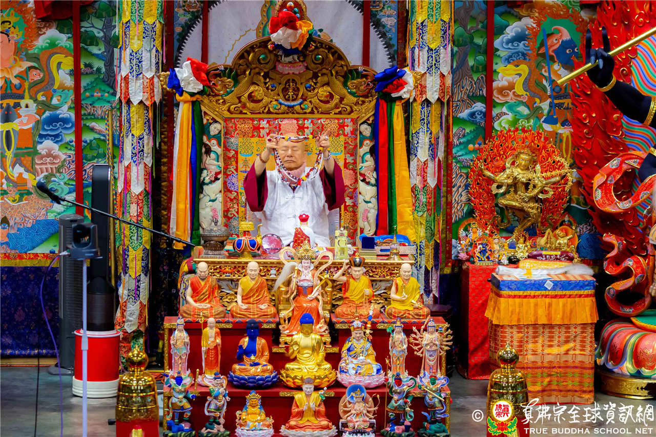 最後法王慈悲加持祝福現場及網路上所有弟子都能得到「蓮花童子」加持護祐,眾弟子接受法王的「蓮花童子法」總灌頂,法會圓滿結束。