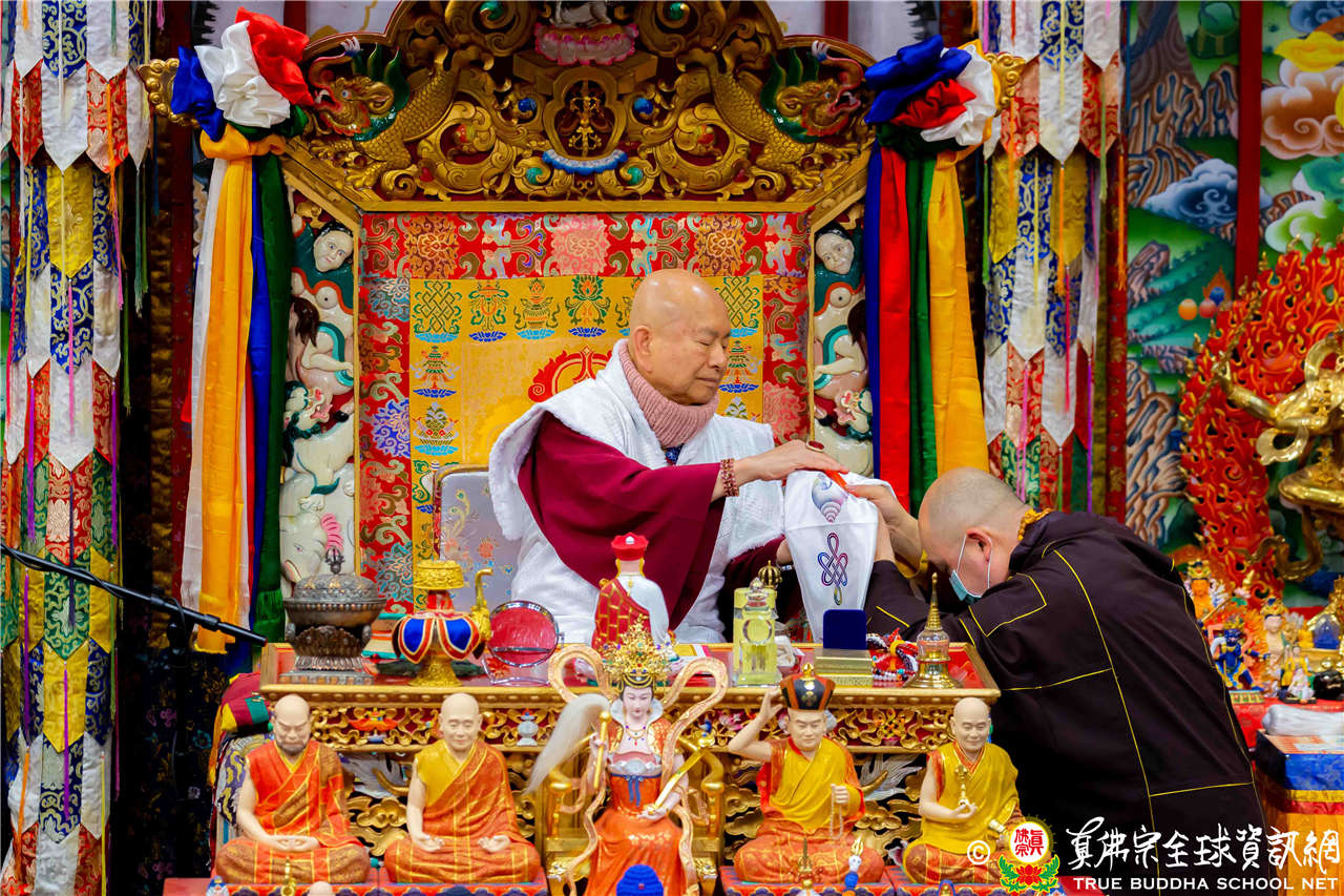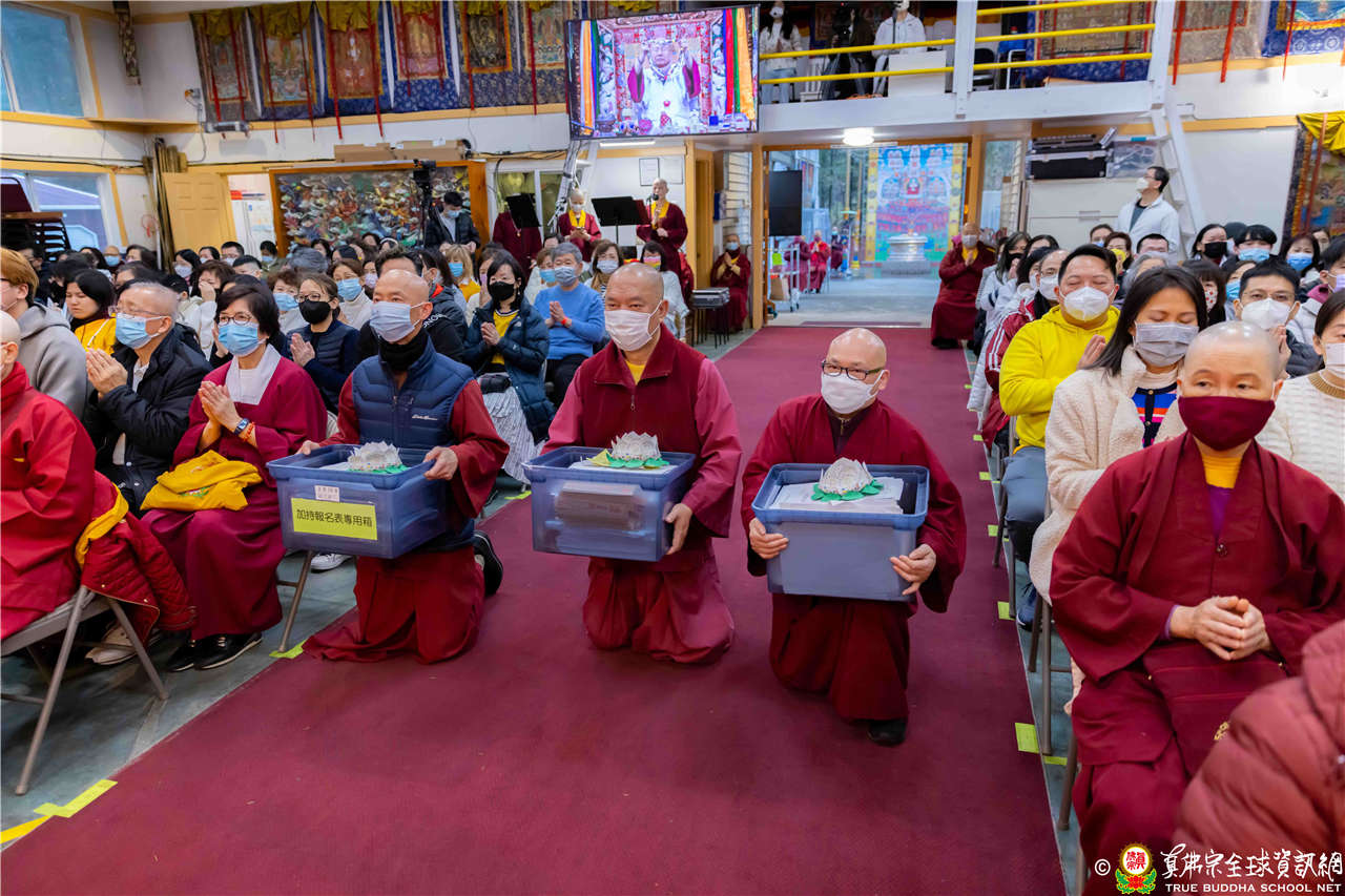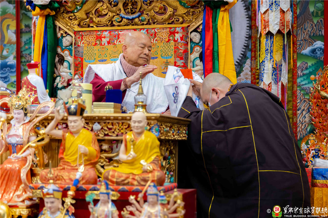 最後法王慈悲加持祝福現場及網路上所有弟子都能得到「蓮花童子」加持護祐,眾弟子接受法王的「蓮花童子法」總灌頂,法會圓滿結束。