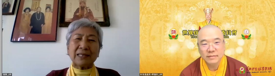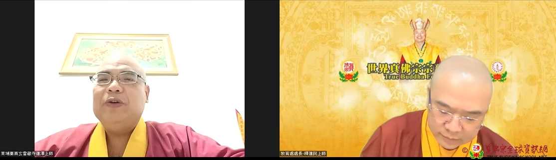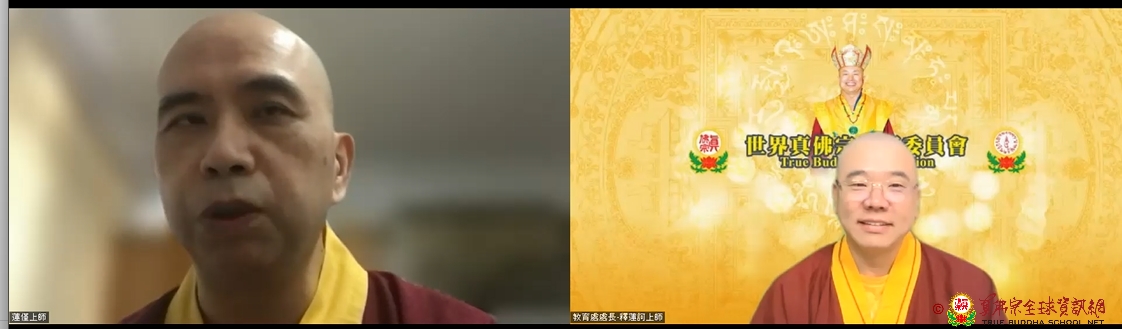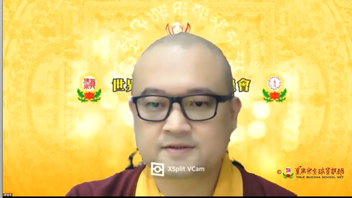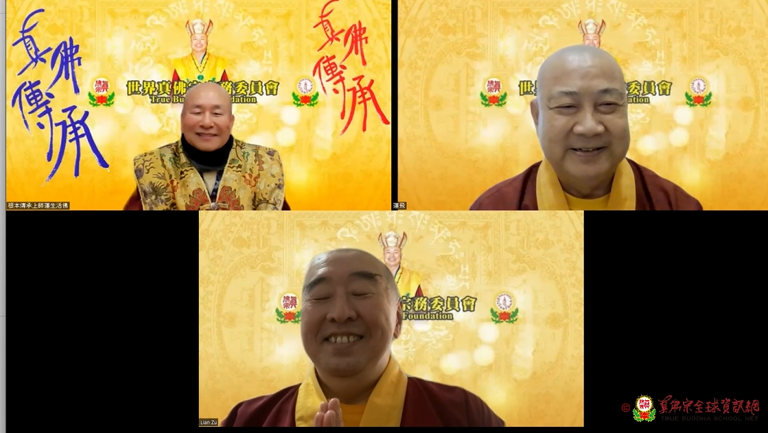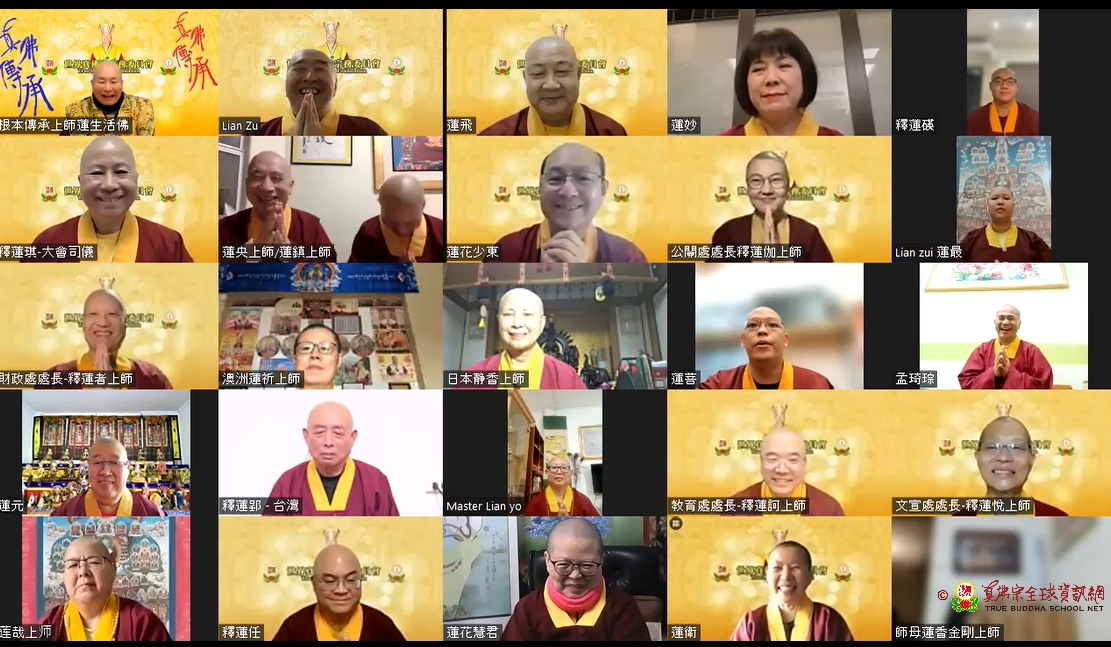 在會長程祖上師總結各處上師報告中,迎來根本上師蓮生活佛的蒞臨,師尊輕鬆地在視頻中和上師們聊天,強調學密教修氣瑜珈的重要,並關懷上師們的健康情形,根本上師開朗笑談中,時時觸動弟子們的心,處處流露慈悲心懷與智慧的指引。