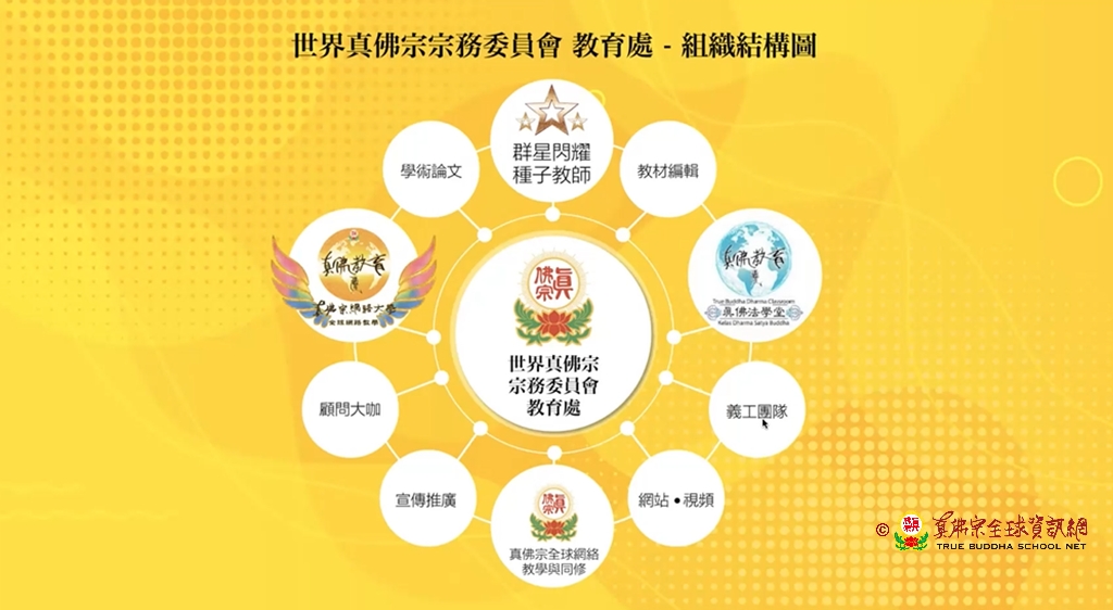 文宣處蓮悅上師介紹文宣處會務,包含年度大活動、雷藏之音、英譯、一福文化、三大中央文宣:真佛宗全球資訊網、真佛報、燃燈雜誌,介紹了真佛報此次與八大網路媒體平台結合,報導真佛宗位土耳其的持大救難咒迴向及賑災物資捐贈活動,規劃未來每個月做一次新聞推播,透過網路平台把真佛宗新聞分享到網路世界。