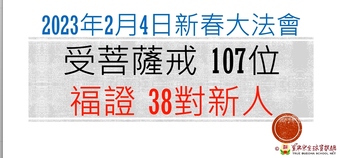 另外2月10日第四門課「真佛密法」正式開課,由蓮一上師主講,首創以中、英、印尼三大語文同步上課,並配合實修功課每日打卡等,帶動2023精進年的開端。禪定實修課從去年10月開始,由蓮訶上師帶領配合講授師尊文集《定中之定》。教育處在年初特別與真佛宗教授團作交流,並聆聽教授團的建議。