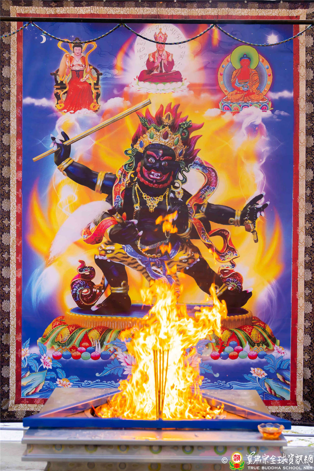 法王首先請宗委會代表作答。宗委會代表蓮僧長老表示,「師尊曾開示五路財神是一般的地神;另依照師尊曾經開示,諸天、道教和印度教的神明都可以做為護摩主尊,但龍王、土地公和五路財神除外。至於師尊巡視臺灣時的開示,則沒有注意到,非常抱歉。」法王表示,密教有五財神,紅財神、黃財神、綠財神、黑財神、白財神,這五財神都可以做護摩主尊。道家的五路財神也是可以做護摩,但是五方地神、五方五路五財神,就不用做護摩,所以宗委會公佈的是對的。法王也勸請大家要尊敬土地公,普同尊敬。