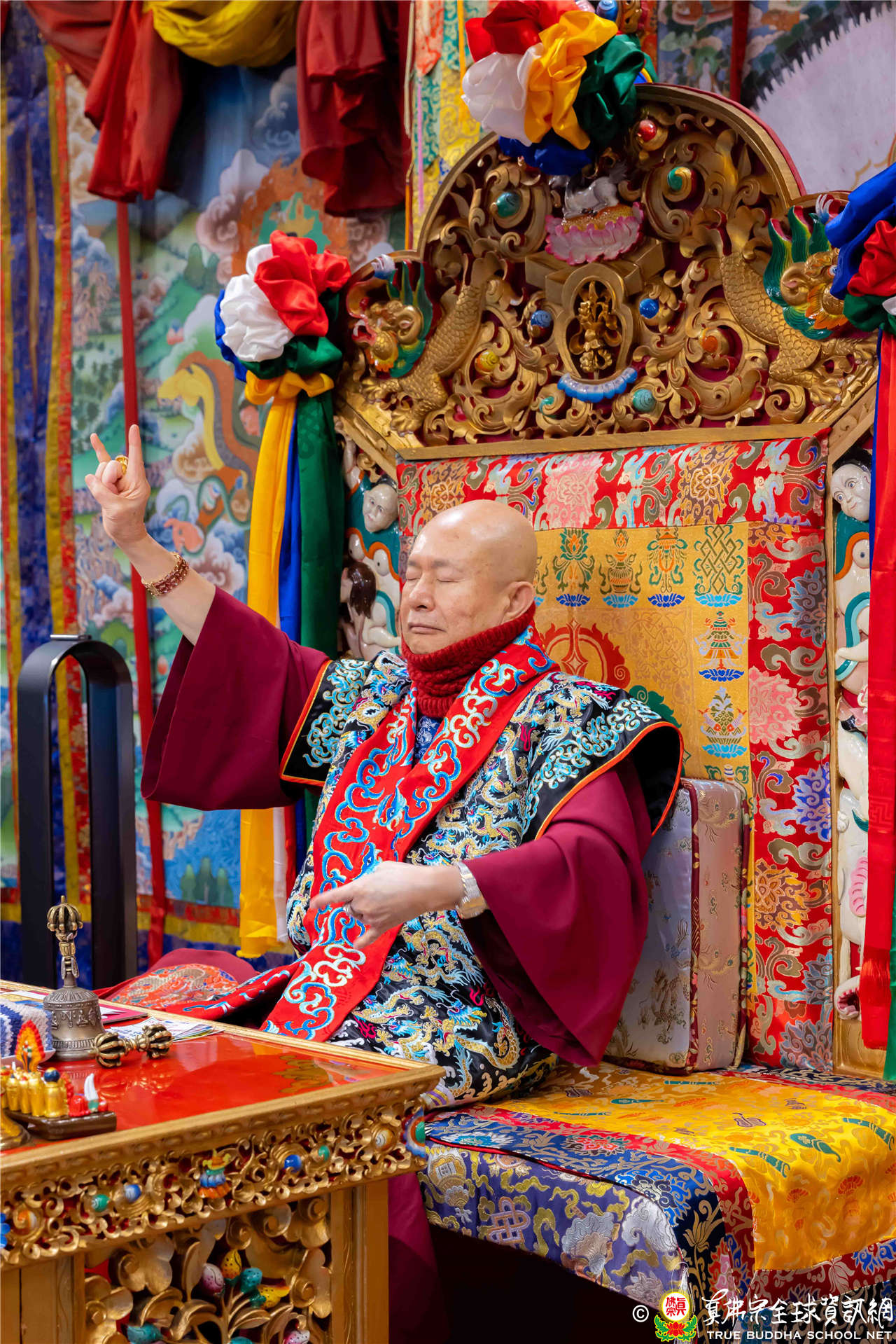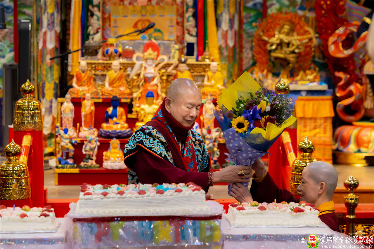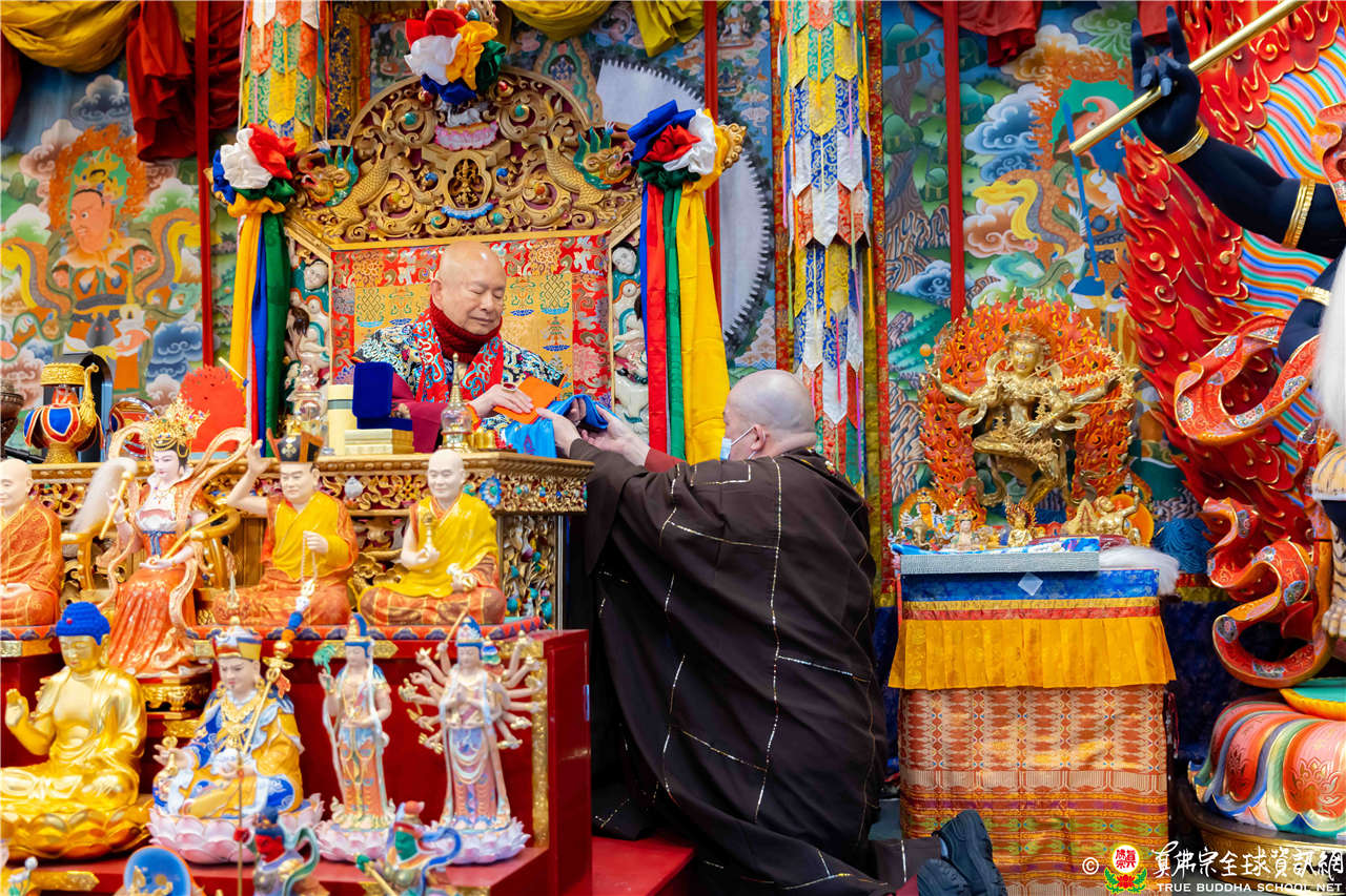 接著進入你問我答。有弟子問,宗委會曾宣佈五路財神是五方地神,無形象、心咒與種子字,故不適合做為法會主尊;但法王巡視台灣道場時曾開示,真佛宗有五路財神法,以中路財神王母娘娘(瑤池金母)、東路財神蔡倫、南路財神鄧通、北路財神日光童子。因此,是否以中路財神王母娘娘的心咒與種子字,作做為五路財神的心咒與種子字?若有了心咒、種子字和形象,又是否允許五路財神做為法會主尊?