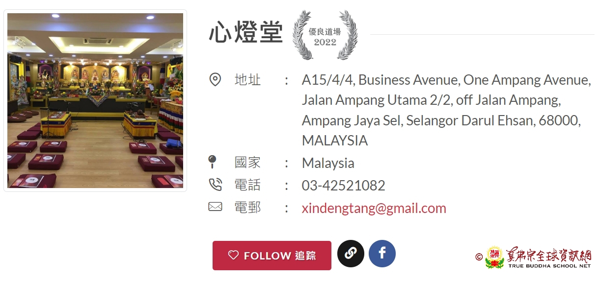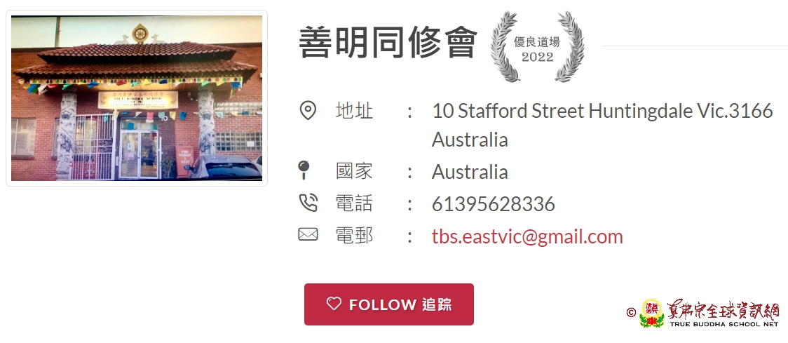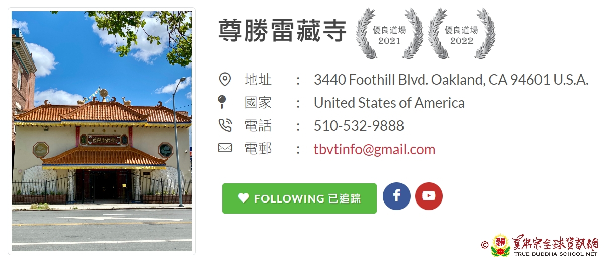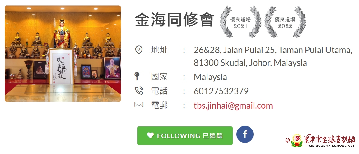 達標成為「2022年優良道場」的寺堂會有六間,分別是1. 馬來西亞 金海同修會;2. 美國 尊勝雷藏寺;3. 馬來西亞 心燈堂;4. 美國 登寶雷藏寺;5. 澳大利亞 善明同修會;6. 台灣 六度堂。