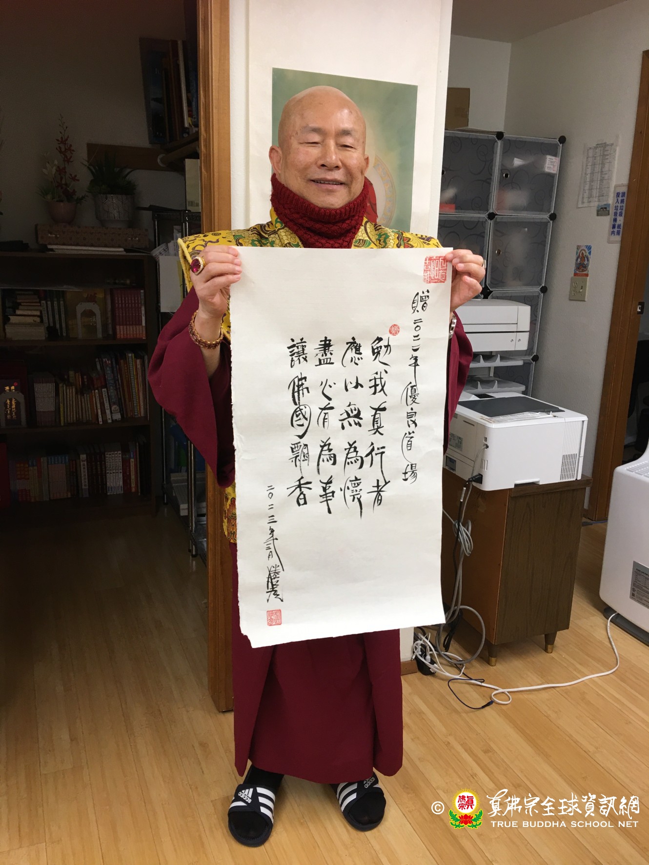 2023年3月14日,聖尊蓮生活佛為了鼓勵本宗六間達標成為「2022年真佛優良道場」的寺堂會,特於宗委會辦事處揮毫墨寶一幅,作為達標道場的獎勵。