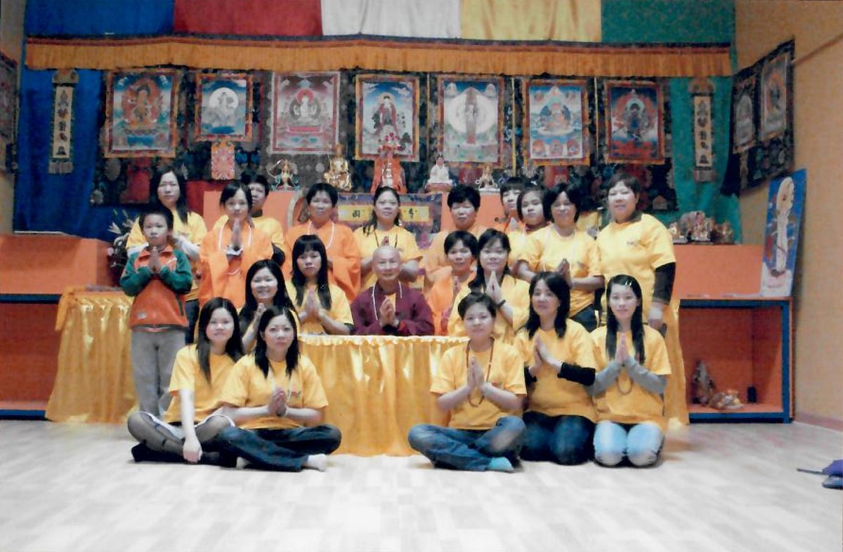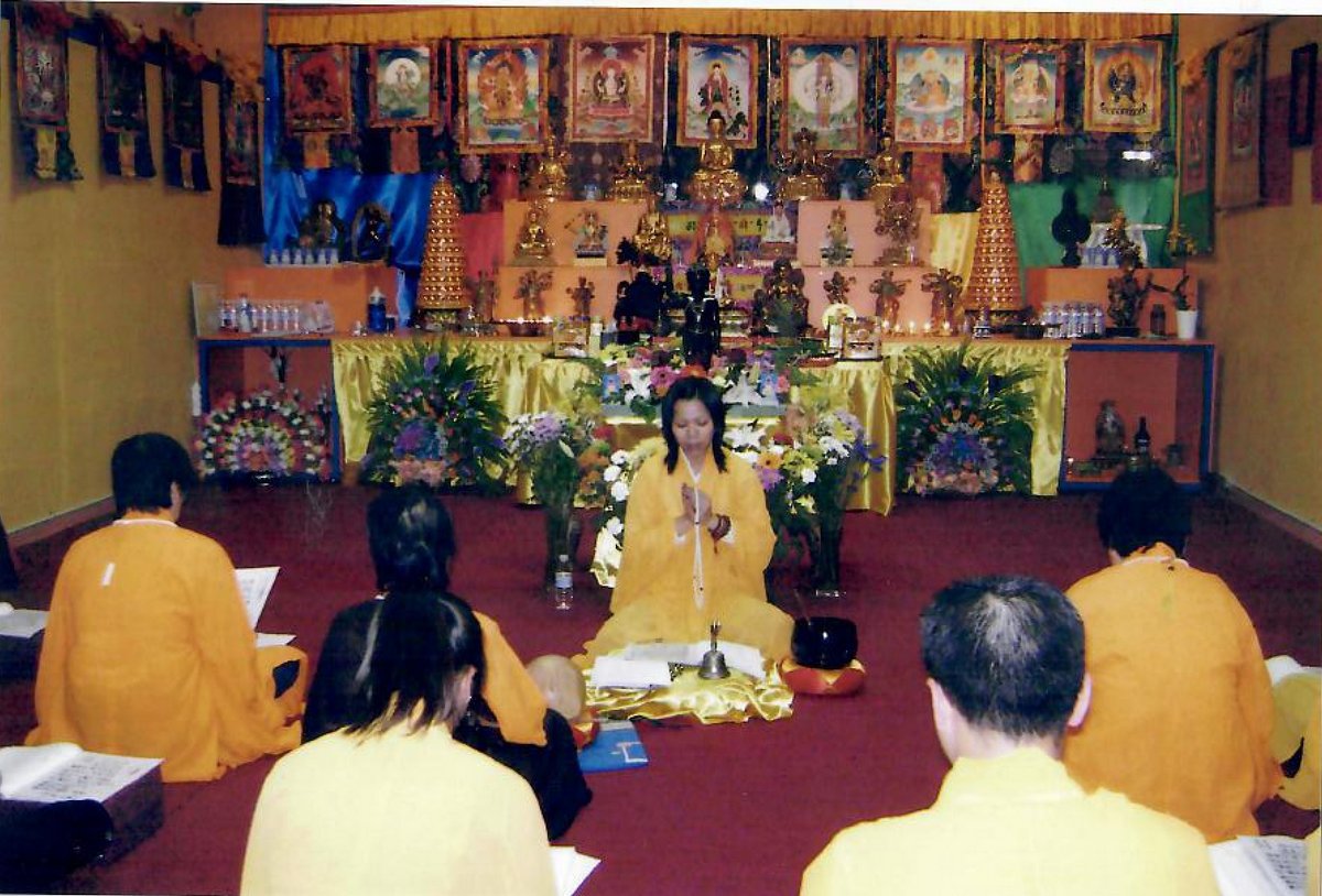 2004年,在自家狹小的客廳,開始帶領同門同修。