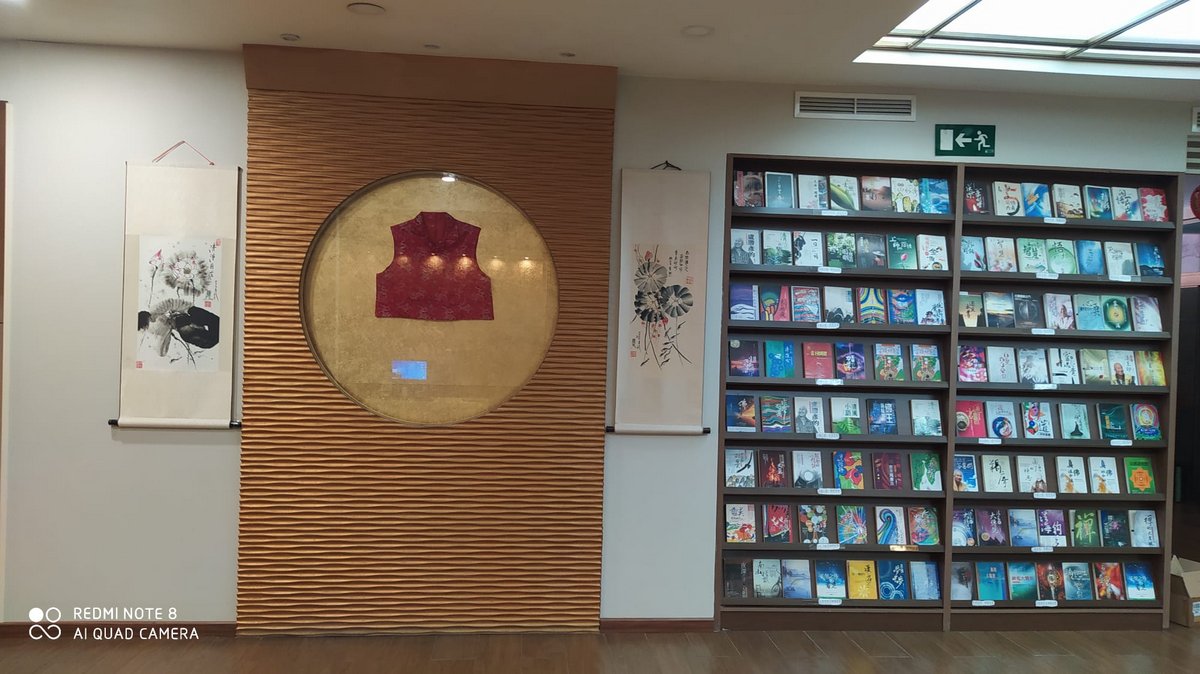 在明照同修會還有非常珍貴的鎮殿之寶,根本上師的賜福的紅色龍袍,在龍袍左右為根本上師的畫作,緊鄰著是真佛智慧牆(盧勝彥文集陳列牆)。