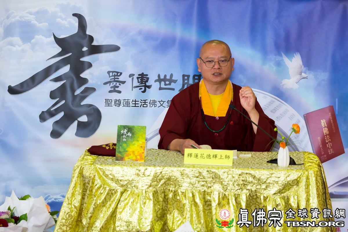 接著,四眾弟子虔誠恭請法王聖尊做寶貴的法語開示:『聖尊表示沒有瑤池金母,就沒有《真佛宗》、沒有蓮生上師、沒有這麼多的出家眾,也沒有500萬弟子。所以,金母是整個《真佛宗》的源頭,也可以說《真佛宗》是由金母創立的。由於金母是聖尊第一個相應的本尊,因此,聖尊每天早晚都跟金母問候、禮拜和祈禱。』