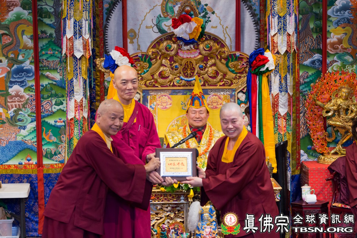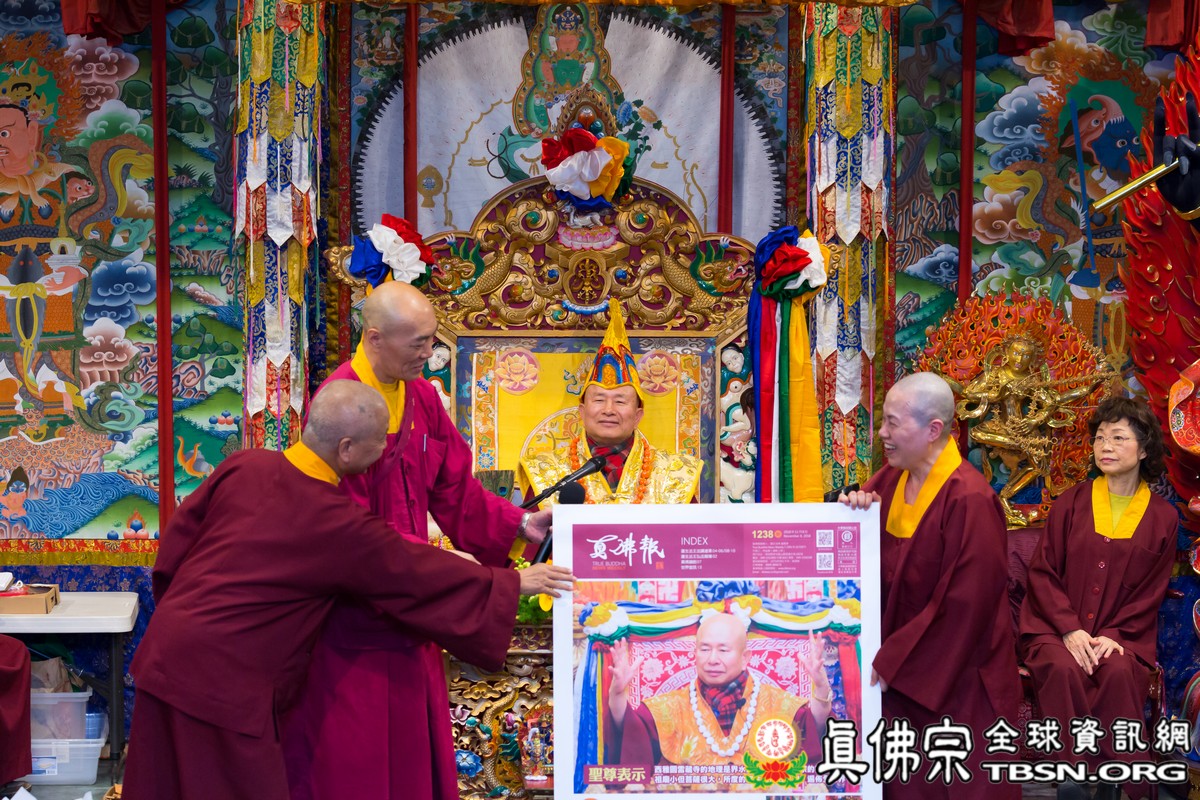 法會後,舉行《世界真佛報總社》交接儀式,由加拿大溫哥華前總社長蓮慈上師將《世界真佛報總社》交予台灣新任總社長蓮歐上師,並由〈宗委會〉蓮印上師代表監交。1991年10月,蓮慈上師在聖尊的囑咐下創辦《真佛報》,至今已有27個年頭;從2018年11月8日開始,台灣《世界真佛報總社》正式營運,展開新的文宣里程碑。盼大家繼續護持《真佛報》,讓有真佛弟子的地方就有《真佛報》!