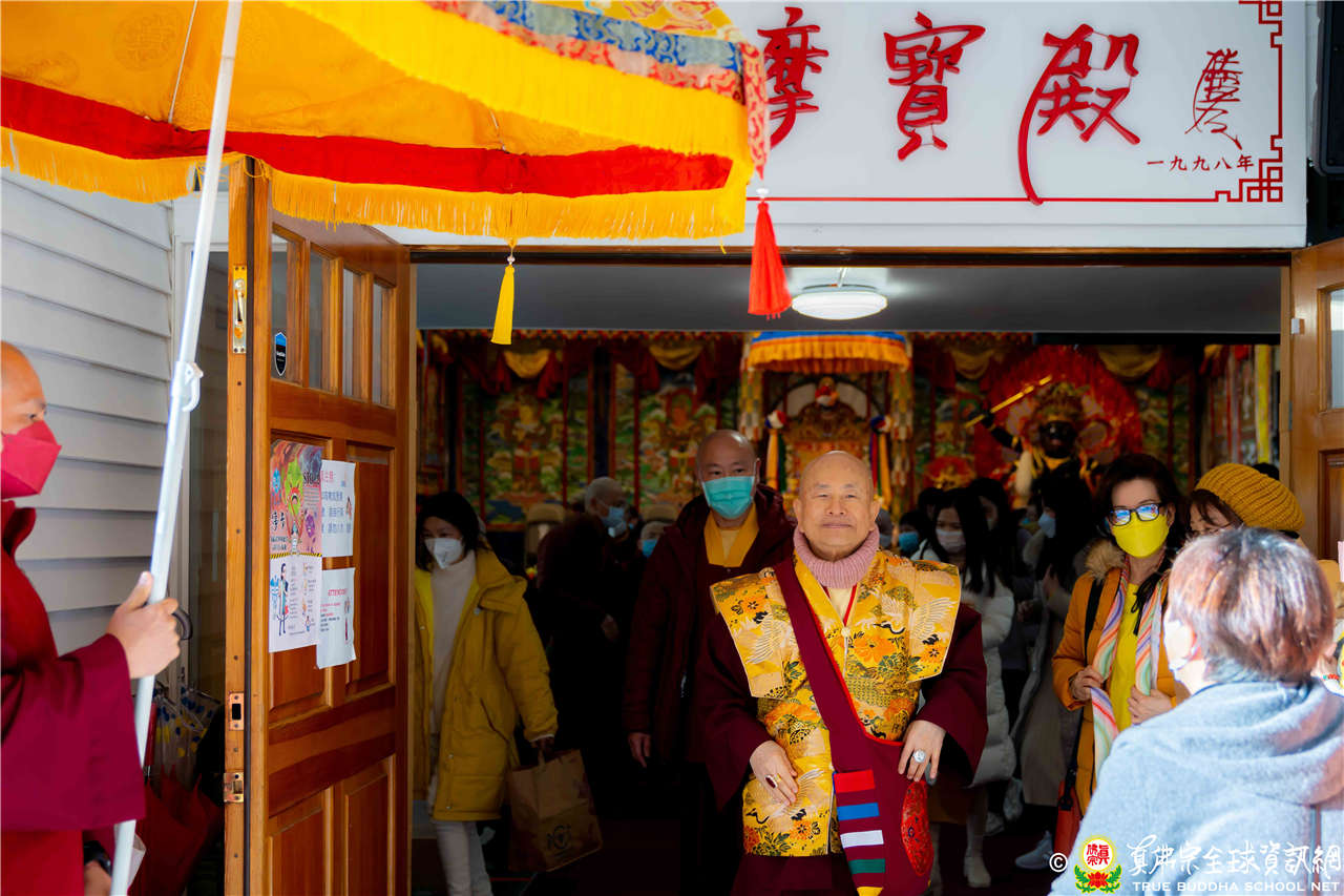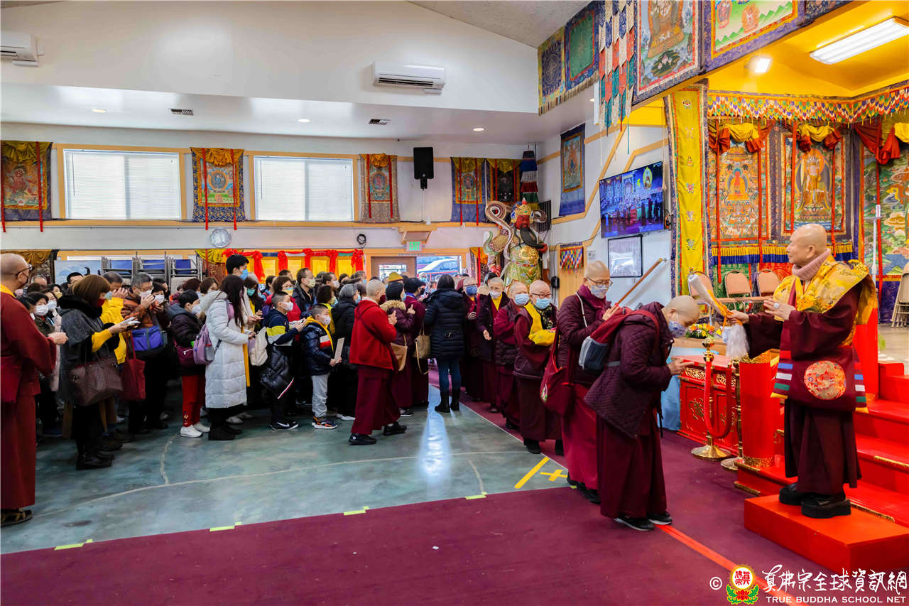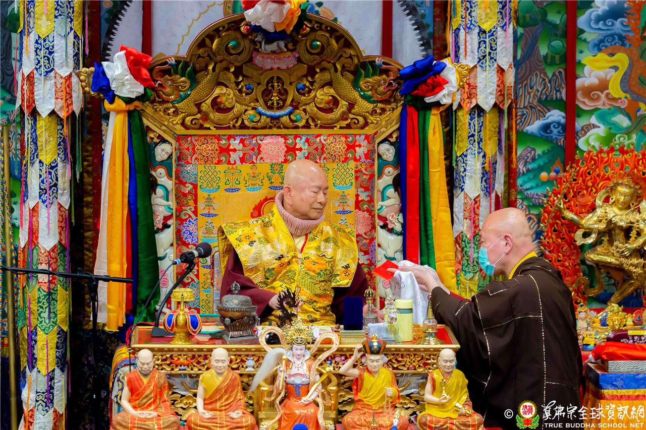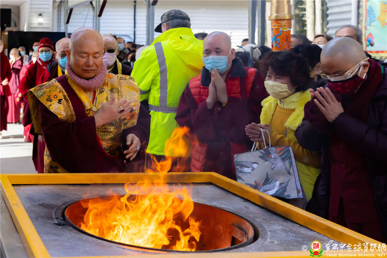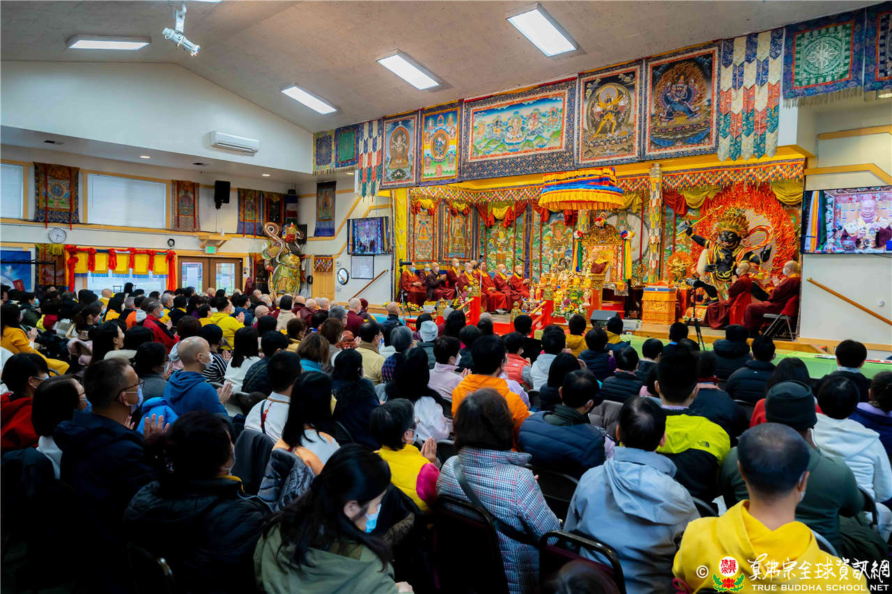2023年4月2日,西雅圖彩虹雷藏寺恭請聖尊蓮生法王,主持南摩紅地藏王菩薩護摩法會。法王首先向大家預告,下週是尊勝佛母護摩法會。尊勝佛母的法力相當於準提佛母,無論是印度、西藏、中國,都屬於大佛母,且千變萬化。尊勝佛母有一字咒:「嗡。普隆」,力量很大。圓滿咒「嗡。部林」是普方上師所傳,其實也就是「嗡。普隆」,二者是同樣的,是圓滿之意。